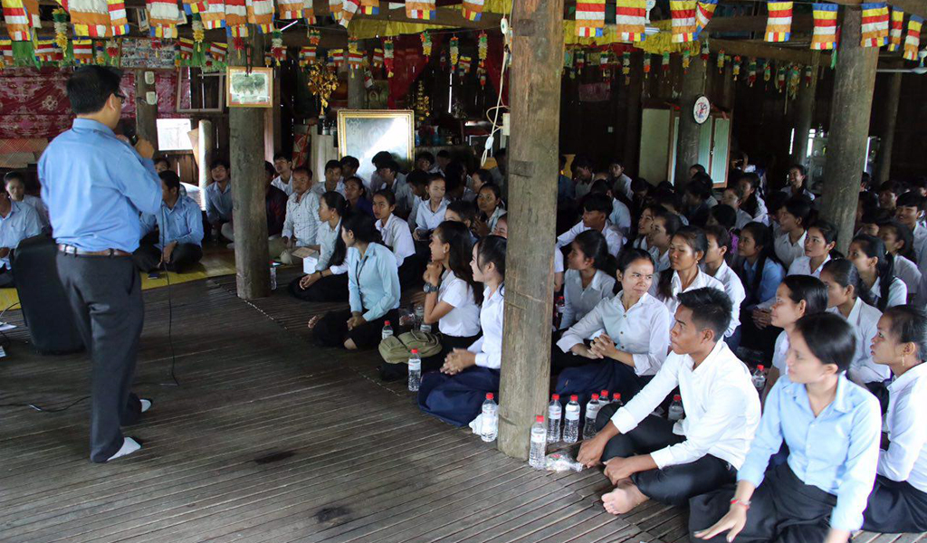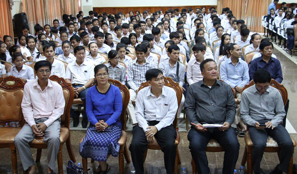ខេត្តក្រចេះ៖ ឯកឧត្តម យក់ ប៊ុនណា រដ្ឋលេខាធិការក្រសួងមុខងារសាធារណៈ និងជានាយកសាលាភូមិន្ទរដ្ឋបាល និងឯកឧត្តម ពេជ្រ វិជ្ជាគន្ធី អគ្គនាយក នៃអគ្គនាយកដ្ឋានគ្រប់គ្រងមុខងារសាធារណៈ បានអញ្ជើញចូលរួមដឹកនាំលោកគ្រូឧទ្ទេសនាមដោយ លោក ងន់ ម័រ ប្រធាន​មជ្ឈមណ្ឌល​បច្ចេកវិទ្យា​ព័ត៌មាន​នៃ​សាកលវិទ្យាល័យ​ភូមិន្ទ​ភ្នំពេញ ដើម្បីចូលរួមធ្វើបទបង្ហាញអំពីគេហទំព័រ​ (www.bacii.moeys.gov.kh) និងកម្មវិធី Application Mobile (MoEYS App Scan) សម្រាប់ធ្វើការតេស្តសមត្ថភាព សិស្សត្រៀមប្រទ្បងបាក់ឌុប នៅវិទ្យាល័យ​ ហ៊ុន​ សែន​ កន្ទួត វិទ្យាល័យព្រះមហាក្សត្រីយានី កុសុមៈ និងវិទ្យាល័យថ្មគ្រែ​ នៅខេត្តក្រចេះ នាព្រឹកថ្ងៃសុក្រ ១កើត ខែទុតិយាសាឍ ឆ្នាំច សំរឹទ្ធិស័ក ព.ស.២៥៦២ ត្រូវនឹងថ្ងៃទី១៣ ខែកក្កដា ឆ្នាំ២០១៨ ។ គូសបញ្ជាក់ផងដែរ គេហទំព័រ និងកម្មវិធី Application Mobile នេះ​ មានលំហាត់ និងសំណួរ ដែលអាចឱ្យសិស្សានុសិស្សអនុវត្តការវាស់ស្ទង់សមត្ថភាពខ្លួន​ឯង និងការពង្រឹងសមត្ថភាពលើមុខវិជ្ជា ដែលមានក្នុងប្រព័ន្ធនេះ។ ឆ្លៀតក្នុងឱកាសនេះ ឯកឧត្តម​ នាយកសាលា​ បានឧបត្ថម្ភកុំព្យូទ័រ ១ គ្រឿង ជូនវិទ្យាល័យ​ ហ៊ុន​ សែន​ កន្ទួត និងវិទ្យាល័យថ្មគ្រែ​ និងចែកសៀវភៅជូនសិស្សានុសិស្ស ចំនួន ៧ នាក់ ដែលធ្លាប់ធ្វើតេសត្តសមត្ថភាពបានពិន្ទុខ្ពស់ជាងគេប្រចាំខេត្តក្រចេះ ។