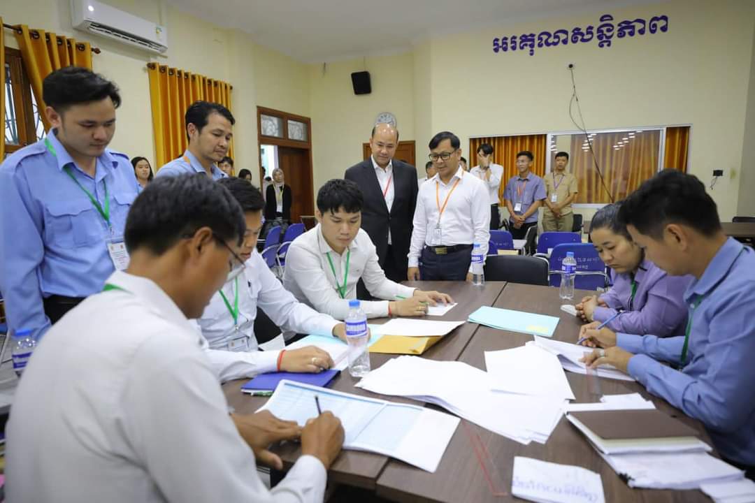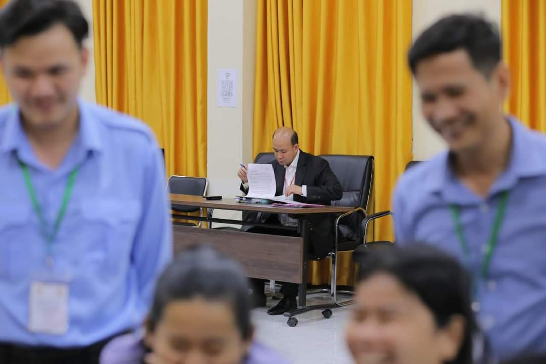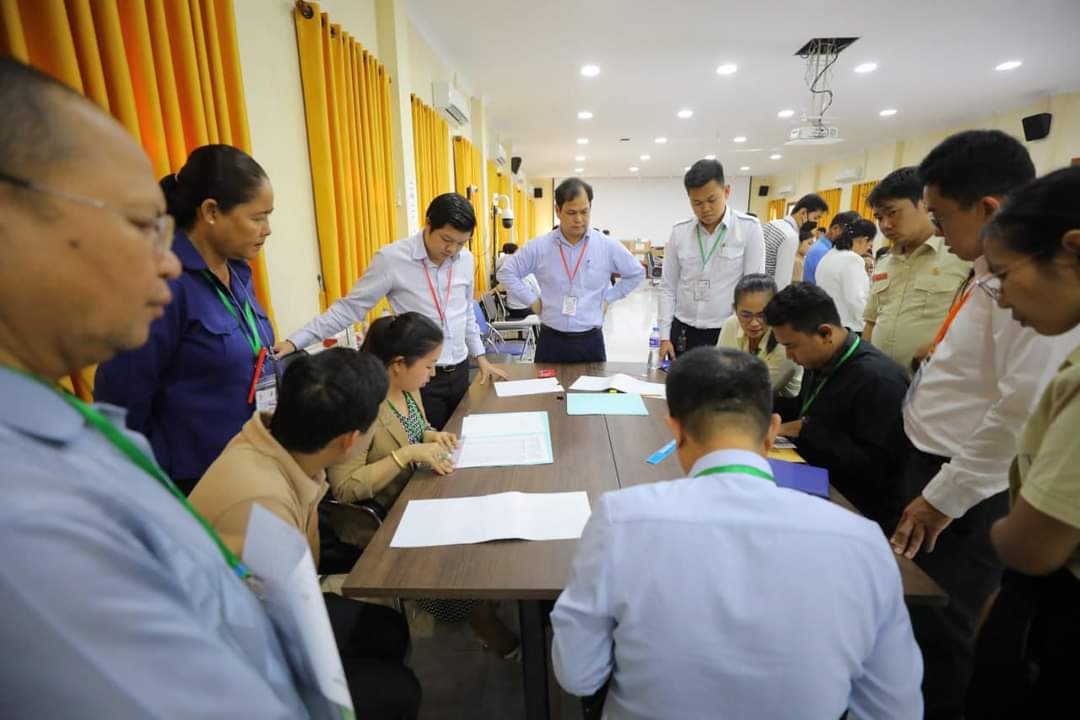ខណៈនេះ ឯកឧត្តម ហ៊ុន ម៉ានី រដ្ឋមន្ត្រីក្រសួងមុខងារសាធារណៈ និងជាប្រធានគណៈកម្មាការរៀបចំការប្រឡងប្រជែង និងសមាជិក សមាជិកានៃគណៈកម្មការ និងអនុគណៈកម្មការពាក់ព័ន្ធទាំងអស់ កំពុងមានវត្តមាននៅមណ្ឌលកំណែសាលាភូមិន្ទរដ្ឋបាល ដើម្បីពិនិត្យការផ្ទៀងផ្ទាត់ ដើម្បីសម្រេចលើលទ្ធផលជាប់ជាស្ថាពរ របស់បេក្ខជនប្រឡងប្រជែងជ្រើសរើសគ្រូបង្រៀននៅបឋមសិក្សា(វិញ្ញាសាសរសេរលើកទី១) ដើម្បីជ្រើសសម្រាំងបេក្ខជន។