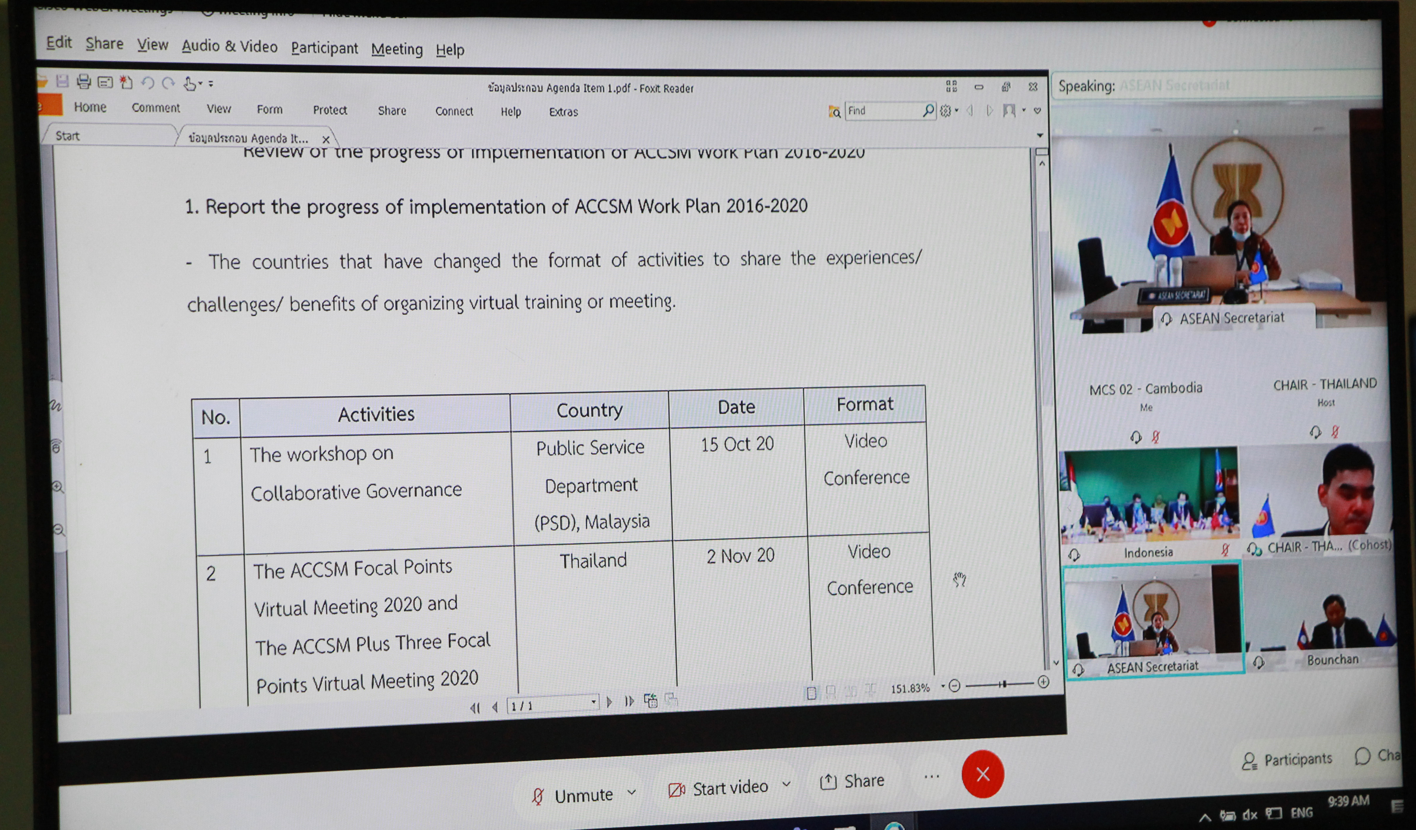 កិច្ចប្រជុំមន្រ្តីបង្គោល ACCSM Focal Points Meeting 2020 and ACCSM+3 Focal Points Meeting 2020 តាម Online ដែលរៀបចំដោយ Office of the Civil Service Commission (OCSC) របស់ប្រទេសថៃ
