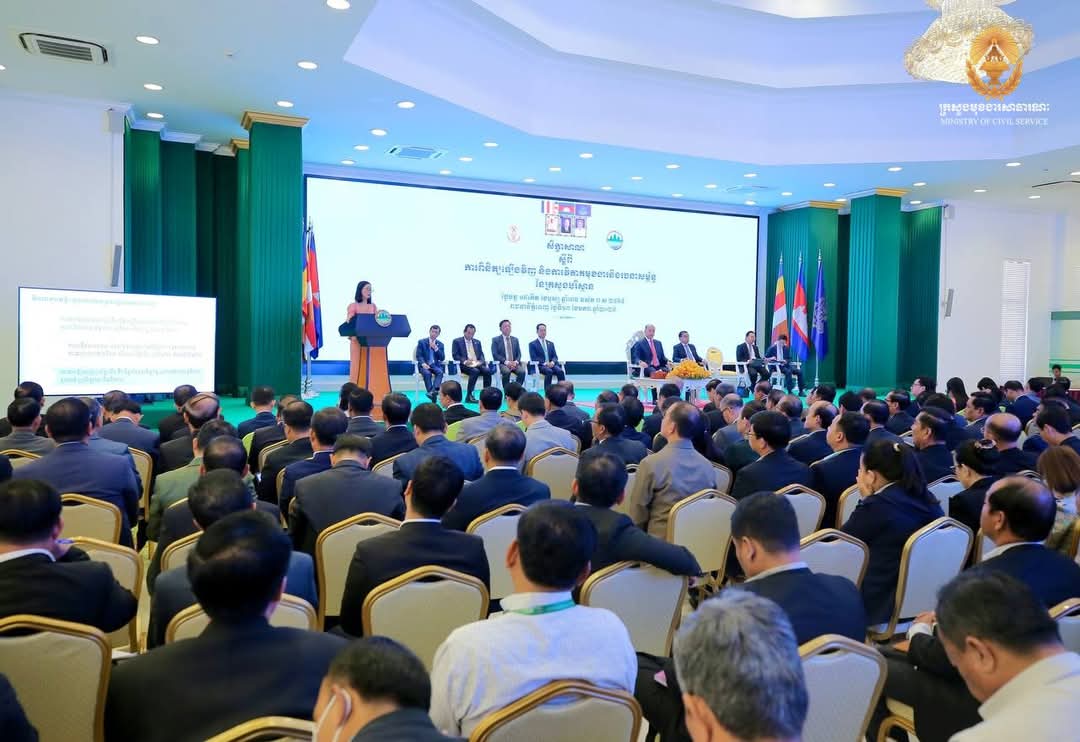 សូមជម្រាបថា សិក្ខាសាលានាពេលនេះ ត្រូវបានរៀបចំឡើងជាមួយបទបង្ហាញរបស់ថ្នាក់ដឹកនាំក្រសួងមុខងារសាធារណៈ ចំនួនពីររូបគឺ៖ (១) ការបង្ហាញពីដំណើរការ នៃការពិនិត្យឡើងវិញ និងការវិភាគមុខងារ និងរចនាសម្ព័ន្ធ របស់ក្រសួង ស្ថាប័ន ដោយលោកជំទាវ ឈី វិជ្ជរ៉ា រដ្ឋលេខាធិការក្រសួងមុខងារសាធារណៈ និង (២) ការបង្ហាញពីការងារបំពេញគ្នា គាំទ្រគ្នា និងជំរុញការអនុវត្តការងាររួមគ្នា ក្នុងក្របខណ្ឌការកែទម្រង់ និងពង្រឹងអភិបាលកិច្ច ដោយឯកឧត្តម យក់ ប៊ុនណា រដ្ឋលេខាធិការប្រចាំការ ក្រសួងមុខងារសាធារណៈ៕