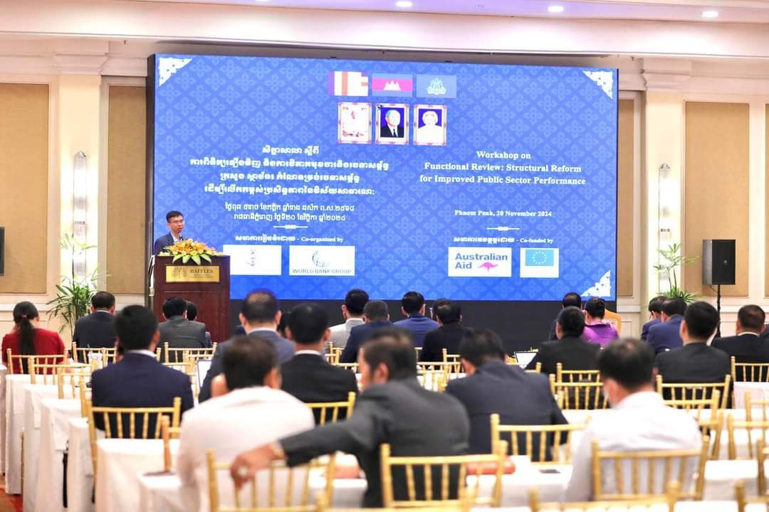 លោកបណ្ឌិត បានបន្ថែមនៅក្នុងសិក្ខាសាលាស្តីពី«ការពិនិត្យឡើងវិញ និងការវិភាគមុខងារ និងរចនាសម្ព័ន្ធក្រសួង ស្ថាប័ន៖ កំណែទម្រង់រចនាសម្ព័ន្ធ ដើម្បីលើកកម្ពស់ប្រសិទ្ធភាពនៃវិស័យសាធារណៈ» ថា សិក្ខាសាលាជាការសហការរៀបចំរវាងក្រសួងមុខងារសាធារណៈ និងធនាគារពិភពលោក នាពេលនេះ មានគោលដៅរួមជួយជំរុញប្រទេសកម្ពុជា សម្រេចបាននូវទស្សនៈវិស័យ ឆ្នាំ២០៥០៕