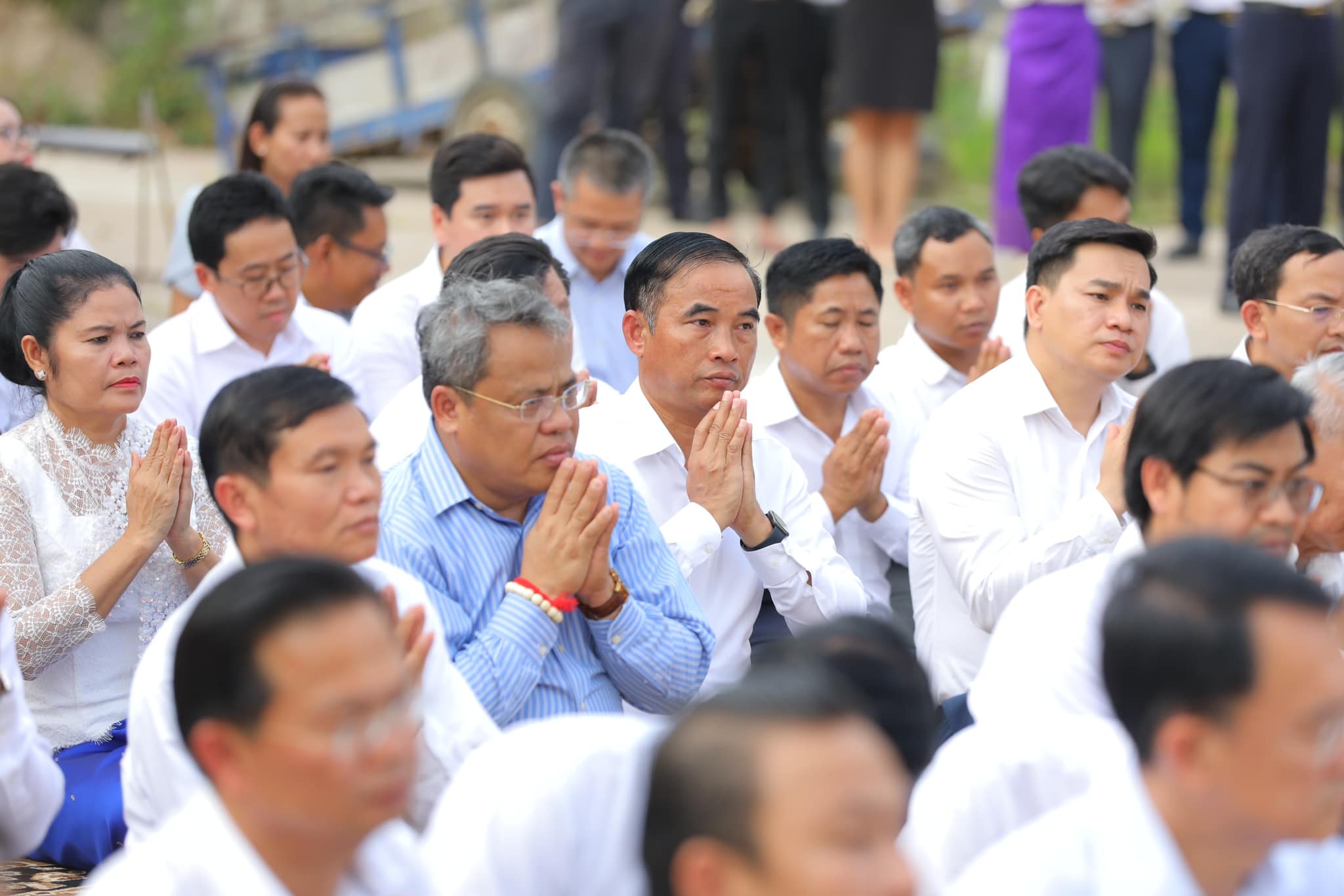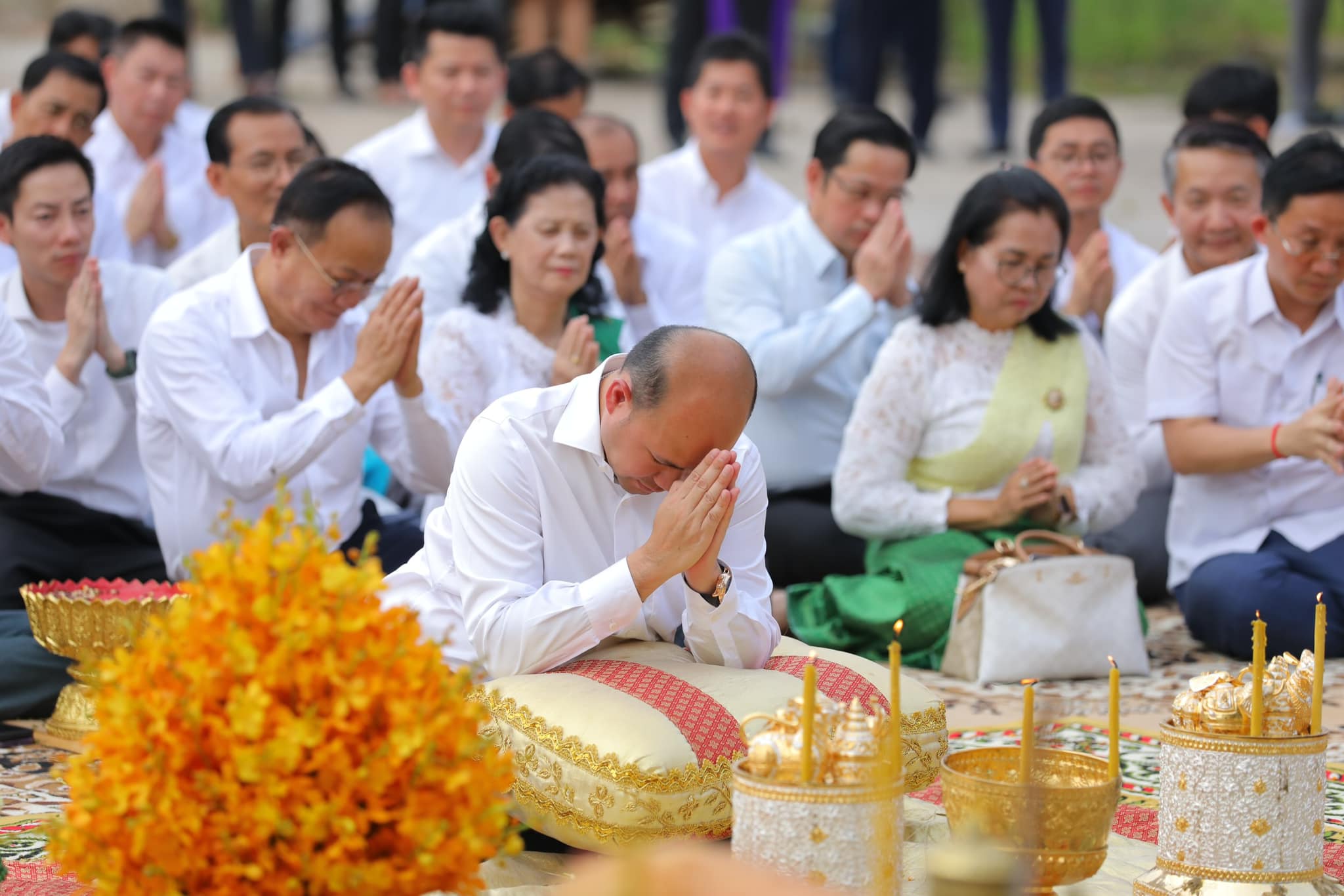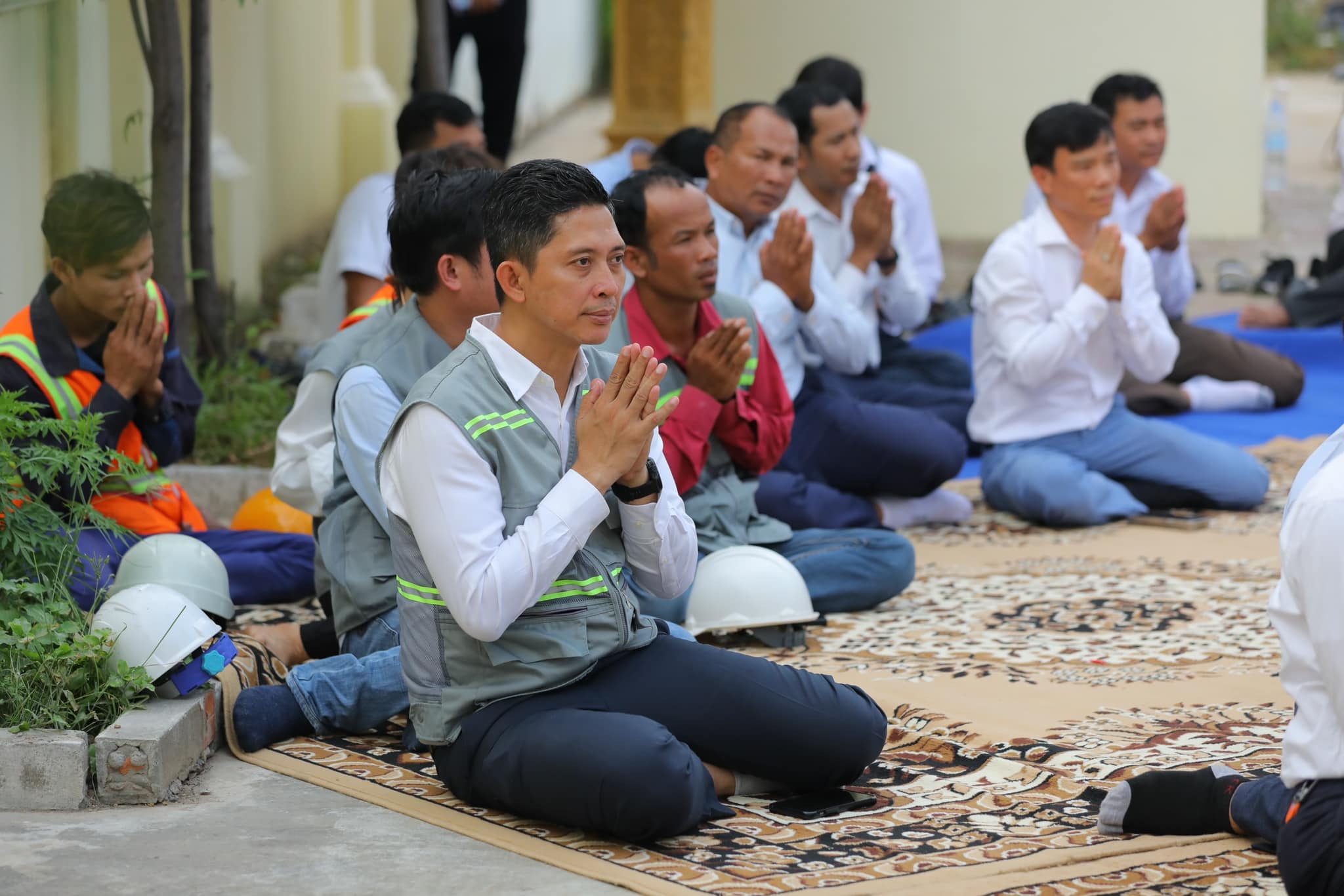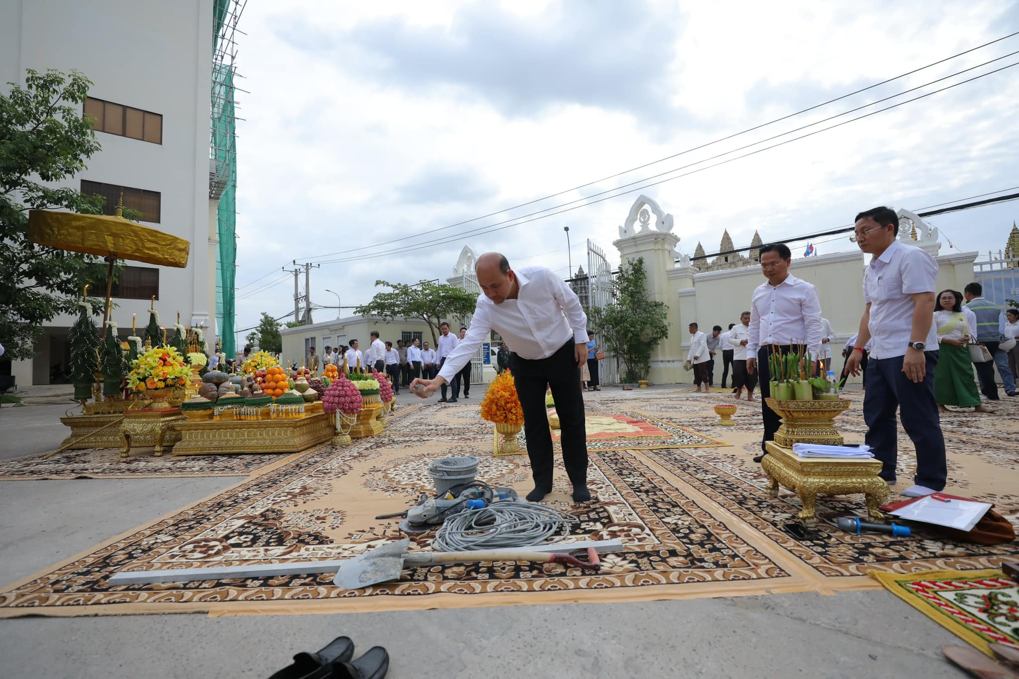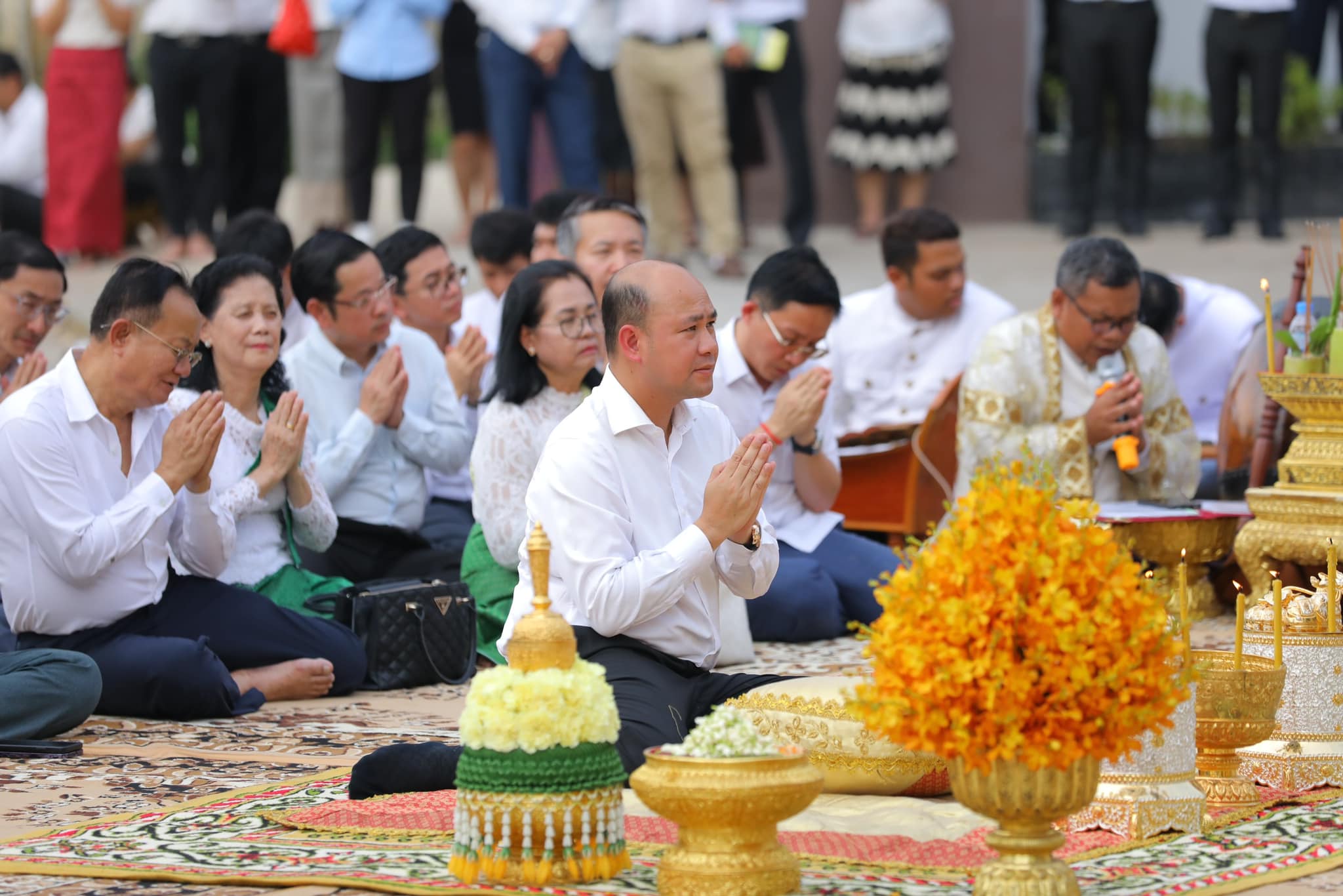 ចាប់ផ្តើមកម្មវិធី ឯកឧត្តមរដ្ឋមន្ត្រីបានថ្វាយគ្រឿងសក្ការៈ បូជាទៀន ផ្កា ទឹកអប់ និងធូប ដល់ទេវរូប មានព្រះគិណេស និងព្រះបាទជ័យវរ្ម័នទី៧។ បន្ទាប់មក ពិធីបួងសួងក្រុងពាលីបានចាប់ផ្តើម អមដោយការថ្វាយភ្លេងពិណពាទ្យចំនួន ៧បទ ផ្សាយមេត្តា និងឧទ្ទិសផល។ រួចមក ឯកឧត្តមរដ្ឋមន្ត្រី ហ៊ុន ម៉ានី បានអញ្ជើញដាក់ថ្ម ផ្កា និងទឹក បញ្ចុះគ្រឹះព្រះភូមិ ព្រមទាំងប្រសិទ្ធពរជ័យជូនឯកឧត្តម លោកជំទាវ លោក លោកស្រីទាំងអស់ ជួបប្រទះតែសេចក្តីសុខនិងសេចក្តីចម្រើន និងប្រកបដោយពុទ្ធពរទាំងបួនប្រការ គឺអាយុ វណ្ណៈ សុខៈ ពលៈ កុំបីឃ្លៀងឃ្លាតឡើយ៕