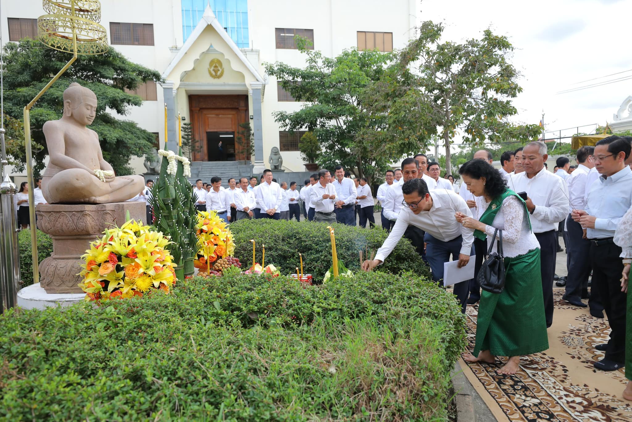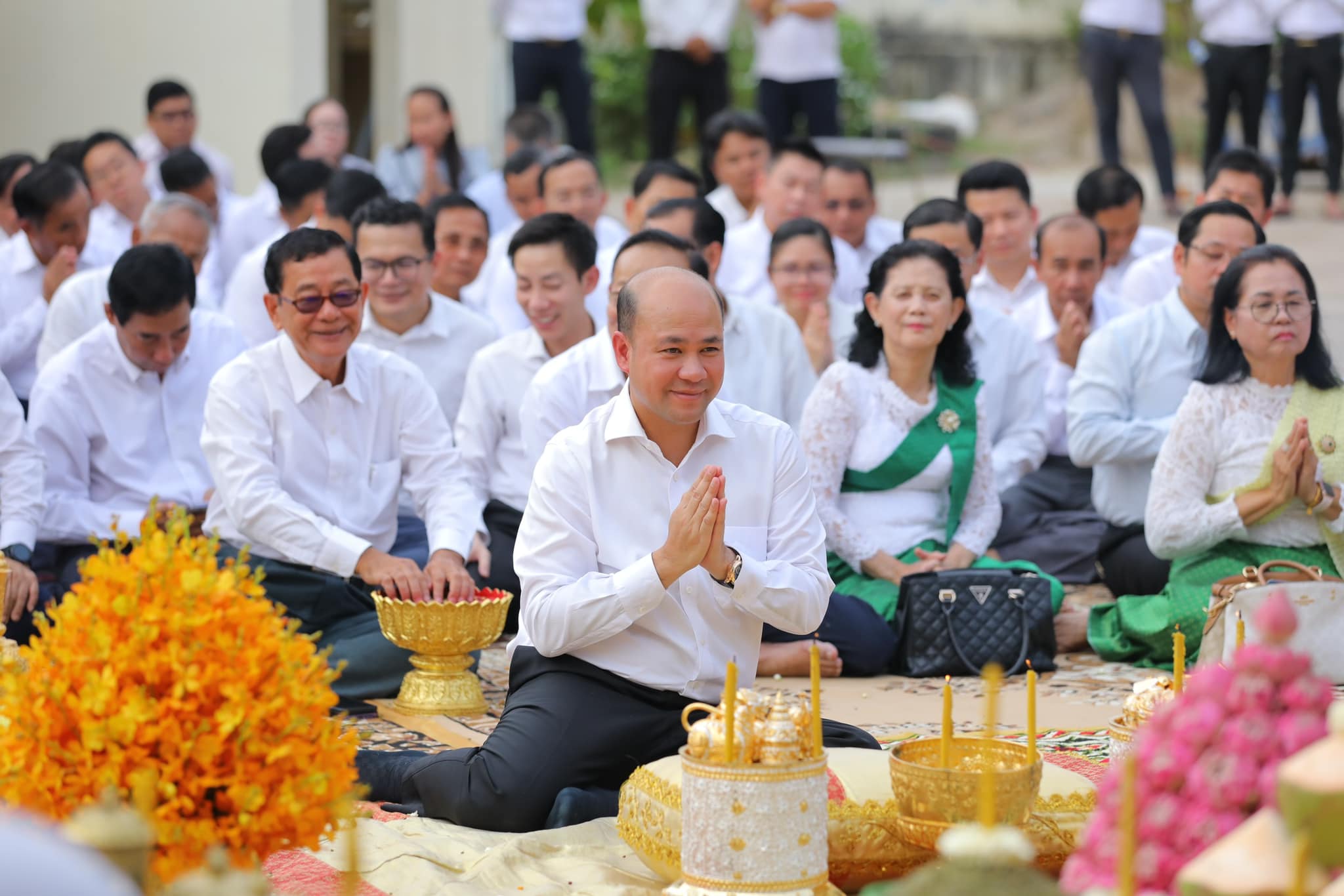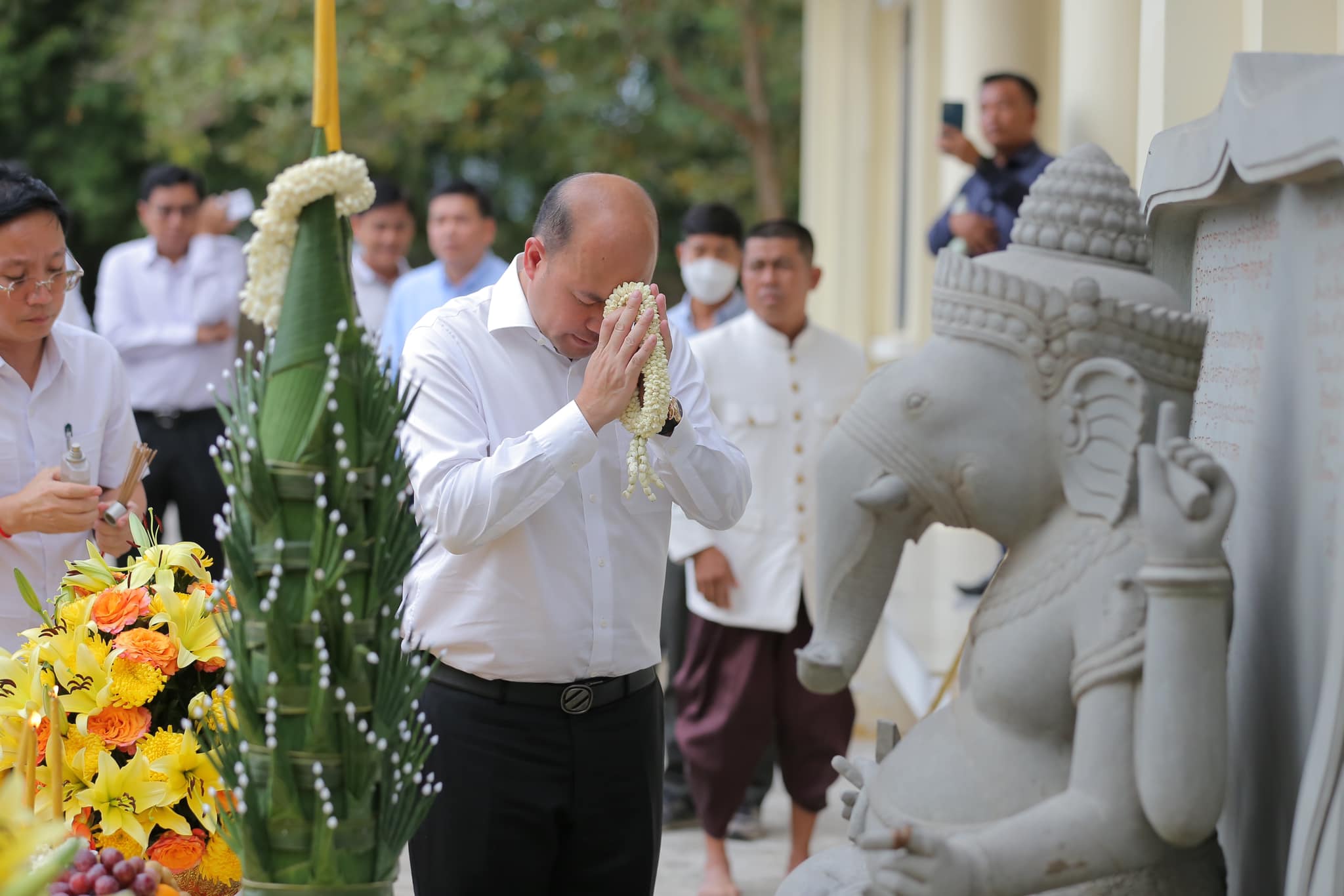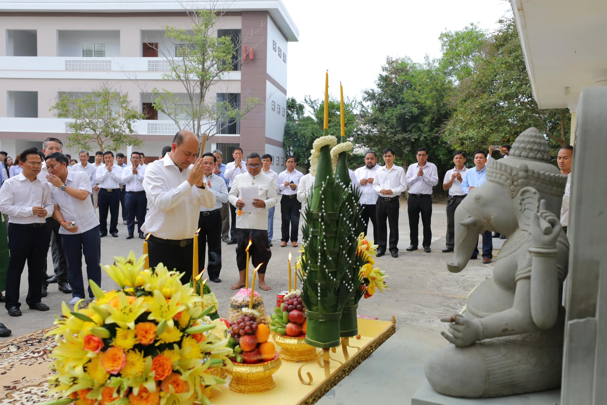 ចាប់ផ្តើមកម្មវិធី ឯកឧត្តមរដ្ឋមន្ត្រីបានថ្វាយគ្រឿងសក្ការៈ បូជាទៀន ផ្កា ទឹកអប់ និងធូប ដល់ទេវរូប មានព្រះគិណេស និងព្រះបាទជ័យវរ្ម័នទី៧។ បន្ទាប់មក ពិធីបួងសួងក្រុងពាលីបានចាប់ផ្តើម អមដោយការថ្វាយភ្លេងពិណពាទ្យចំនួន ៧បទ ផ្សាយមេត្តា និងឧទ្ទិសផល។ រួចមក ឯកឧត្តមរដ្ឋមន្ត្រី ហ៊ុន ម៉ានី បានអញ្ជើញដាក់ថ្ម ផ្កា និងទឹក បញ្ចុះគ្រឹះព្រះភូមិ ព្រមទាំងប្រសិទ្ធពរជ័យជូនឯកឧត្តម លោកជំទាវ លោក លោកស្រីទាំងអស់ ជួបប្រទះតែសេចក្តីសុខនិងសេចក្តីចម្រើន និងប្រកបដោយពុទ្ធពរទាំងបួនប្រការ គឺអាយុ វណ្ណៈ សុខៈ ពលៈ កុំបីឃ្លៀងឃ្លាតឡើយ៕