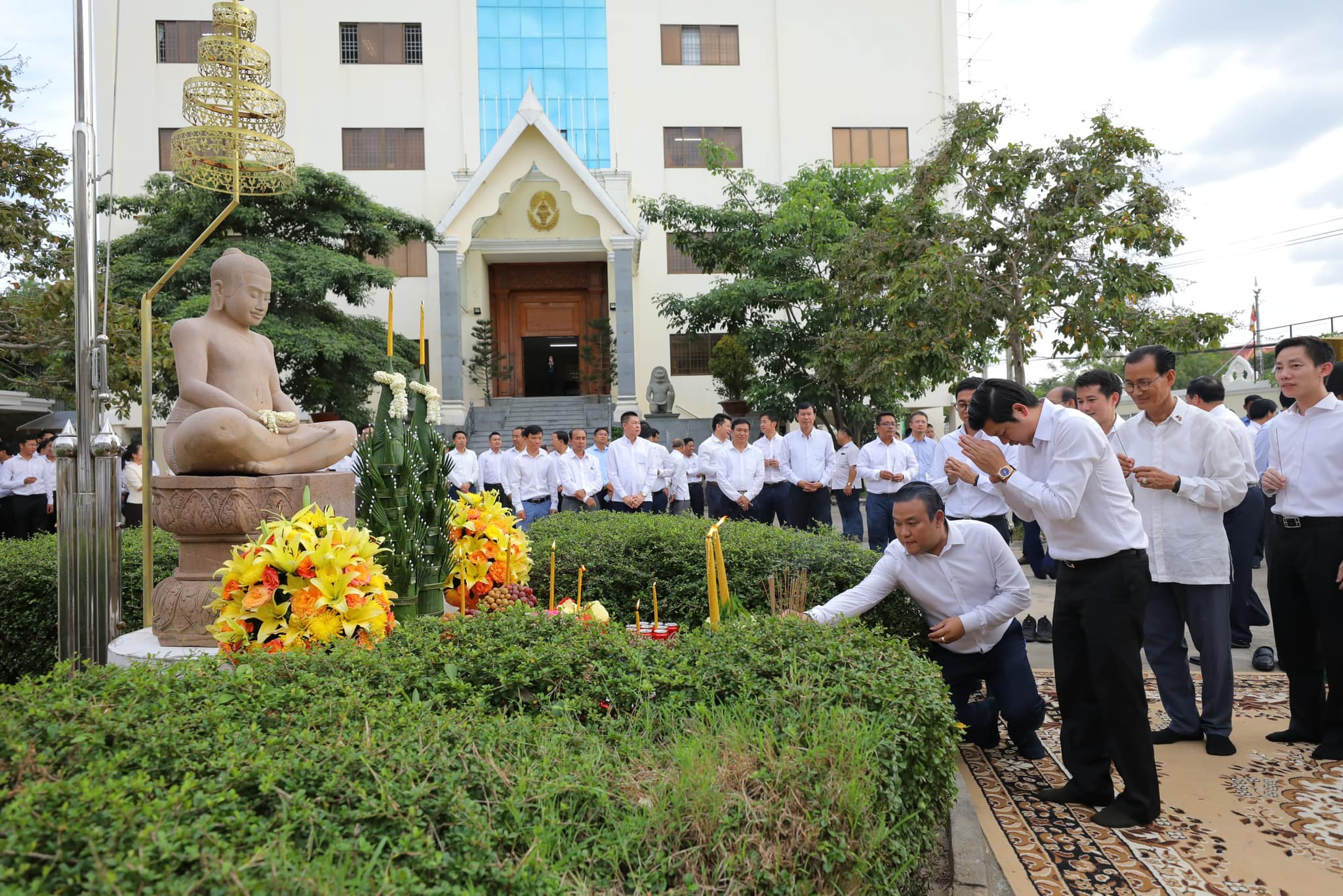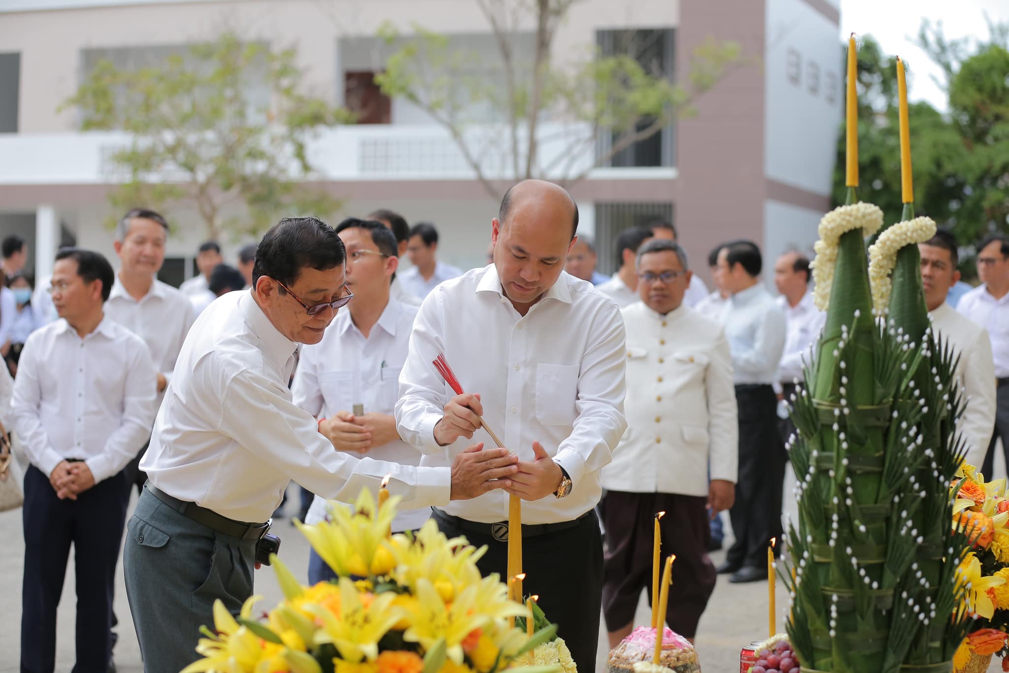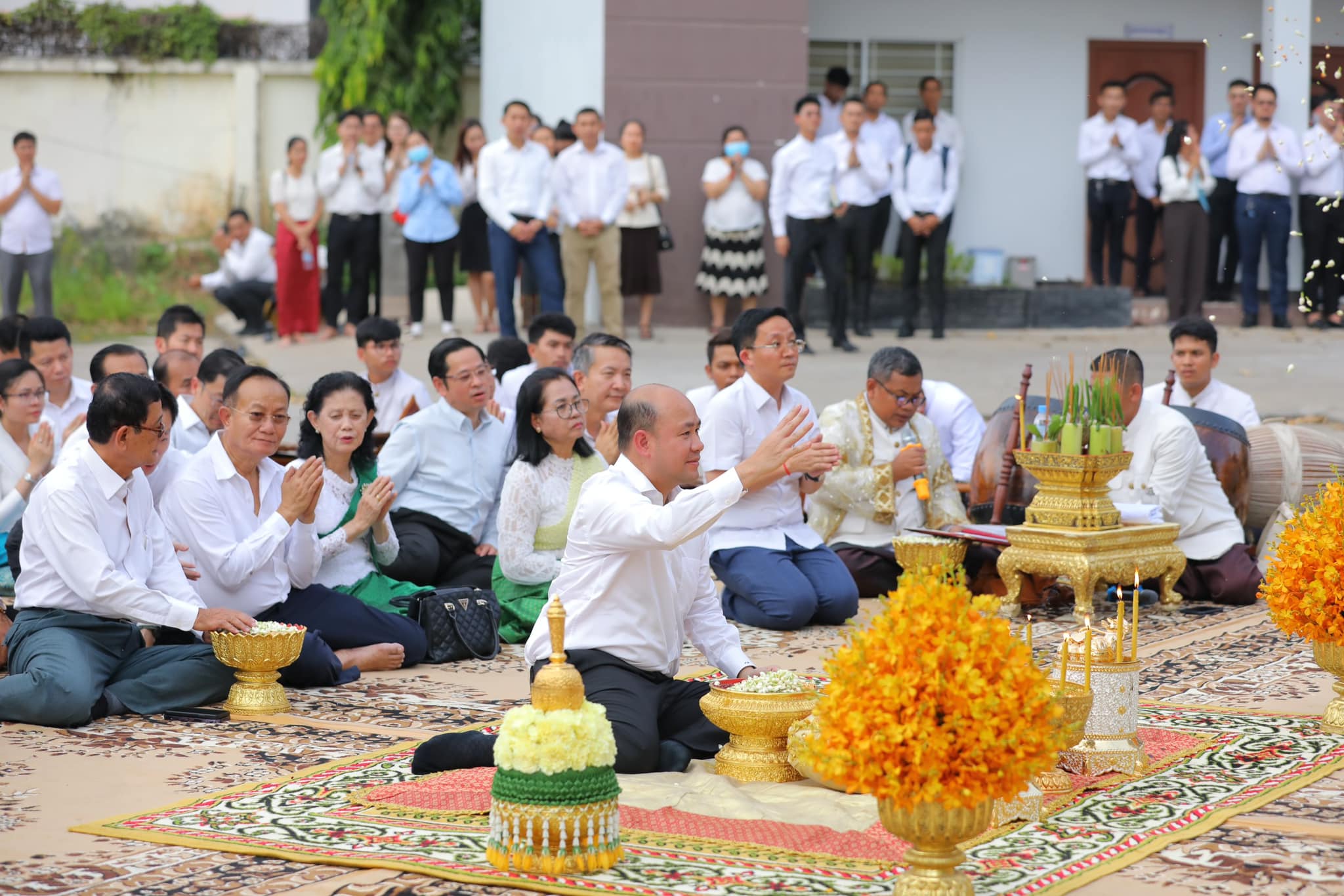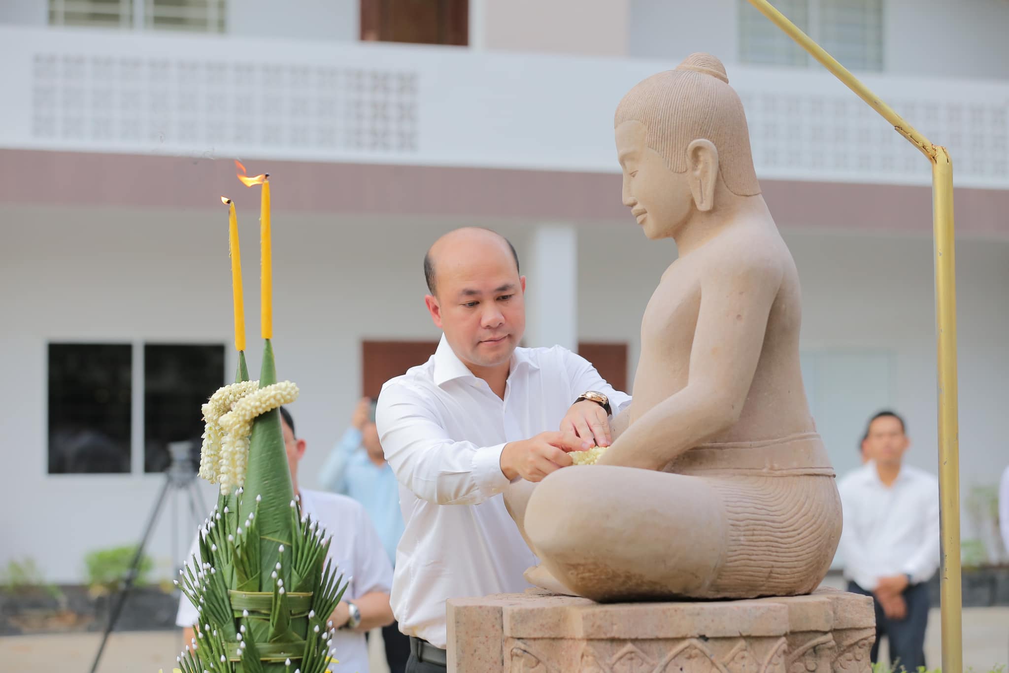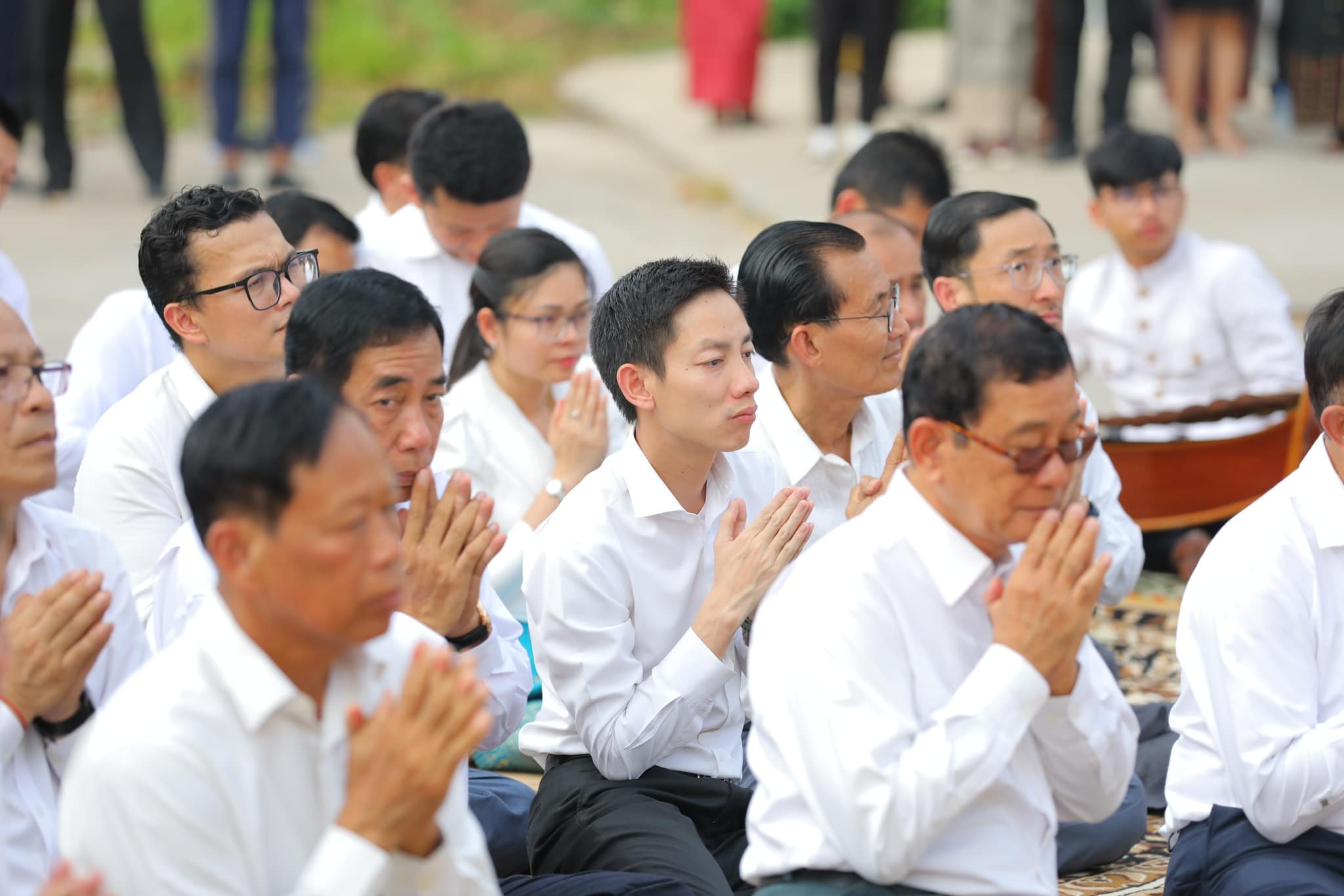 ចាប់ផ្តើមកម្មវិធី ឯកឧត្តមរដ្ឋមន្ត្រីបានថ្វាយគ្រឿងសក្ការៈ បូជាទៀន ផ្កា ទឹកអប់ និងធូប ដល់ទេវរូប មានព្រះគិណេស និងព្រះបាទជ័យវរ្ម័នទី៧។ បន្ទាប់មក ពិធីបួងសួងក្រុងពាលីបានចាប់ផ្តើម អមដោយការថ្វាយភ្លេងពិណពាទ្យចំនួន ៧បទ ផ្សាយមេត្តា និងឧទ្ទិសផល។ រួចមក ឯកឧត្តមរដ្ឋមន្ត្រី ហ៊ុន ម៉ានី បានអញ្ជើញដាក់ថ្ម ផ្កា និងទឹក បញ្ចុះគ្រឹះព្រះភូមិ ព្រមទាំងប្រសិទ្ធពរជ័យជូនឯកឧត្តម លោកជំទាវ លោក លោកស្រីទាំងអស់ ជួបប្រទះតែសេចក្តីសុខនិងសេចក្តីចម្រើន និងប្រកបដោយពុទ្ធពរទាំងបួនប្រការ គឺអាយុ វណ្ណៈ សុខៈ ពលៈ កុំបីឃ្លៀងឃ្លាតឡើយ៕