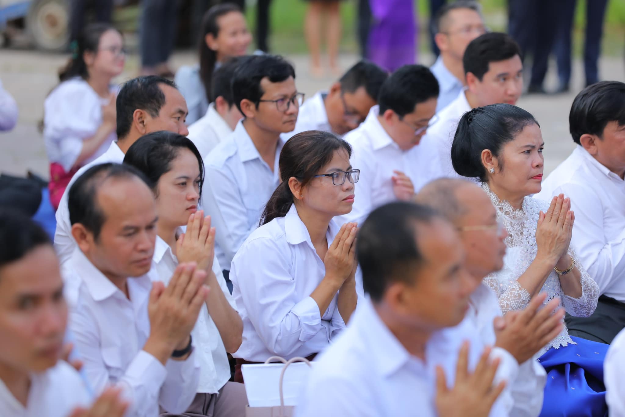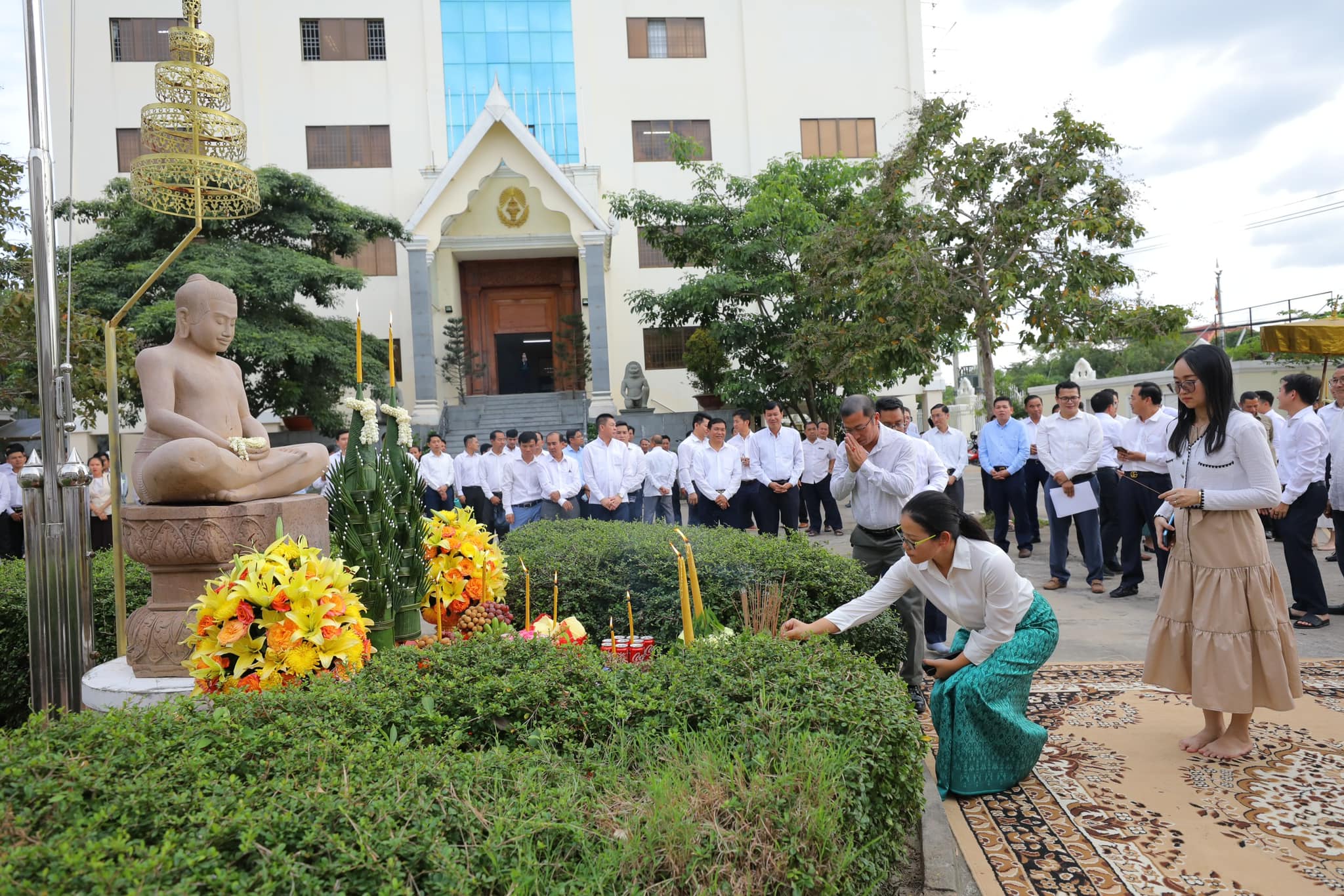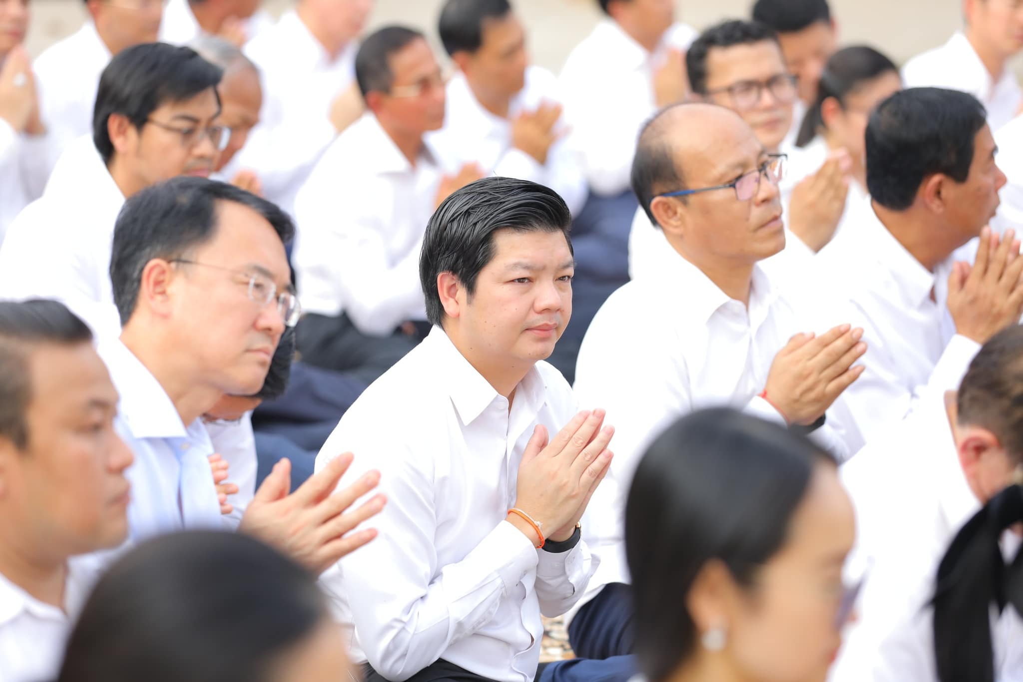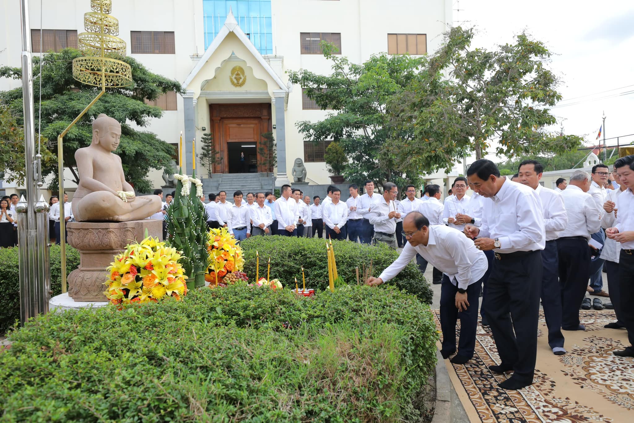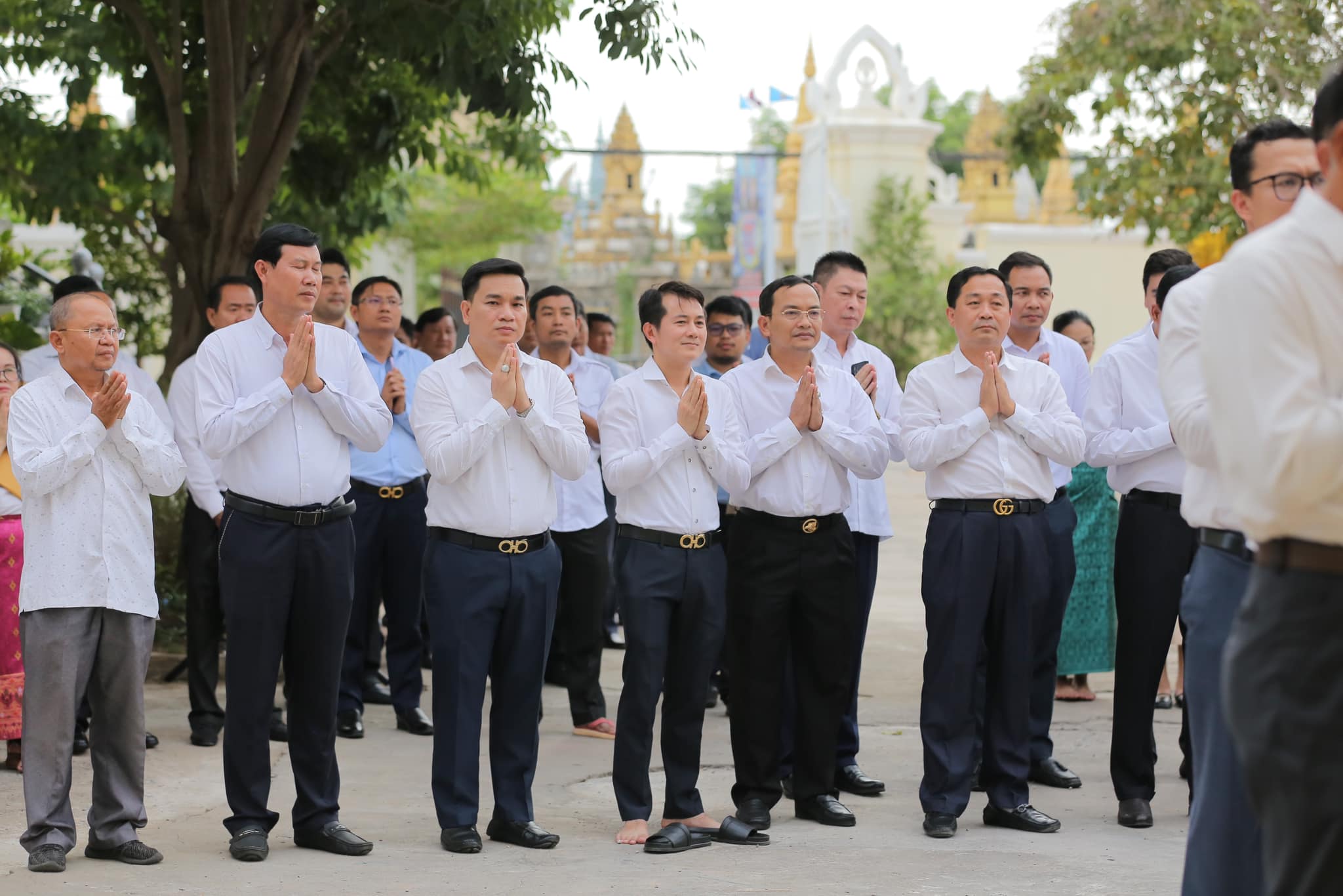 ចាប់ផ្តើមកម្មវិធី ឯកឧត្តមរដ្ឋមន្ត្រីបានថ្វាយគ្រឿងសក្ការៈ បូជាទៀន ផ្កា ទឹកអប់ និងធូប ដល់ទេវរូប មានព្រះគិណេស និងព្រះបាទជ័យវរ្ម័នទី៧។ បន្ទាប់មក ពិធីបួងសួងក្រុងពាលីបានចាប់ផ្តើម អមដោយការថ្វាយភ្លេងពិណពាទ្យចំនួន ៧បទ ផ្សាយមេត្តា និងឧទ្ទិសផល។ រួចមក ឯកឧត្តមរដ្ឋមន្ត្រី ហ៊ុន ម៉ានី បានអញ្ជើញដាក់ថ្ម ផ្កា និងទឹក បញ្ចុះគ្រឹះព្រះភូមិ ព្រមទាំងប្រសិទ្ធពរជ័យជូនឯកឧត្តម លោកជំទាវ លោក លោកស្រីទាំងអស់ ជួបប្រទះតែសេចក្តីសុខនិងសេចក្តីចម្រើន និងប្រកបដោយពុទ្ធពរទាំងបួនប្រការ គឺអាយុ វណ្ណៈ សុខៈ ពលៈ កុំបីឃ្លៀងឃ្លាតឡើយ៕
