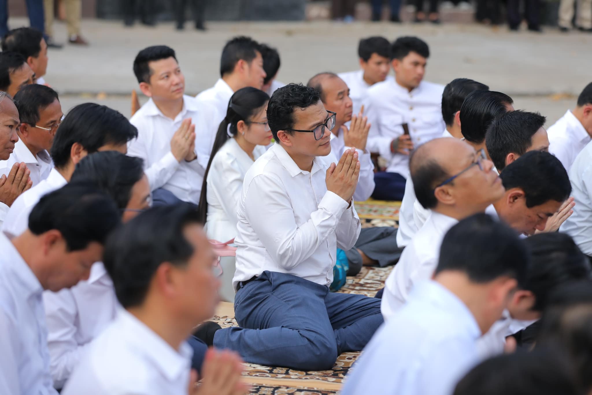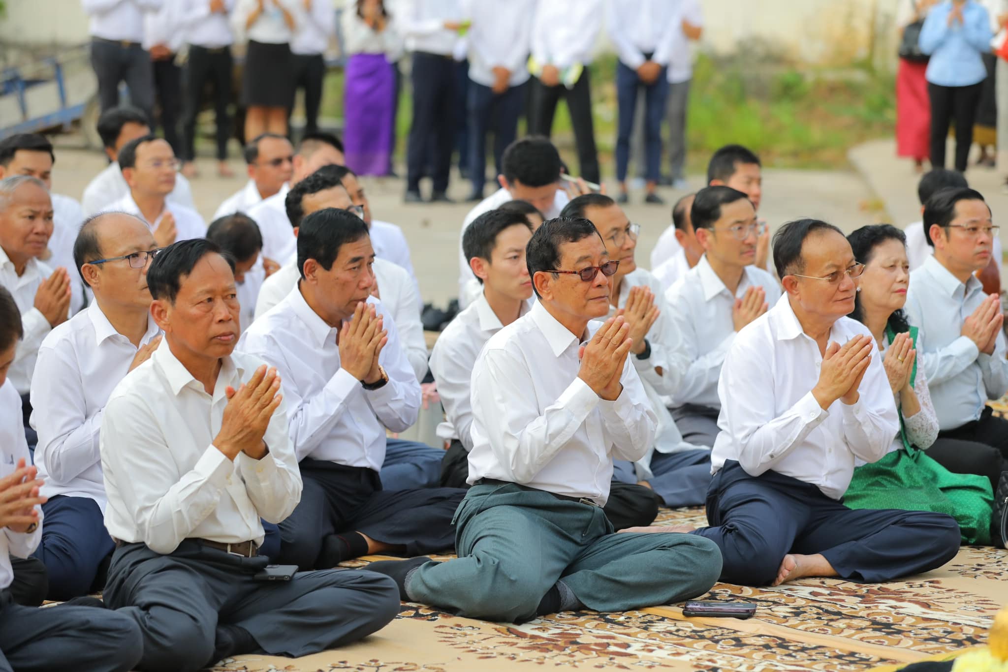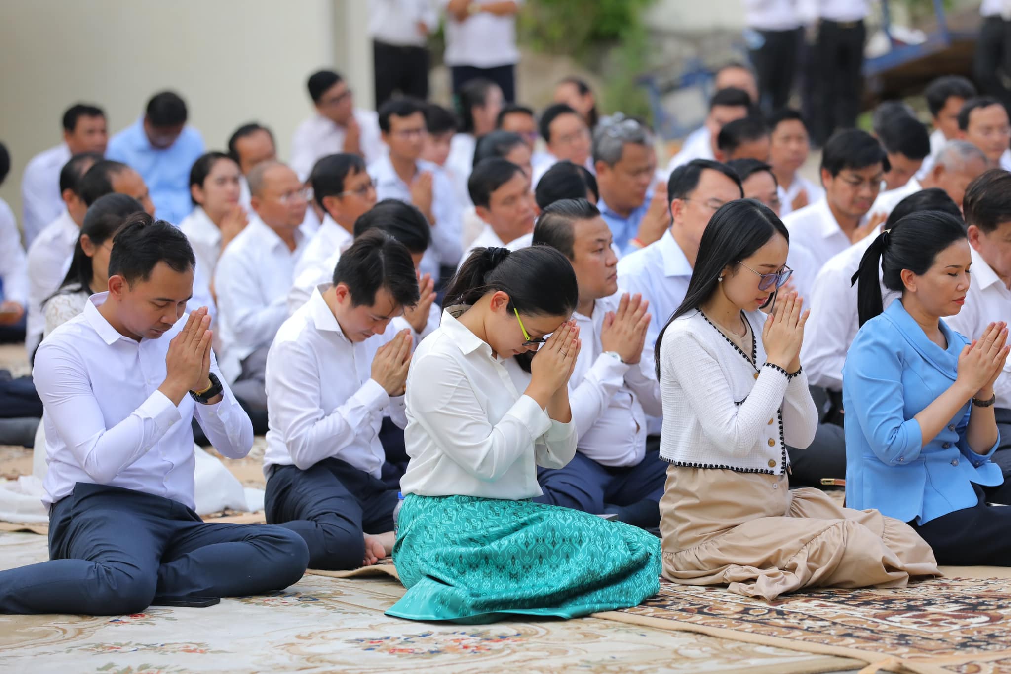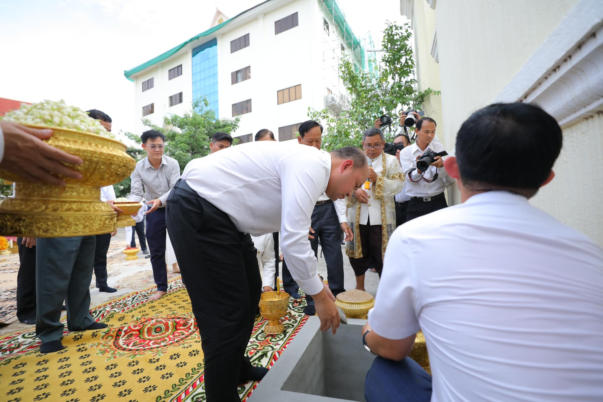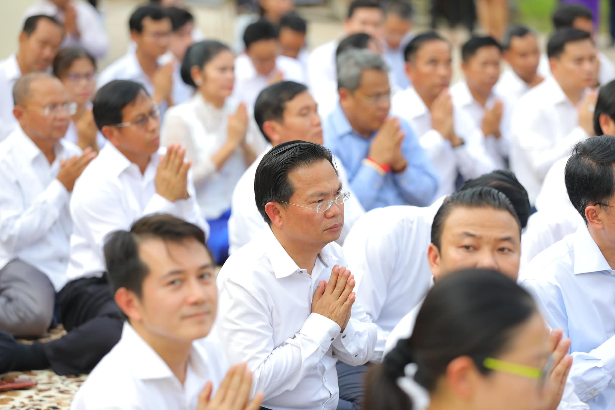 ចាប់ផ្តើមកម្មវិធី ឯកឧត្តមរដ្ឋមន្ត្រីបានថ្វាយគ្រឿងសក្ការៈ បូជាទៀន ផ្កា ទឹកអប់ និងធូប ដល់ទេវរូប មានព្រះគិណេស និងព្រះបាទជ័យវរ្ម័នទី៧។ បន្ទាប់មក ពិធីបួងសួងក្រុងពាលីបានចាប់ផ្តើម អមដោយការថ្វាយភ្លេងពិណពាទ្យចំនួន ៧បទ ផ្សាយមេត្តា និងឧទ្ទិសផល។ រួចមក ឯកឧត្តមរដ្ឋមន្ត្រី ហ៊ុន ម៉ានី បានអញ្ជើញដាក់ថ្ម ផ្កា និងទឹក បញ្ចុះគ្រឹះព្រះភូមិ ព្រមទាំងប្រសិទ្ធពរជ័យជូនឯកឧត្តម លោកជំទាវ លោក លោកស្រីទាំងអស់ ជួបប្រទះតែសេចក្តីសុខនិងសេចក្តីចម្រើន និងប្រកបដោយពុទ្ធពរទាំងបួនប្រការ គឺអាយុ វណ្ណៈ សុខៈ ពលៈ កុំបីឃ្លៀងឃ្លាតឡើយ៕