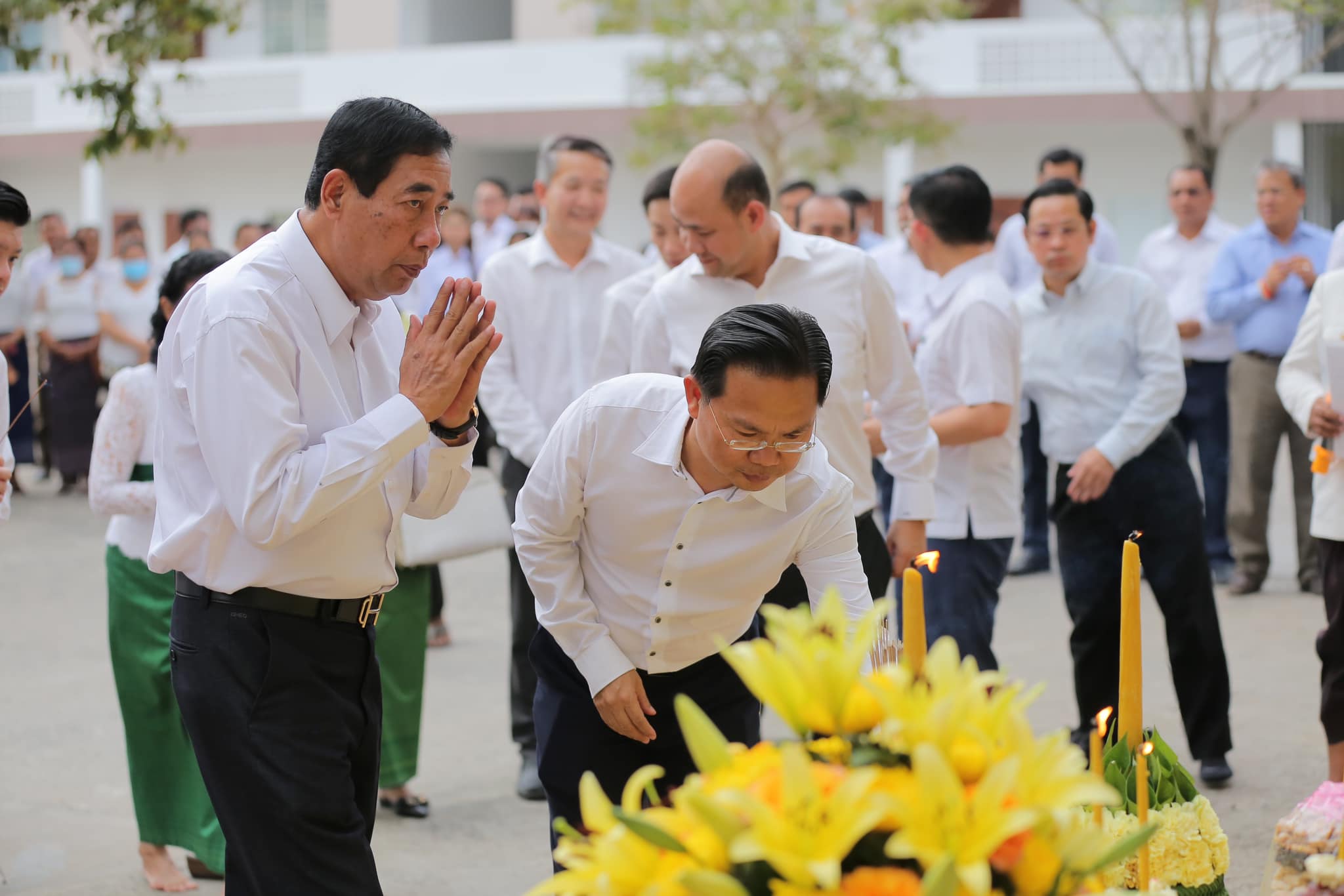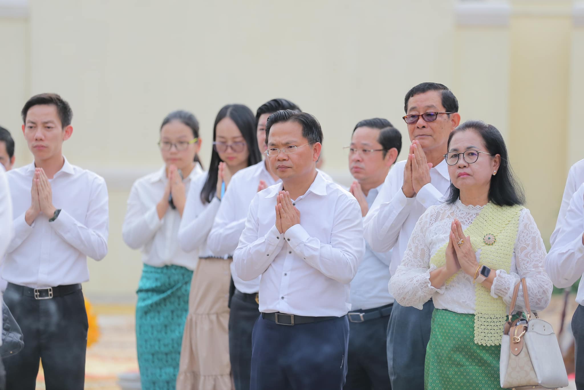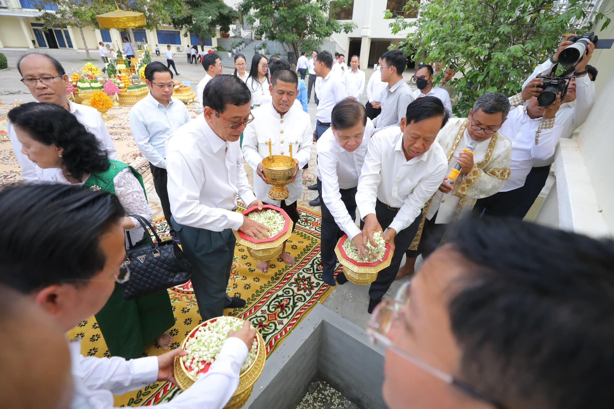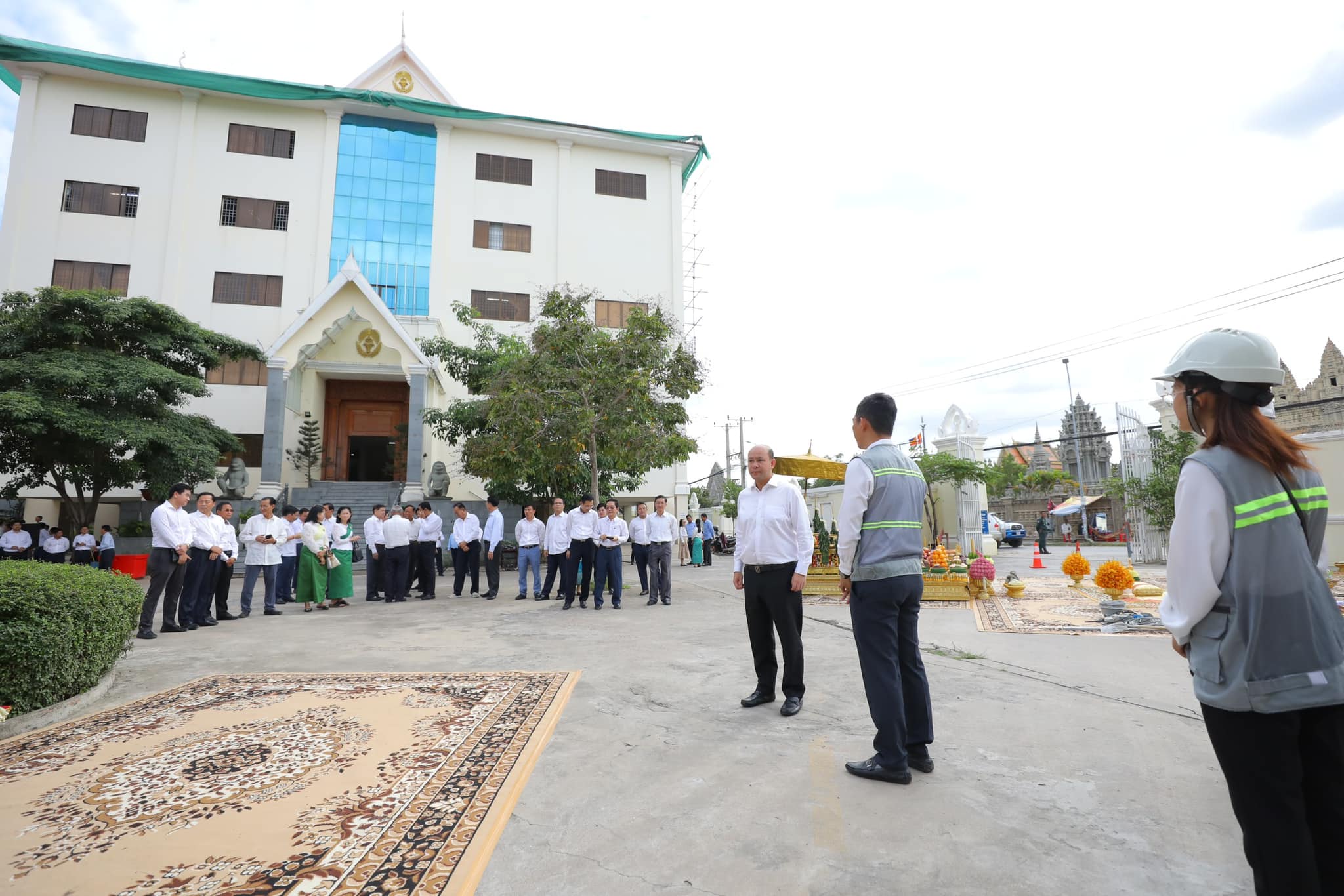 ចាប់ផ្តើមកម្មវិធី ឯកឧត្តមរដ្ឋមន្ត្រីបានថ្វាយគ្រឿងសក្ការៈ បូជាទៀន ផ្កា ទឹកអប់ និងធូប ដល់ទេវរូប មានព្រះគិណេស និងព្រះបាទជ័យវរ្ម័នទី៧។ បន្ទាប់មក ពិធីបួងសួងក្រុងពាលីបានចាប់ផ្តើម អមដោយការថ្វាយភ្លេងពិណពាទ្យចំនួន ៧បទ ផ្សាយមេត្តា និងឧទ្ទិសផល។ រួចមក ឯកឧត្តមរដ្ឋមន្ត្រី ហ៊ុន ម៉ានី បានអញ្ជើញដាក់ថ្ម ផ្កា និងទឹក បញ្ចុះគ្រឹះព្រះភូមិ ព្រមទាំងប្រសិទ្ធពរជ័យជូនឯកឧត្តម លោកជំទាវ លោក លោកស្រីទាំងអស់ ជួបប្រទះតែសេចក្តីសុខនិងសេចក្តីចម្រើន និងប្រកបដោយពុទ្ធពរទាំងបួនប្រការ គឺអាយុ វណ្ណៈ សុខៈ ពលៈ កុំបីឃ្លៀងឃ្លាតឡើយ៕