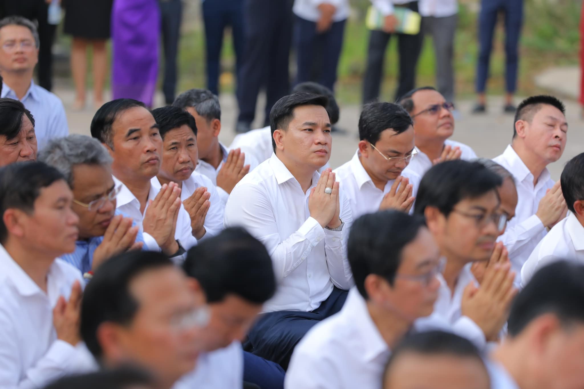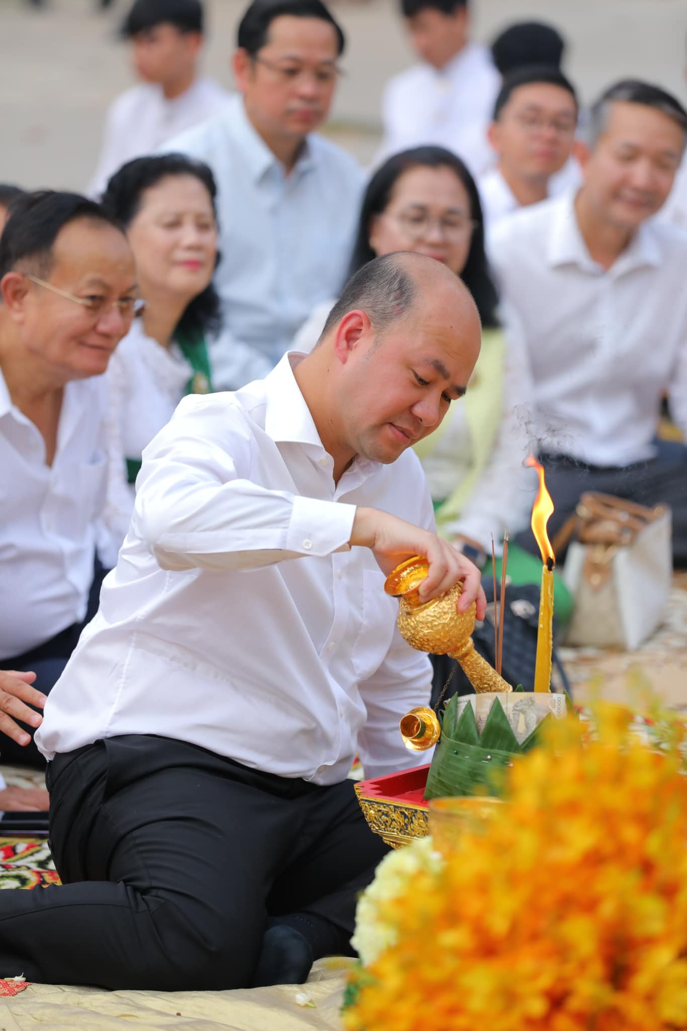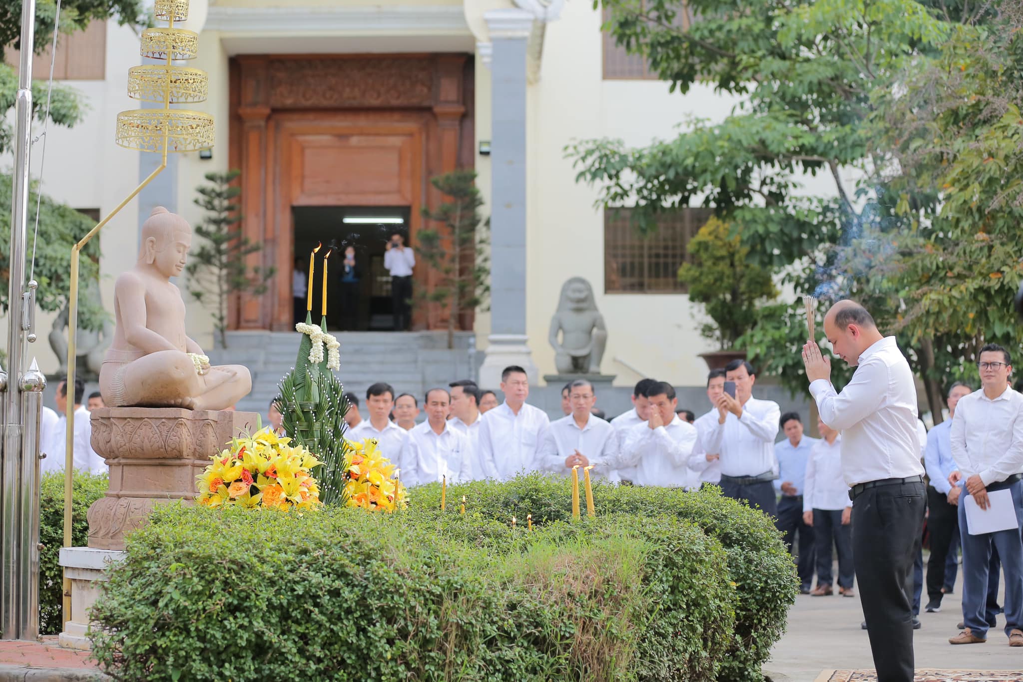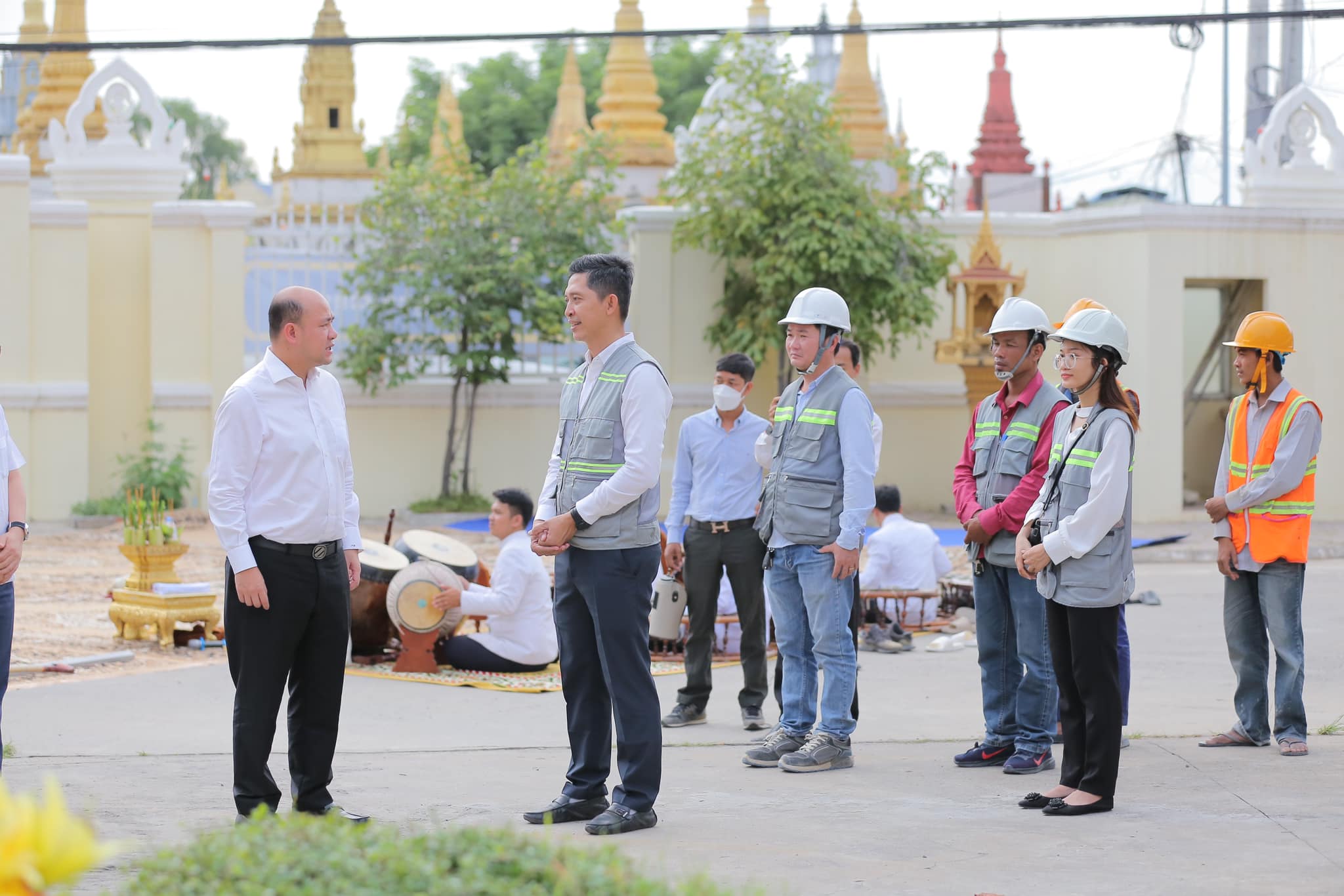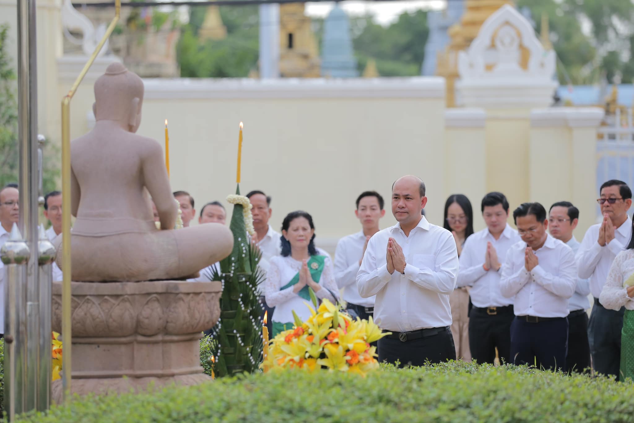 ចាប់ផ្តើមកម្មវិធី ឯកឧត្តមរដ្ឋមន្ត្រីបានថ្វាយគ្រឿងសក្ការៈ បូជាទៀន ផ្កា ទឹកអប់ និងធូប ដល់ទេវរូប មានព្រះគិណេស និងព្រះបាទជ័យវរ្ម័នទី៧។ បន្ទាប់មក ពិធីបួងសួងក្រុងពាលីបានចាប់ផ្តើម អមដោយការថ្វាយភ្លេងពិណពាទ្យចំនួន ៧បទ ផ្សាយមេត្តា និងឧទ្ទិសផល។ រួចមក ឯកឧត្តមរដ្ឋមន្ត្រី ហ៊ុន ម៉ានី បានអញ្ជើញដាក់ថ្ម ផ្កា និងទឹក បញ្ចុះគ្រឹះព្រះភូមិ ព្រមទាំងប្រសិទ្ធពរជ័យជូនឯកឧត្តម លោកជំទាវ លោក លោកស្រីទាំងអស់ ជួបប្រទះតែសេចក្តីសុខនិងសេចក្តីចម្រើន និងប្រកបដោយពុទ្ធពរទាំងបួនប្រការ គឺអាយុ វណ្ណៈ សុខៈ ពលៈ កុំបីឃ្លៀងឃ្លាតឡើយ៕