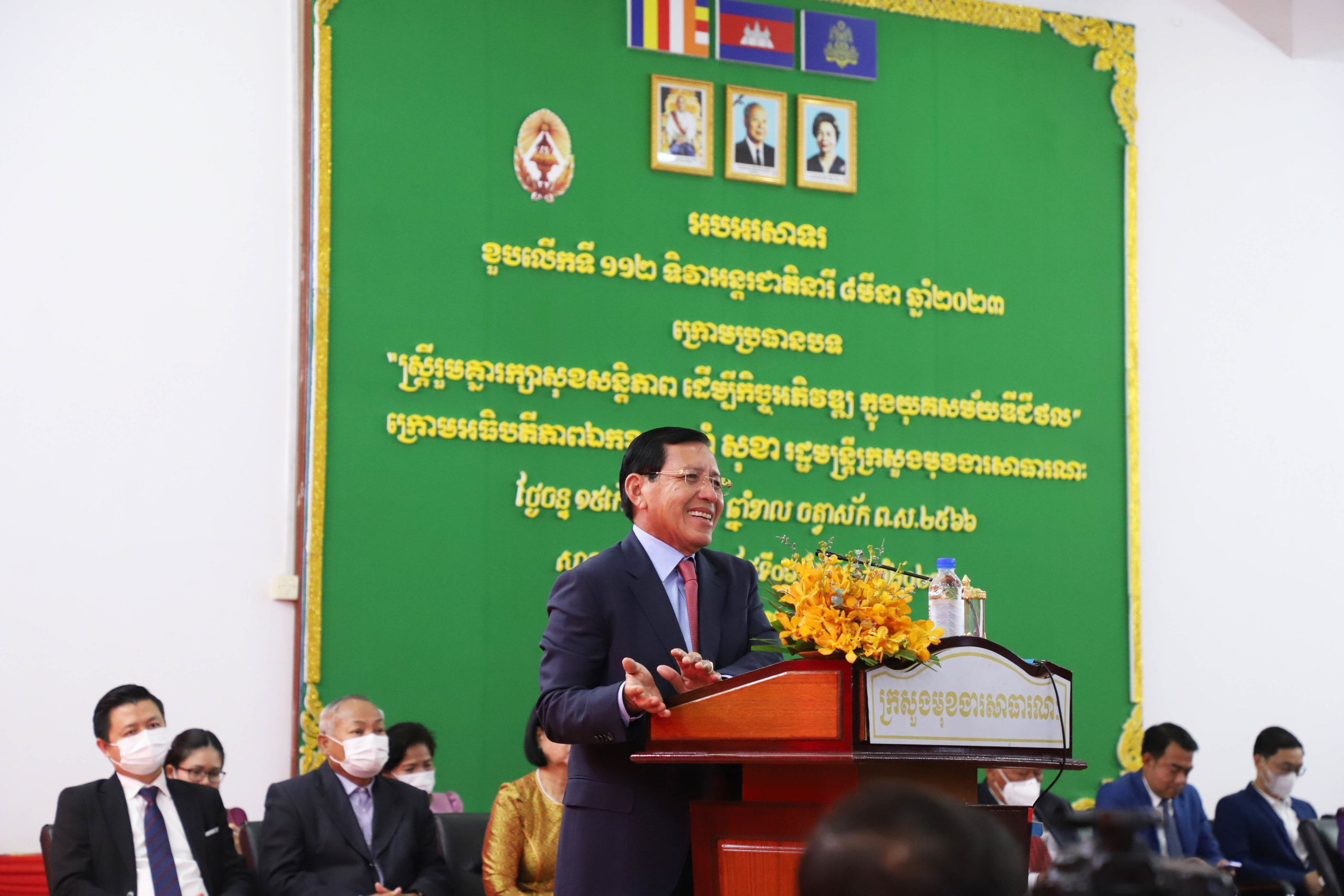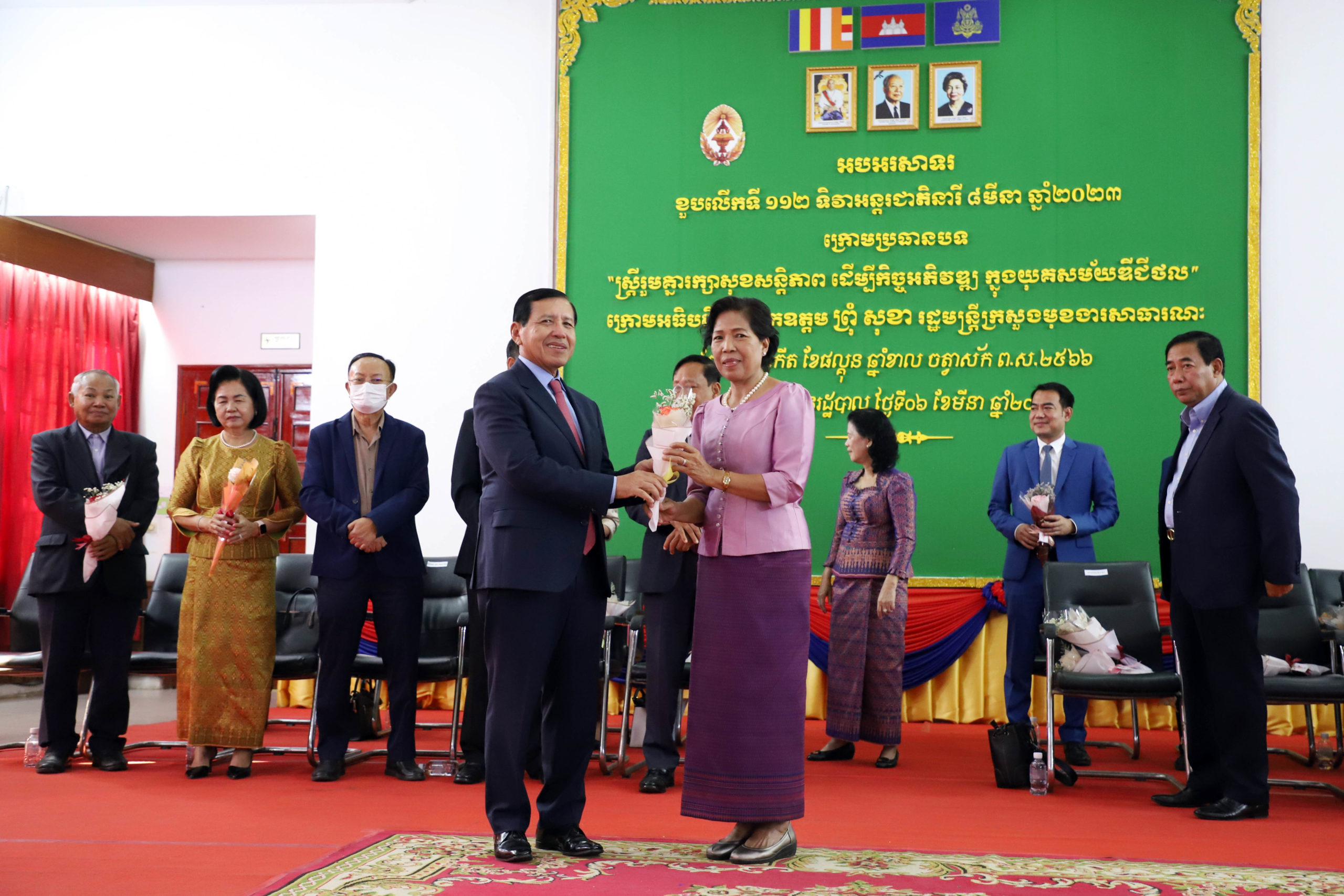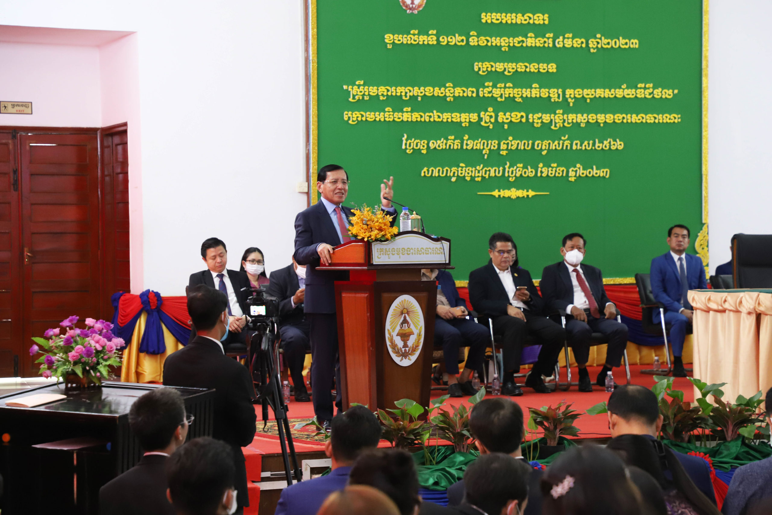 (ភ្នំពេញ)៖ កាលពីរសៀលថ្ងៃទី៦ ខែមីនា ឆ្នាំ២០២៣ ឯកឧត្តម ព្រុំ សុខា រដ្ឋមន្រ្តីក្រសួងមុខងារសាធារណៈ និងជាប្រធានគណៈកម្មាធិការកំណែទម្រង់រដ្ឋបាលសាធារណៈ បានចូលរួមប្រារព្ធពិធីអបអរសាទរទិវាអន្តរជាតិនារី ៨ មីនា ខួបលើកទី១១២ ឆ្នាំ២០២៣ ក្រោមមូលបទ «ស្រ្តីរួមគ្នារក្សាសុខសន្តិភាព ដើម្បីកិច្ចអភិវឌ្ឍ ក្នុងយុគសម័យឌីជីថល»។ ពិធីនេះបានប្រព្រឹត្តទៅនៅសាលសហសិក្សានៃសាលាភូមិន្ទរដ្ឋបាល ដោយមានការអញ្ជើញចូលរួមពីសំណាក់ថ្នាក់ដឹកនាំ និងមន្ត្រីជាស្រ្តីនៃក្រសួងមុខងារសាធារណៈ សរុបអ្នកចូលរួមមានចំនួនប្រមាណជាង ៣០០នាក់៕