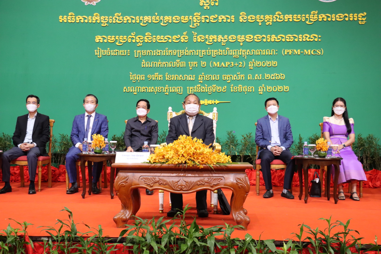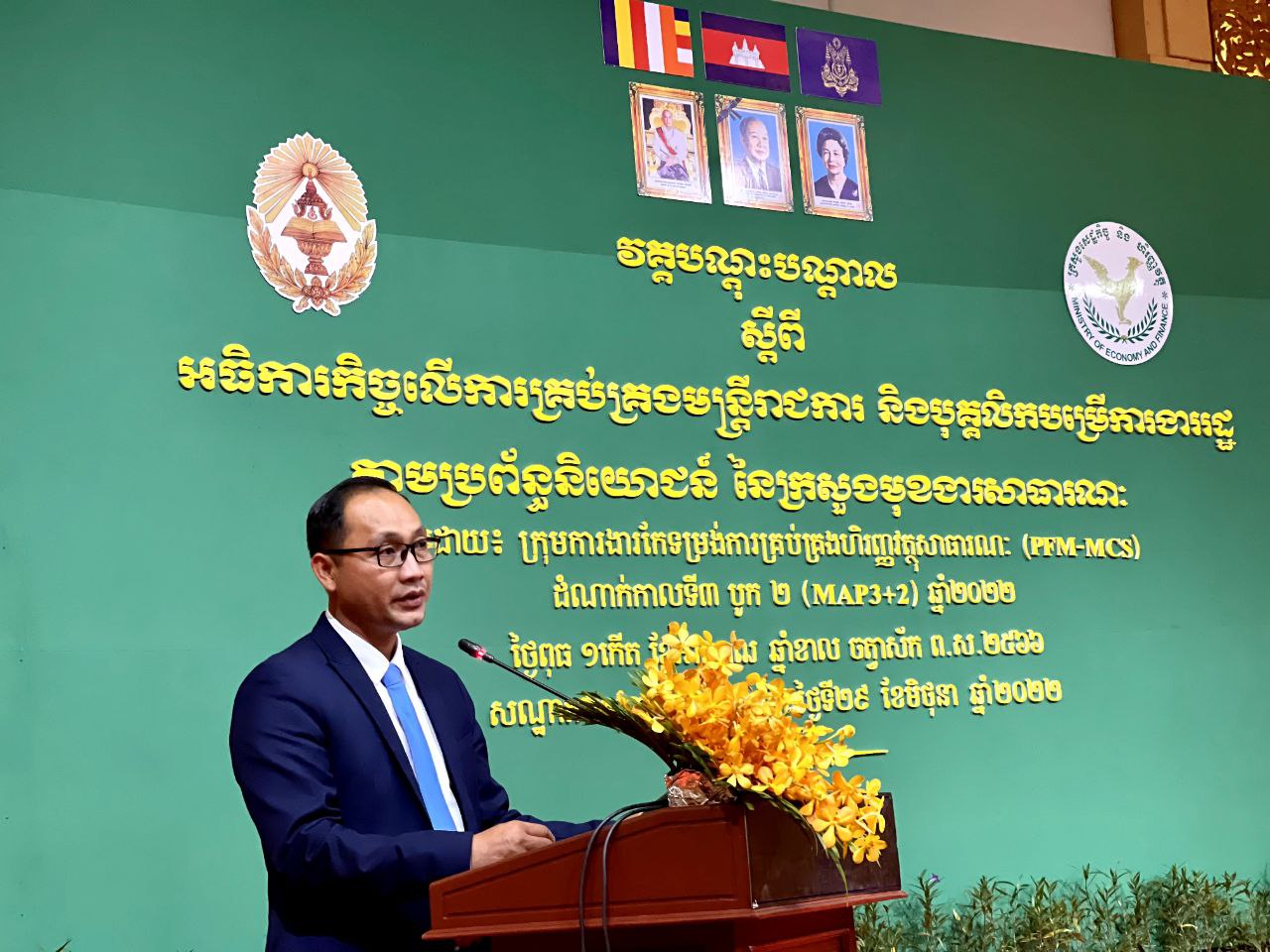 (ភ្នំពេញ)៖ នៅព្រឹកថ្ងៃទី២៩ ខែមិថុនា ឆ្នាំ២០២២ ឯកឧត្តម អែវ ប៊ុនថុល រដ្ឋលេខាធិការ តំណាងដ៏ខ្ពង់ខ្ពស់របស់ ឯកឧត្តម ព្រុំ សុខា រដ្ឋមន្ត្រីក្រសួងមុខងារសាធារណៈ បានអញ្ជើញជាអធិបតីក្នុងពិធីបើកវគ្គបណ្តុះបណ្តាលស្តីពី “អធិការកិច្ចលើការគ្រប់គ្រងមន្ត្រីរាជការ និងបុគ្គលិកបម្រើការងាររដ្ឋតាមប្រព័ន្ធនិយោជន៍”។