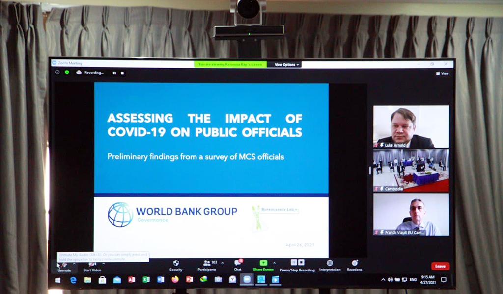 ក្រសួងមុខងារសាធារណៈសហការជាមួយធនាគារពិភពលោកធ្វើសិក្ខាសាលាតាមប្រព័ន្ធអនឡាញ ស្តីពីផែនការការបន្តនិរន្តរភាពការងារ