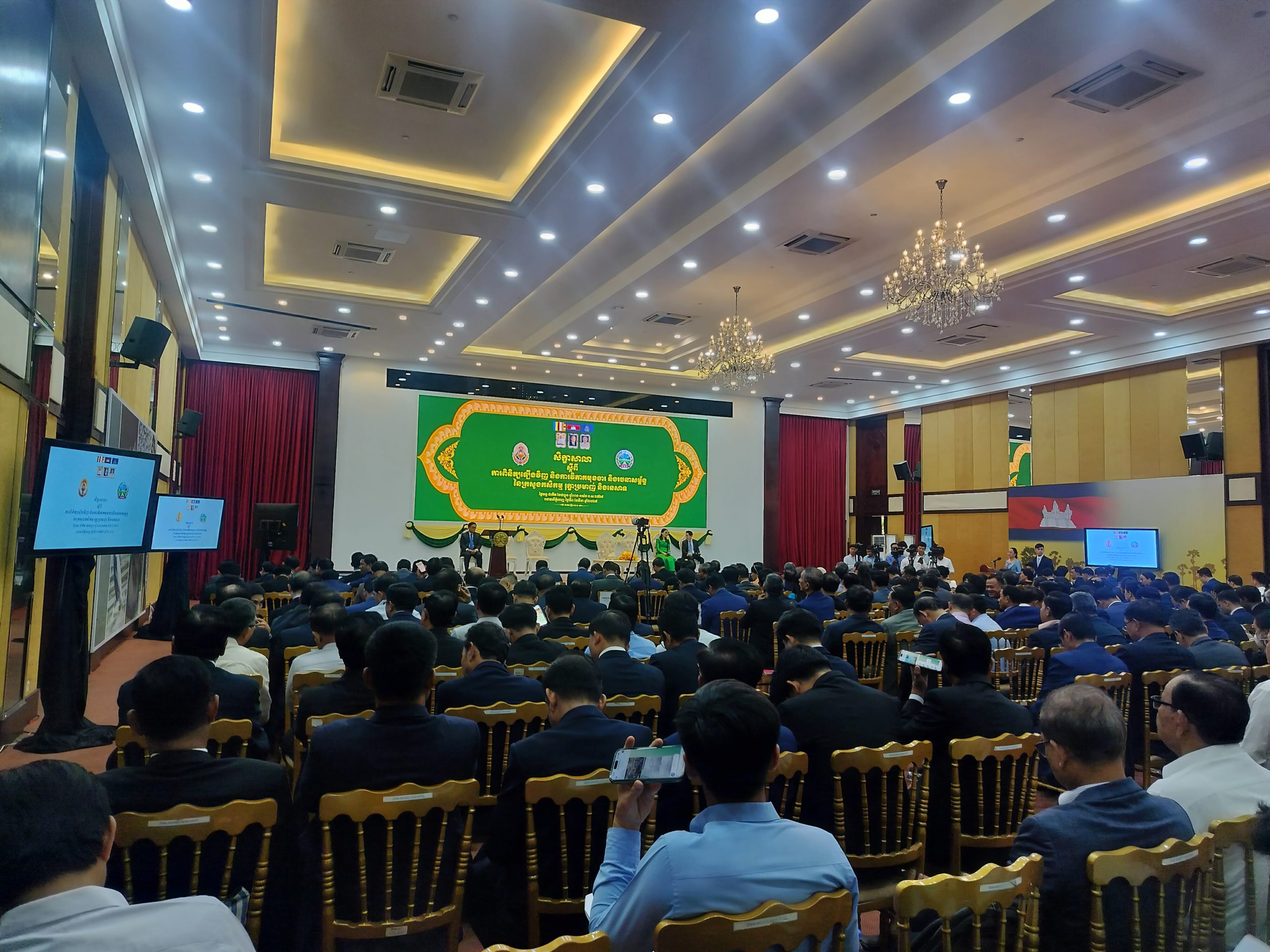 ឯកឧត្តម ហ៊ុន ម៉ានី ឧបនាយករដ្ឋមន្ត្រី រដ្ឋមន្ត្រីក្រសួងមុខងារសាធារណៈ កំពុងអញ្ជើញជាអធិបតីដ៏ខ្ពង់ខ្ពស់ ក្នុងសិក្ខាសាលាស្តីពី «ការពិនិត្យឡើងវិញ និងការវិភាគមុខងារ និងរចនាសម្ព័ន្ធនៃក្រសួងកសិកម្ម រុក្ខាប្រមាញ់ និងនេសាទ» ដោយមានវត្តមានអញ្ជើញចូលរួមដោយ ឯកឧត្តម ឌិត ទីណា រដ្ឋមន្ត្រីក្រសួងកសិកម្ម រុក្ខាប្រមាញ់ និងនេសាទ ព្រមទាំងថ្នាក់ដឹកនាំ និងមន្ត្រីជំនាញនៃក្រសួងទាំងពីរ។