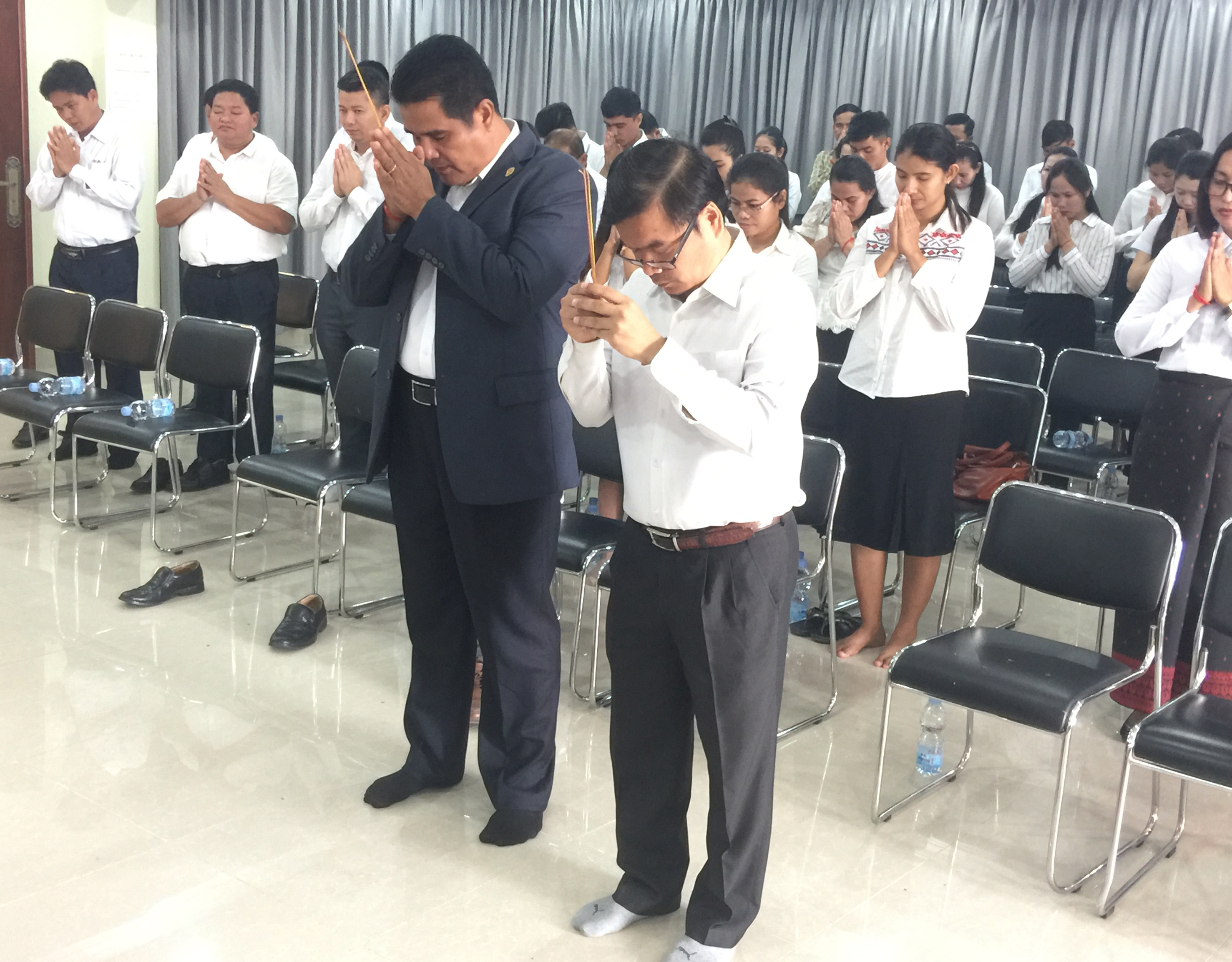 *នាព្រឹកថ្ងៃដដែលនេះដែរ នៅទីស្តីការក្រសួងមុខងារសាធារណៈក៏មានរៀបចំពិធីថ្វាយកម្រងផ្កាគោរពព្រះវិញ្ញាណក្ខន្ធ ព្រះករុណា “ព្រះបរមរតនកោដ្ឋ” ដោយមានការអញ្ជើញចូលរួមពីថ្នាក់ដឹកនាំ និងមន្ត្រីរាជការនៅក្នុងក្រសួងមុខងារសាធារណៈ។