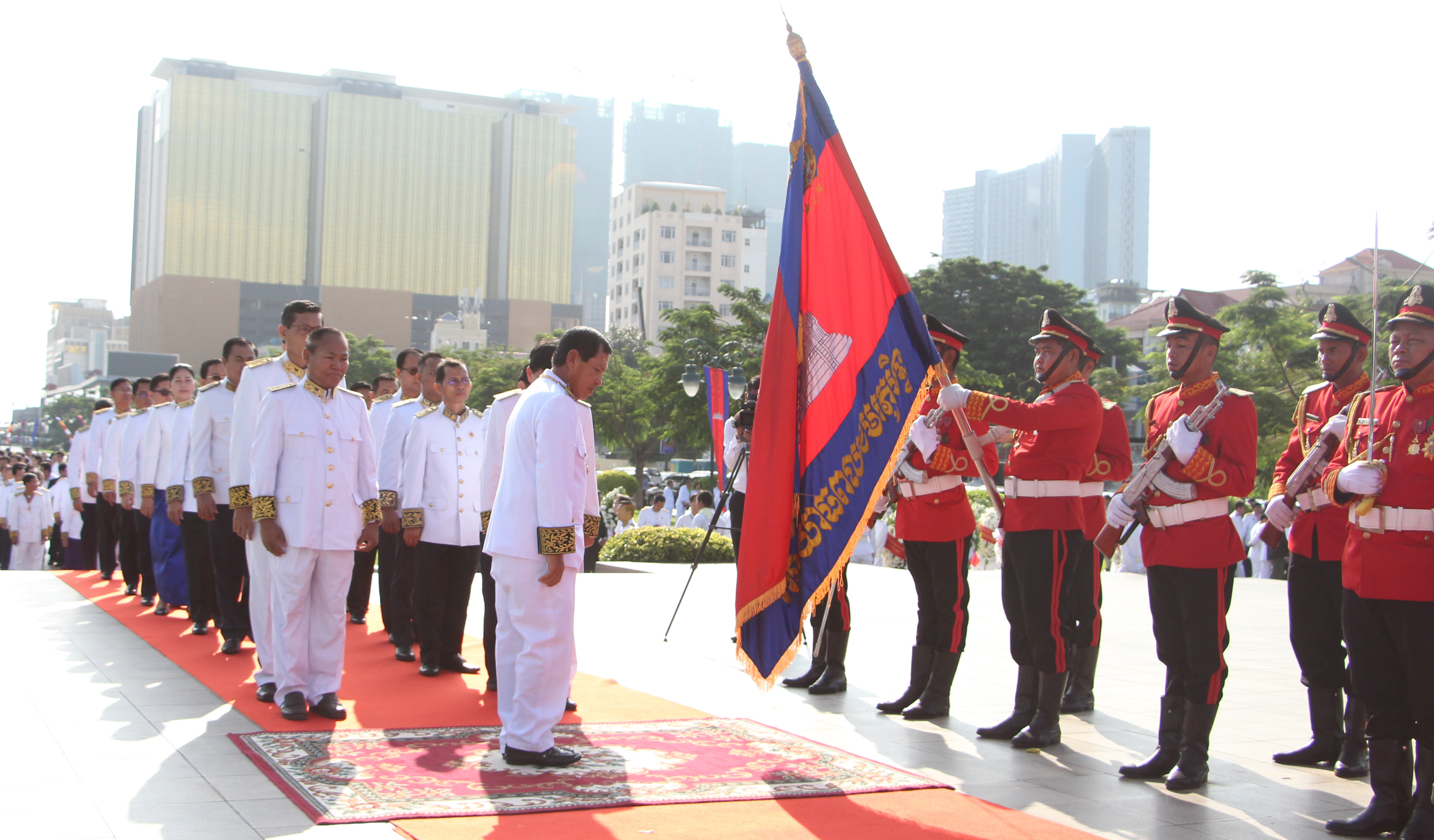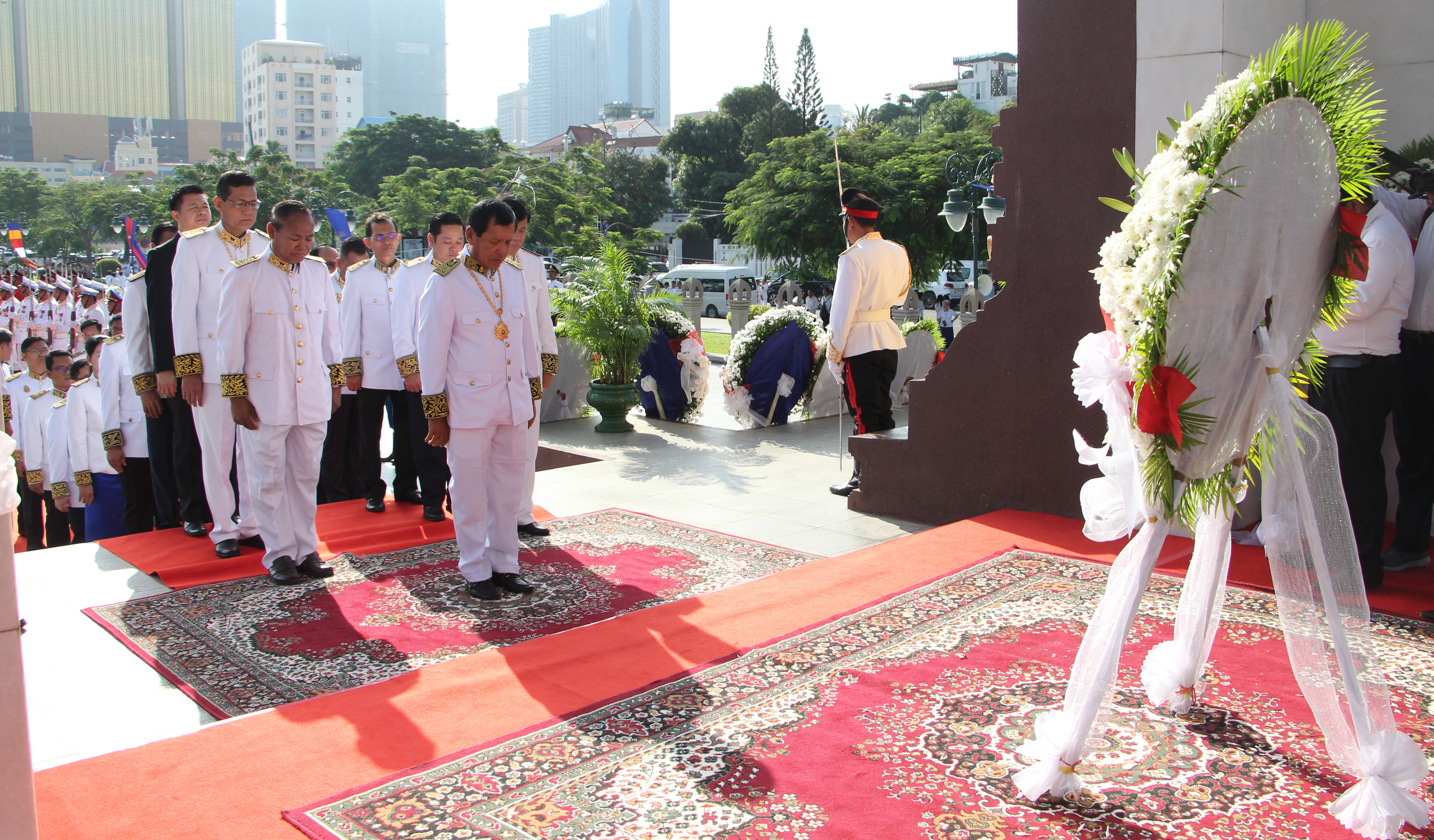 រាជធានីភ្នំពេញ៖ នាព្រឹកថ្ងៃអង្គារ ២រោច ខែអស្សុជ ឆ្នាំកុរ ឯកស័ក ព.ស. ២៥៦៣ ត្រូវនឹងថ្ងៃទី១៥ ខែតុលា ឆ្នាំ២០១៩ ឯកឧត្តម ព្រុំ សុខា រដ្ឋលេខាធិការប្រចាំការនៃក្រសួងមុខងារសារធារណៈ រួមជាមួយថ្នាក់ដឹកនាំក្រសួងមុខងារសាធារណៈ បានអញ្ជើញចូលរួមពិធីថ្វាយកម្រងផ្កាគោរពព្រះវិញ្ញាណក្ខន្ធ ព្រះករុណាព្រះបាទសម្ដេច ព្រះនរោត្ដម សីហនុ ព្រះមហាវីរក្សត្រ ព្រះវររាជបិតា ឯករាជ្យ បូរណភាពទឹកដី និងឯកភាពជាតិខ្មែរ “ព្រះបរមរតនកោដ្ឋ” គម្រប់ខួប៧ឆ្នាំ នៅមណ្ឌបសួនច្បារខាងកើតវិមានឯករាជ្យ។