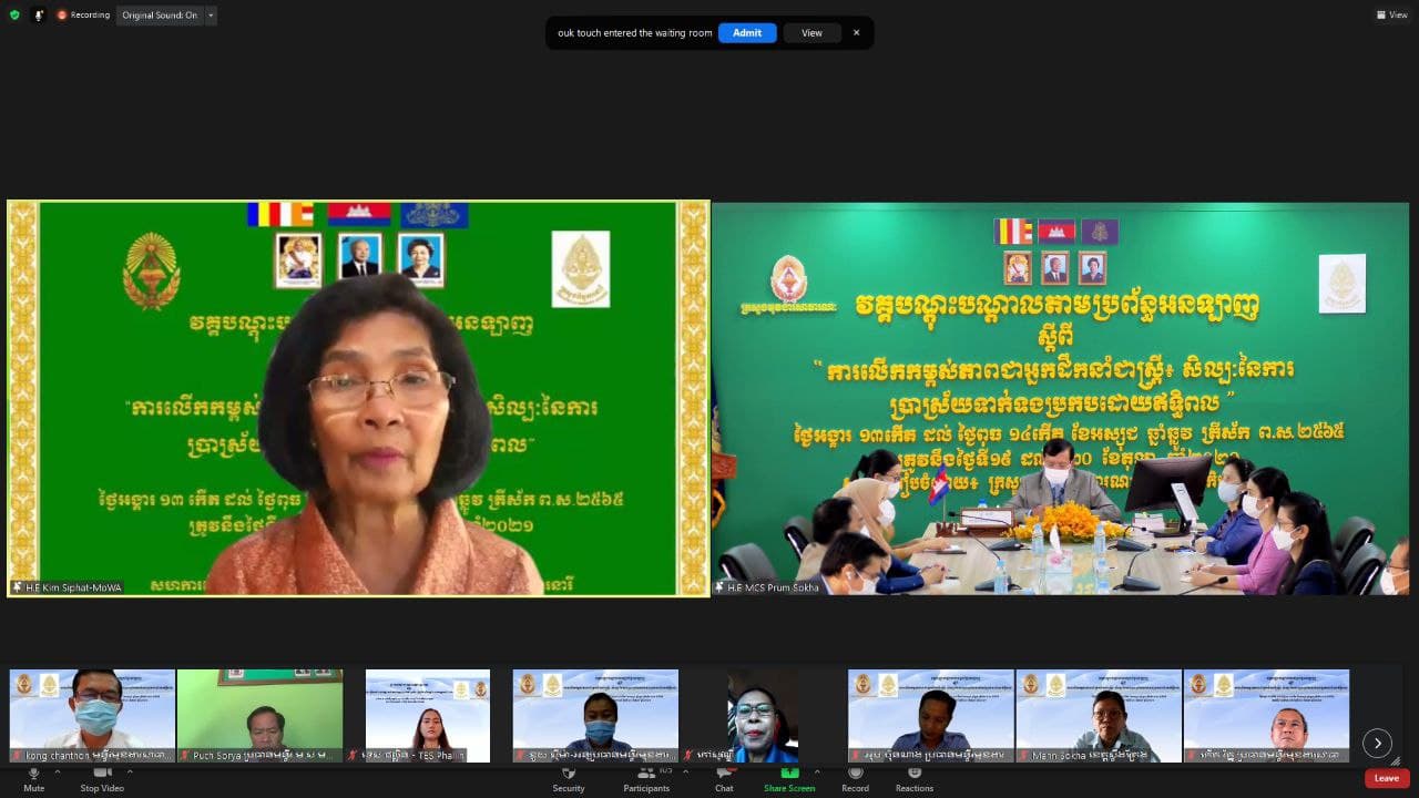 (រាជធានីភ្នំពេញ)៖ នាព្រឹកថ្ងៃទី១៩ ខែតុលា ឆ្នាំ២០២១ ក្រសួងមុខងារសាធារណៈ និងក្រសួងកិច្ចការនារី បានរៀបចំពិធីបើកវគ្គបណ្តុះបណ្តាល តាមប្រព័ន្ធអនឡាញរួមគ្នាមួយស្តីពី “ការលើកកម្ពស់ភាពជាអ្នកដឹកនាំជាស្ត្រី៖ សិល្បៈនៃការប្រាស្រ័យទាក់ទង ប្រកបដោយឥទ្ធិពល» ដែលធ្វើឡើងរយៈពេលពីរថ្ងៃចាប់ពីថ្ងៃទី១៩ ដល់ ថ្ងៃទី២០ ខែតុលា ឆ្នាំ២០២១។