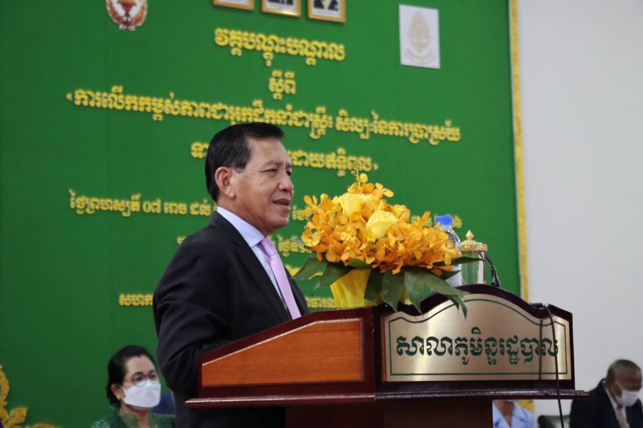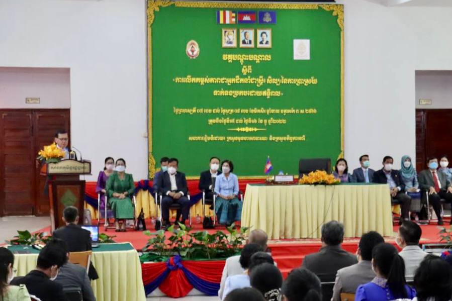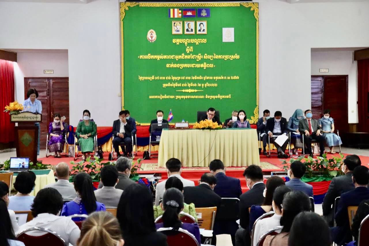 (ភ្នំពេញ)៖ នាព្រឹកថ្ងៃទី១៥ ខែធ្នូ ឆ្នាំ២០២២ ឯកឧត្តម ព្រុំ សុខា រដ្ឋមន្រ្តីក្រសួងមុខងារសាធារណៈ អញ្ជើញចូលរួមពិធីបើកវគ្គបណ្តុះបណ្តាលស្តីពី “ការលើកកម្ពស់ភាពជាអ្នកដឹកនាំជាស្ត្រី៖ សិល្បៈនៃការប្រាស្រ័យទាក់ទងប្រកបដោយឥទ្ធិពល” ដែលត្រូវបានសហការរៀបចំដោយក្រសួងមុខងារសាធារណៈ និងក្រសួងកិច្ចការនារី។