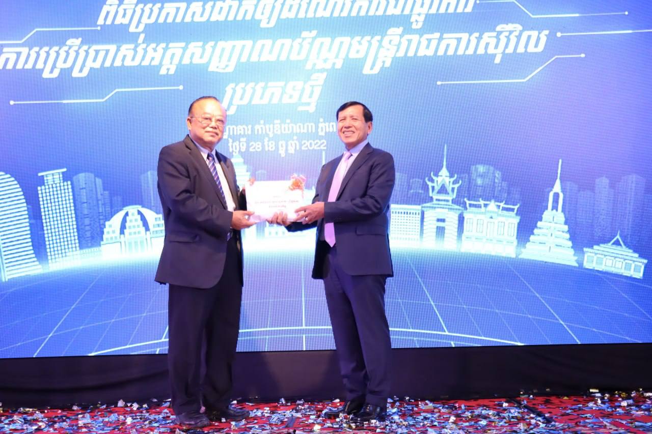 (ភ្នំពេញ)៖ នារសៀលថ្ងៃពុធ ទី២៨ ខែធ្នូ ឆ្នាំ២០២២ ឯកឧត្តម ព្រុំ សុខា រដ្ឋមន្ត្រីក្រសួងមុខងារសាធារណៈ បានចូលរួមពិធីប្រកាសដាក់ឱ្យដំណើរការជាផ្លូវការនូវអត្តសញ្ញាណប័ណ្ណមន្ត្រីរាជការស៊ីវិលប្រភេទថ្មី ដែលនឹងត្រូវប្រើប្រាស់ជាប័ណ្ណសម្គាល់ខ្លួនផង ជាប័ណ្ណអេធីអឹមសម្រាប់ដកប្រាក់បៀវត្សពីធនាគារផង ហើយនឹងអាចប្រើប្រាស់ជាមធ្យោបាយចាំបាច់ផ្សេងទៀត។