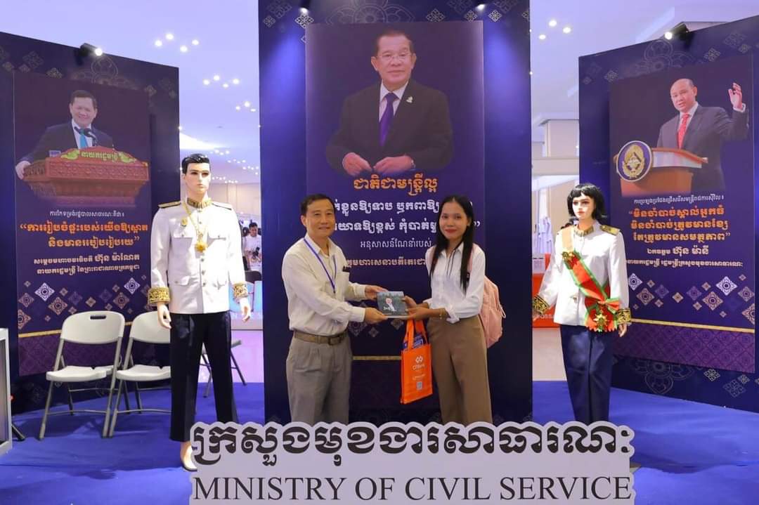 ក្រសួងមុខងារសាធារណៈ សូមថ្លែងអំណរគុណដល់ទីភ្នាក់ងារជាតិមុខរបរ និងការងារនៃក្រសួងការងារ និងបណ្តុះបណ្តាលវិជ្ជាជីវៈ ដែលបានរៀបចំពិព័រណ៍ការងារ និងផលិតភាពជាតិ ឆ្នាំ២០២៤ ក្រោមប្រធានបទ «ការបង្កើនផលិតភាព៖ ជំនាញ និងកំណើនប្រកបដោយចីរភាព»។ ក្រសួងមុខងារសាធារណៈ ពិតជាមានកិត្តិយស និងសេចក្តីរីករាយដែលបានរួមចំណែកក្នុងការផ្តល់នូវព័ត៌មាន ស្តីពីវិស័យមុខងារសាធារណៈ ជាពិសេសការផ្តល់ជូននូវព័ត៌មាន នៃការប្រឡងប្រជែងជ្រើសរើសមន្ត្រីរាជការស៊ីវិល ដែលកំពុងបើកទទួលពាក្យក្នុងពេលបច្ចុប្បន្ននេះ។