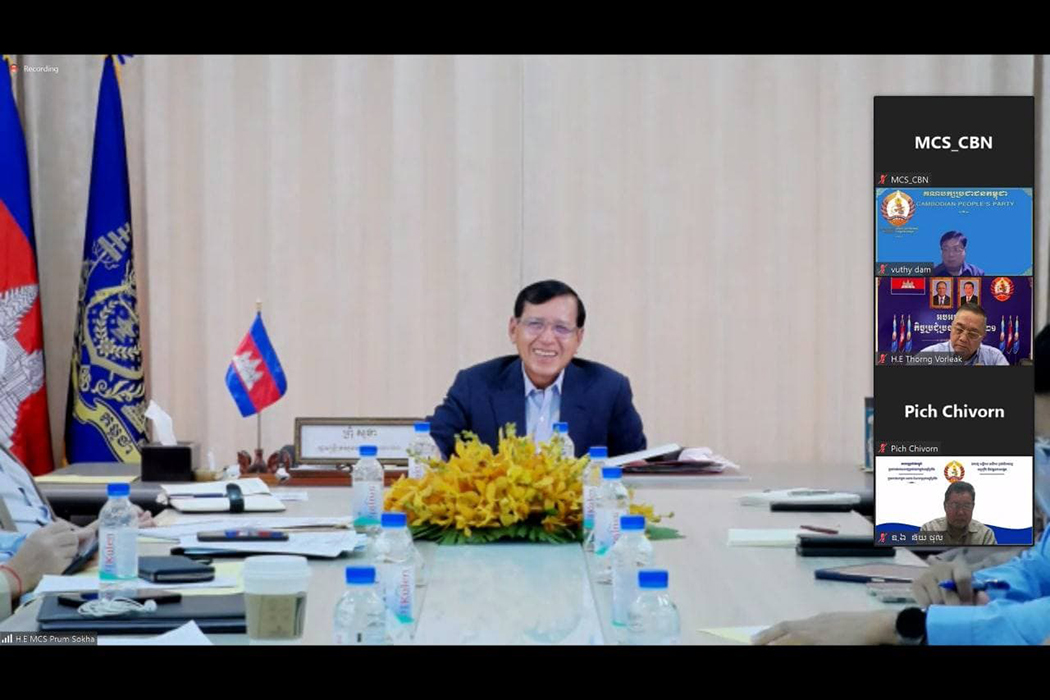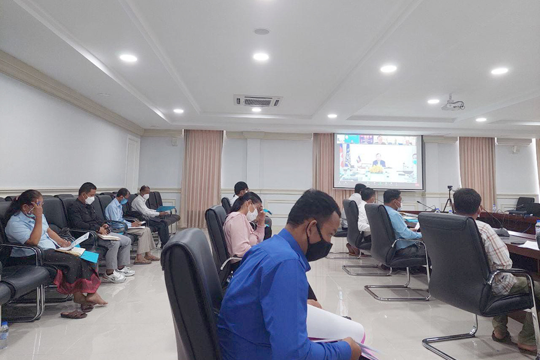 (ភ្នំពេញ-ព្រៃវែង)៖ នៅរសៀលថ្ងៃទី៣០ ខែកញ្ញា ឆ្នាំ២០២១ ឯកឧត្ដម ព្រុំ សុខា រដ្ឋមន្ត្រីក្រសួងមុខងារសាធារណៈ និងជាប្រធានក្រុមការងារកម្មករ ពលករចំណាកស្រុកខេត្តព្រៃវែង បានដឹកនាំកិច្ចប្រជុំតាមប្រព័ន្ធអនឡាញ (Zoom) ដើម្បីត្រួតពិនិត្យសកម្មភាពការងារកន្លងទៅ និងលើកទិសដៅបន្ត ដែលមានការចូលរួមពីសំណាក់ឯកឧត្ដម លោកជំទាវ អស់លោក លោកស្រី ជាអនុប្រធាន ជាសមាជិក និងអ្នកពាក់ព័ន្ធ សរុបមានចំនួនប្រមាណ ៧០នាក់។