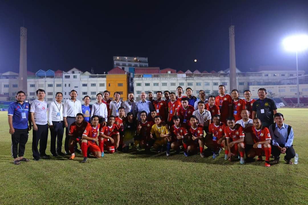 កាលពីល្ងាចថ្ងៃទី២៥ ខែមីនា ឆ្នាំ២០២៤ ឯកឧត្តម ហ៊ុន ម៉ានី ឧបនាយករដ្ឋមន្ត្រី រដ្ឋមន្ត្រីក្រសួងមុខងារសាធារណៈ បានអញ្ជើញចូលរួមទស្សនាការប្រកួតបាល់ទាត់ពាន់រង្វាន់អន្តរក្រសួង-ស្ថាប័ន រវាងក្រុមបាល់ទាត់សហភាពសហព័ន្ធយុវជនកម្ពុជាវិស័យមុខងារសាធារណៈ និងក្រុមបាល់ទាត់សហភាពសហព័ន្ធយុវជនកម្ពុជានៃធនាគារជាតិនៃកម្ពុជា នៅកីឡាដ្ឋានកងយោធពលខេមរភូមិន្ទ ដើម្បីលេីកទឹកចិត្តដោយផ្ទាល់ជូនដល់ក្រុមកីឡាករទាំងពីរក្រុម។