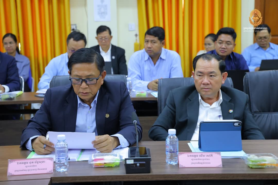 នារសៀលថ្ងៃទី០៧ ខែកុម្ភៈ ឆ្នាំ២០២៥ ឯកឧត្តម ឌិត ទីណា រដ្ឋមន្រ្តីក្រសួងកសិកម្ម រុក្ខាប្រមាញ់ និងនេសាទ បានដឹកនាំប្រតិភូ ជួបប្រជុំជាមួយថ្នាក់ដឹកនាំ និងមន្ត្រីជំនាញនៃក្រសួងមុខងារសាធារណៈ រួមជាមួយតំណាងក្រសួង ស្ថាប័ន ជាច្រើនទៀតដែលមានមុខងារពាក់ព័ន្ធផ្ទាល់ ឬប្រទាក់ក្រឡាគ្នាជាមួយក្រសួងកសិកម្ម រុក្ខាប្រមាញ់និងនេសាទ។ ឯកឧត្ដម យក់ ប៊ុនណា រដ្ឋលេខាធិការប្រចាំការ តំណាងដ៏ខ្ពង់ខ្ពស់ ឯកឧត្តមឧបនាយករដ្ឋមន្ត្រី រដ្ឋមន្ត្រីក្រសួងមុខងារសាធារណៈ បានចាប់ផ្តើមកិច្ចប្រជុំដើម្បីពិភាក្សាលើសេចក្តីព្រាងអនុក្រឹត្យស្តីពីការរៀបចំ និងការប្រព្រឹត្តទៅរបស់ក្រសួងកសិកម្ម រុក្ខាប្រមាញ់ និងនេសាទ ដោយចាប់ផ្តើមចេញពីបទបង្ហាញរបស់ ឯកឧត្តមរដ្ឋមន្ត្រី ឌិត ទីណា លើសាវតា មុខងារ និងសេចក្តីព្រាងនៃអនុក្រឹត្យថ្មី។