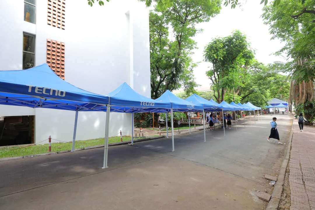 ក្រៅពីមានការផ្តល់ជូនភេសជ្ជៈ ទឹកពិសា និងនំ នៅមណ្ឌលប្រឡងសាកលវិទ្យាល័យភូមិន្ទភ្នំពេញ គណៈកម្មការការរៀបចំការប្រឡងប្រជែង បានរៀបចំទីតាំងជូនក្រុមគ្រួសារ អាណាព្យាបាល ដើម្បីសម្រាករង់ចាំលើកទឹកចិត្តក្រុមគ្រួសារ កូន ក្មួយរបស់ខ្លួនផងដែរ។ សូមជូនពរបេក្ខជន ទទួលបានលទ្ធផលជាទីគាប់ចិត្តគ្រប់ៗគ្នា