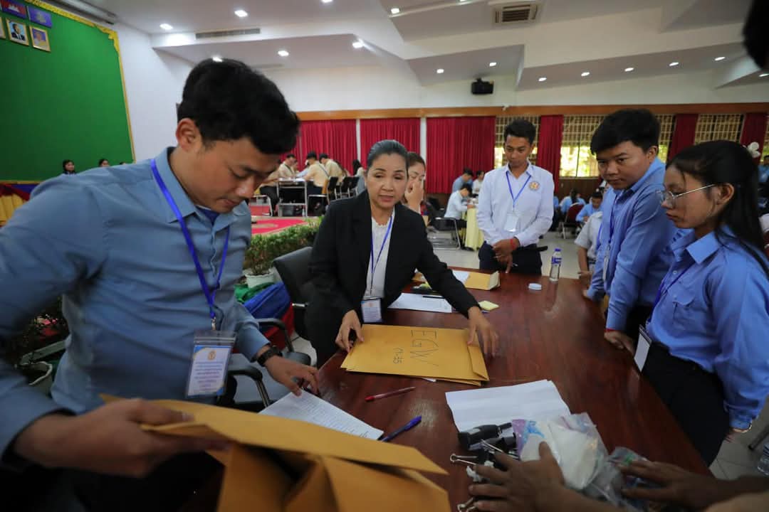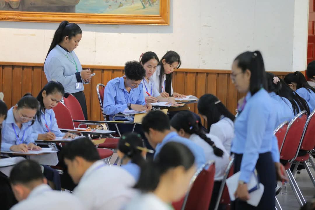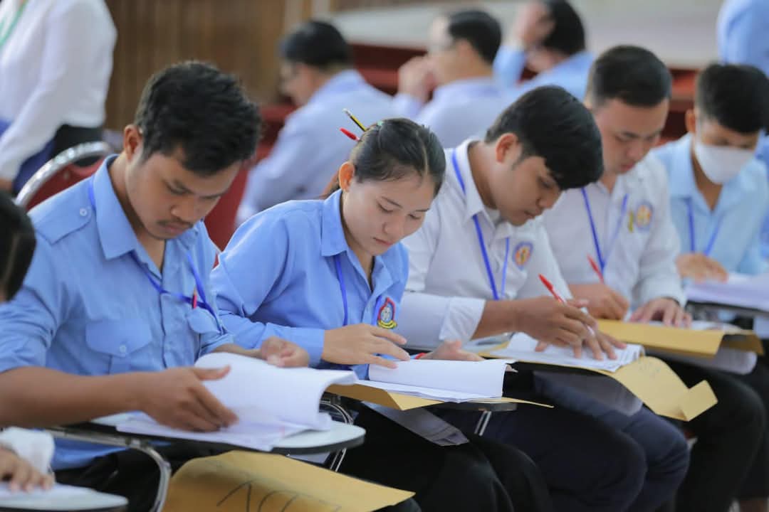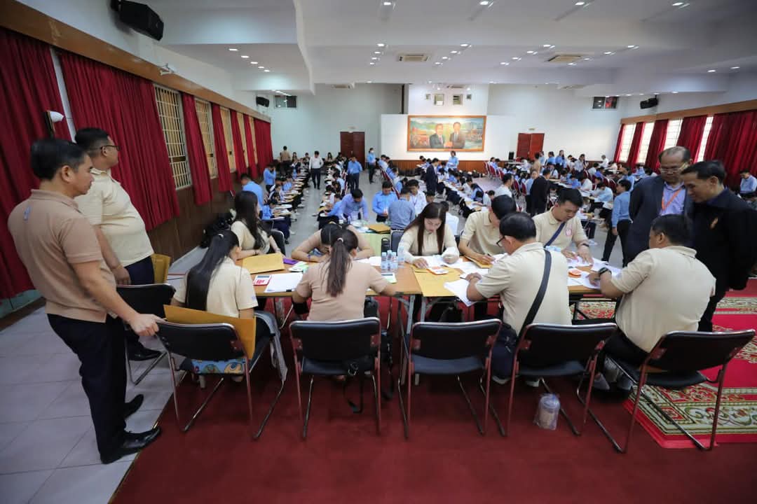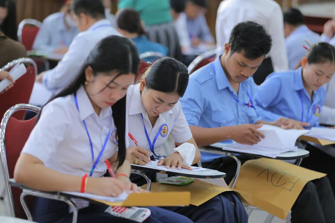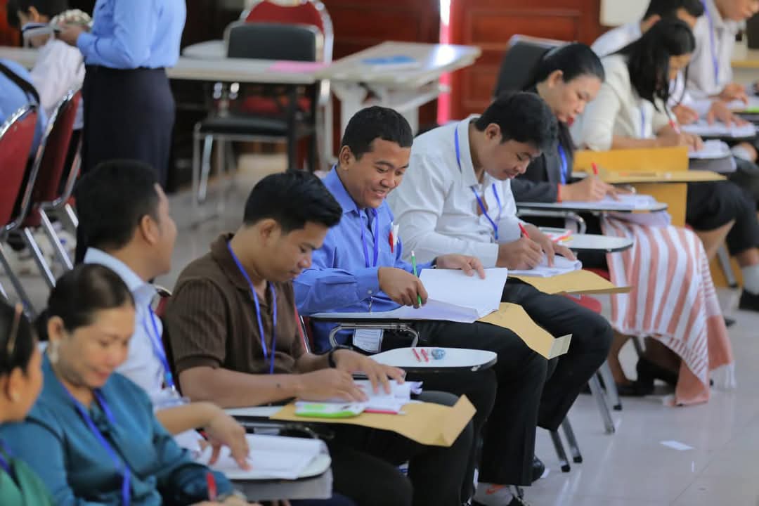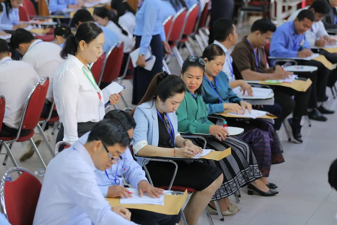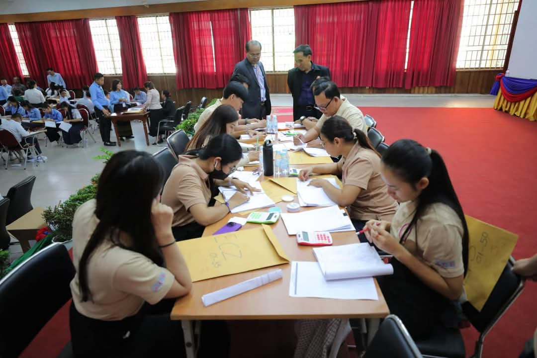 ខណៈនេះ លោកគ្រូ អ្នកគ្រូ ប្រមាណ ១៤០រូប កំពុងកែសន្លឹកកិច្ចការរបស់បេក្ខជន ប្រឡងប្រជែងជ្រើសរើសមន្រ្តីនៃអគ្គនាយកដ្ឋានពន្ធដារ ក្នុងក្របខណ្ឌក្រសួងសេដ្ឋកិច្ច និងហិរញ្ញវត្ថុ (វិញ្ញាសាសរសេរលើកទី១) នៅមណ្ឌលកំណែសាលាភូមិន្ទរដ្ឋបាល