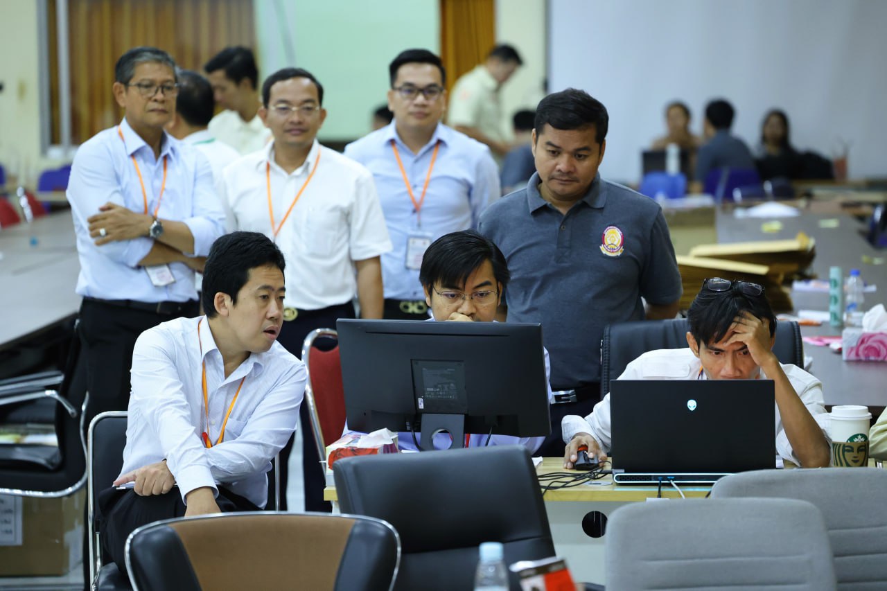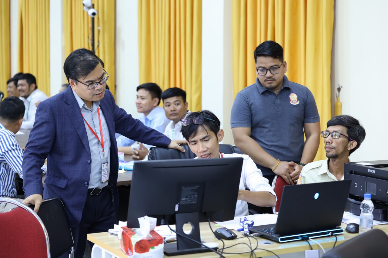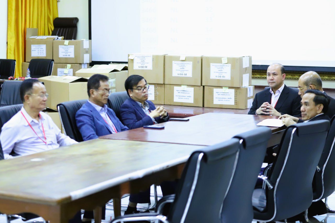 ខណៈនេះ ឯកឧត្តមឧបនាយករដ្ឋមន្រ្តី ហ៊ុន ម៉ានី រដ្ឋមន្ត្រីក្រសួងមុខងារសាធារណៈ និងជាប្រធានគណៈកម្មការរៀបចំការប្រឡងប្រជែង កំពុងមានវត្តមាននៅមណ្ឌលកំណែសាលាភូមិន្ទរដ្ឋបាល ដើម្បីពិនិត្យផ្ទៀងផ្ទាត់ការបូកសរុបពិន្ទុ សម្រាប់ការផ្សព្វផ្សាយលទ្ធផលការប្រឡងប្រជែងជ្រើសរើសគ្រូបង្រៀននៅអនុវិទ្យាល័យ ដំណាក់កាលទី១ ដើម្បីសម្រាំងបេក្ខជន។