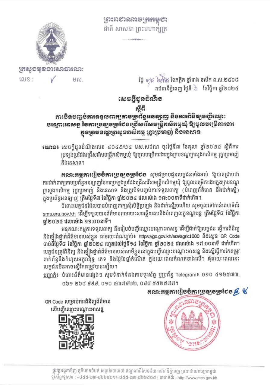 👉 មន្ត្រីកសិកម្មឃុំ ចំនួន១០០០កន្លែង សម្រាប់ក្របខណ្ឌក្រសួងកសិកម្ម រុក្ខាប្រមាញ់ និងនេសាទ https://go.gov.kh/era/agric1000