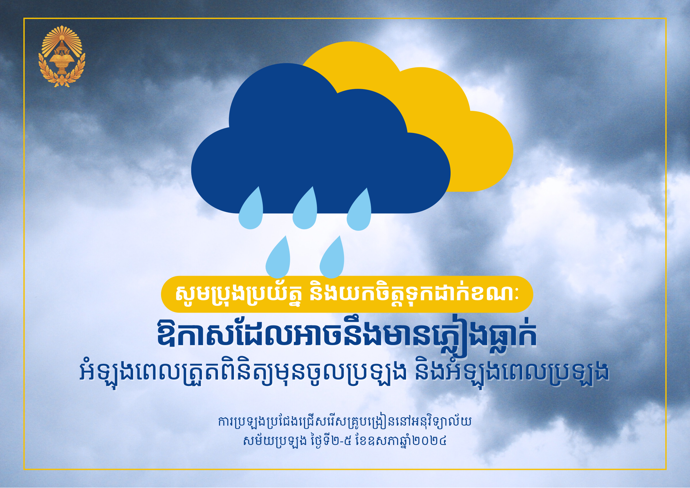 គណៈកម្មការរៀបចំការប្រឡងប្រជែងសូមរំលឹកដល់បេក្ខជន និងអាណាព្យាបាលបេក្ខជនដែលអញ្ជើ្មញមកកាន់មណ្ឌលប្រឡង