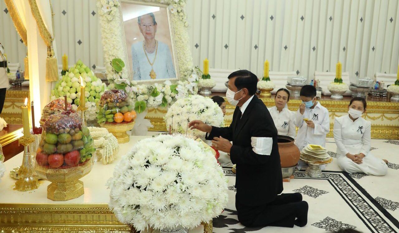 រាជធានីភ្នំពេញ៖ នារសៀលថ្ងៃអង្គារ ១៤កើត ខែពិសាខ ឆ្នាំជូត ទោស័ក ព.ស.២៥៦៣ ត្រូវនឹងថ្ងៃទី០៥ ខែឧសភា ឆ្នាំ២០២០នេះ ឯកឧត្តម ព្រុំ សុខា រដ្ឋមន្ត្រីក្រសួងមុខងារសាធារណៈ បានអញ្ជើញដឹកនាំគណៈប្រតិភូក្រសួងចូលរួមគោរពវិញ្ញាណក្ខន្ធ អ្នកឧកញ៉ា ព្រឹទ្ធមហាឧបាសិកា ធម្មញ្ញាណវិវឌ្ឍនា ប៊ុន ស៊ាងលី ជាមាតាក្មេកសម្តេចអគ្គមហាសេនាបតីតេជោ ហ៊ុន សែន នាយករដ្ឋមន្ត្រី និងជាមាតាបង្កើតសម្តេចកិត្តិព្រឹទ្ធបណ្ឌិត ប៊ុន រ៉ានី ហ៊ុន សែន នៅភូមិគ្រឹះសម្តេចតេជោ ស្ថិតក្នុងសង្កាត់ចតុមុខ ខណ្ឌដូនពេញ រាជធានីភ្នំពេញ។