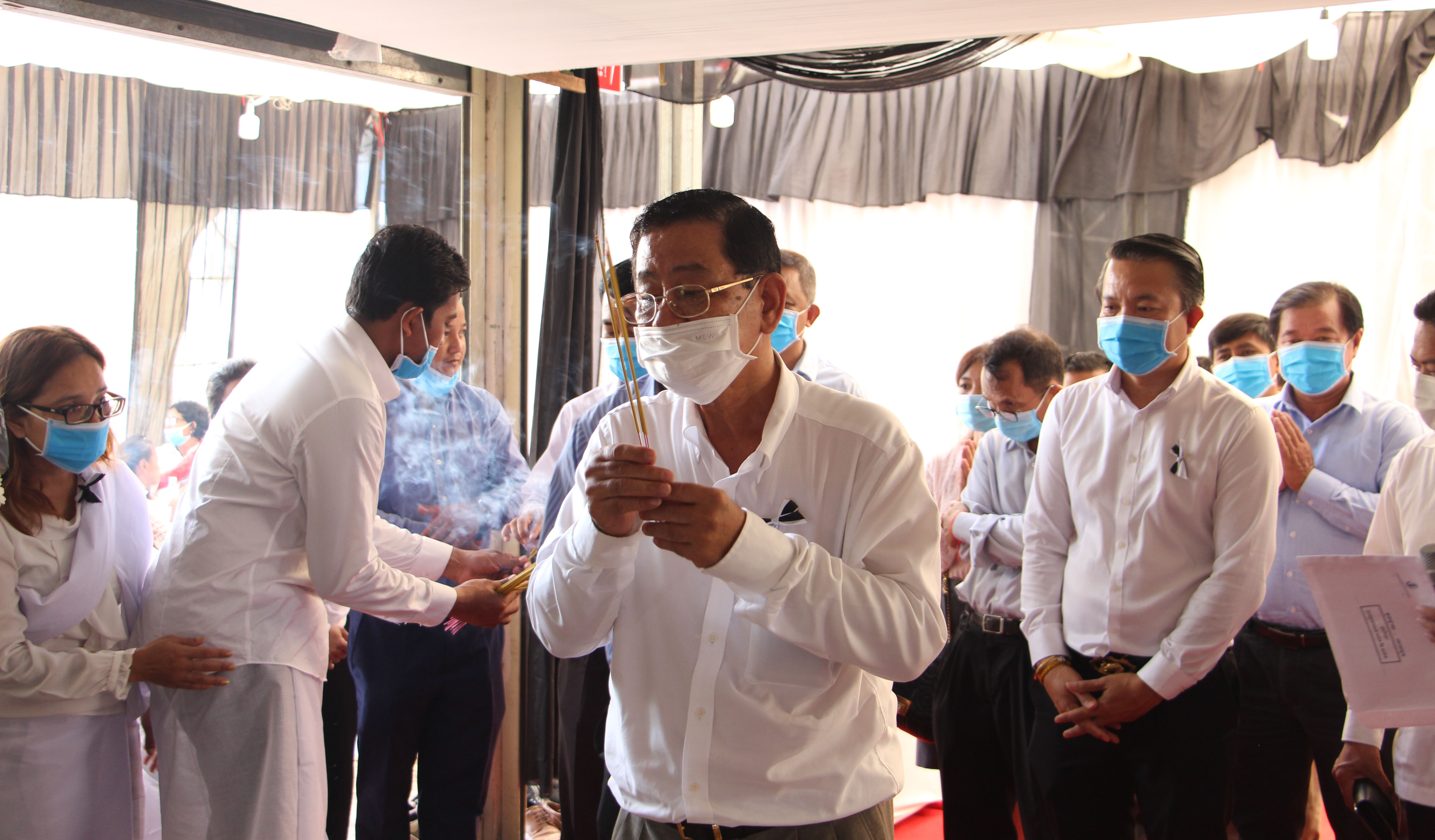 គណៈប្រតិភូក្រសួងមុខងារសាធារណៈដឹកនាំដោយឯកឧត្ដម ហង្ស ឆាំឆាន រដ្ឋលេខាធិការ បានអញ្ជើញចូលរួមគោរពវិញ្ញាណក្ខន្ធលោក រីម សារ៉ាត ជាអនុប្រធានការិយាល័យនៃអគ្គនាយកដ្ឋានគ្រប់គ្រងមុខងារសាធារណៈ ក្រសួងមុខងារសាធារណៈ