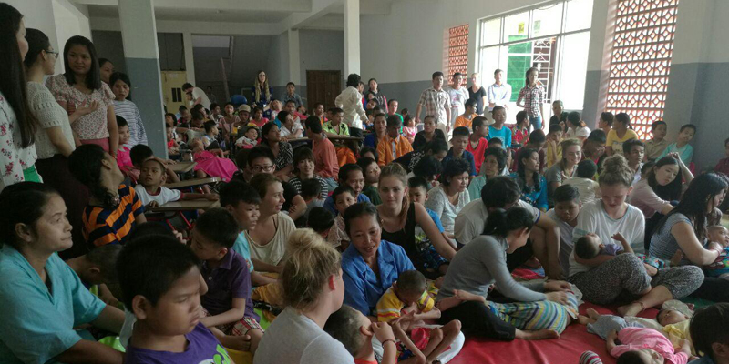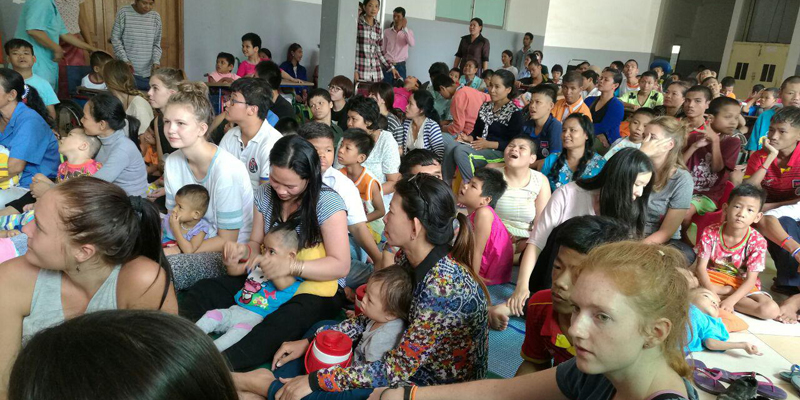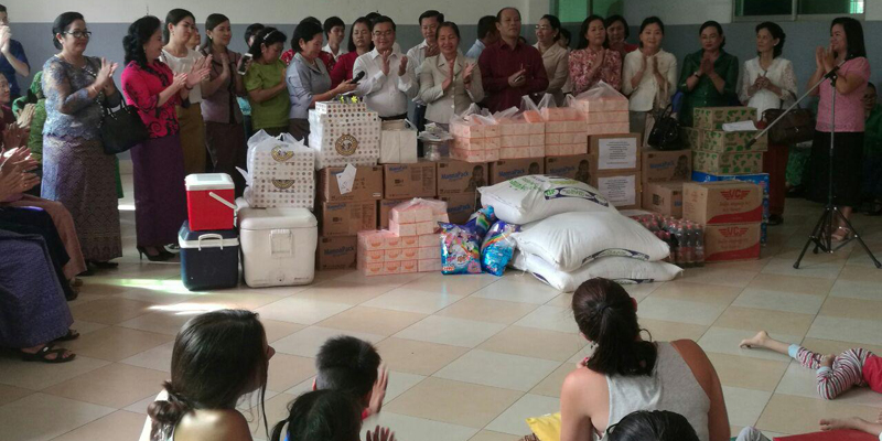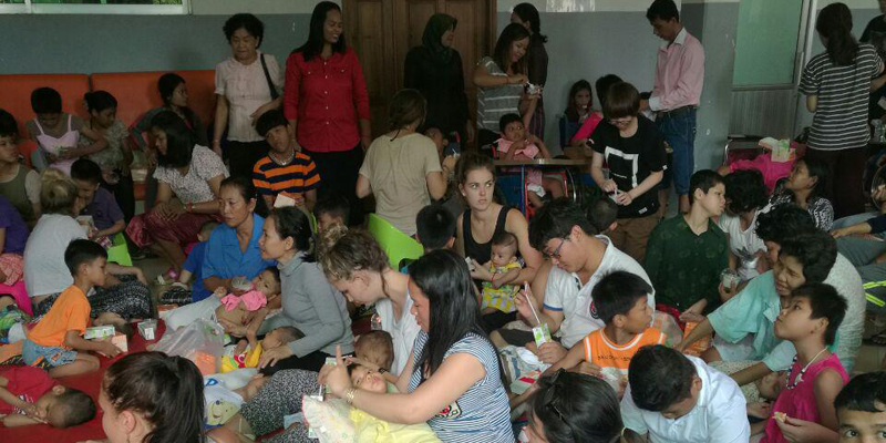 រាជធានីភ្នំពេញ ៖ នៅរសៀលថ្ងៃទី ២៦ ខែឧសភា ឆ្នាំ២០១៦ គណៈប្រតិភូមន្ត្រីរាជការក្រសួងមុខងារសាធារណៈ សាលាភូមិន្ទរដ្ឋបាល និង លោកជំទាវរដ្ឋលេខាធិការ អនុរដ្ឋលេខាធិការគ្រប់ក្រសួង-ស្ថាប័ន ក្នុងវគ្គបណ្តុះបណ្តាលថ្នាក់ដឹកនាំជាស្រ្តីនៃសាលាភូមិន្ទរដ្ឋបាល ដឹកនាំដោយ ឯកឧត្តម យក់ ប៊ុនណា រដ្ឋលេខាធិការ ក្រសួងមុខងារសាធារណៈ និងជានាយកសាលាភូមិន្ទរដ្ឋបាល បាននាំយក នំបឺហ្គឺ នំដូណាត់ បង្អែម ទឹកដោះគោស្រស់ ទឹកសុទ្ធ អង្ករ ទឹកស៊ីអីវ ទឹកត្រី ម្សៅសាប៊ូនិងថវិកាមួយចំនួន ជូនដល់កុមារពិការ ក្នុងបុរីទារកនិងកុមារជាតិ នៃក្រសួងសង្គមកិច្ច អតីតយុទ្ធជន និងយុវនីតិសម្បទា។
