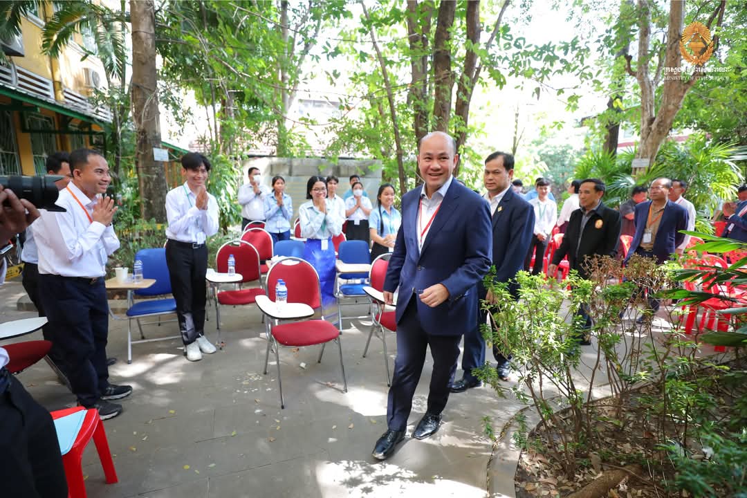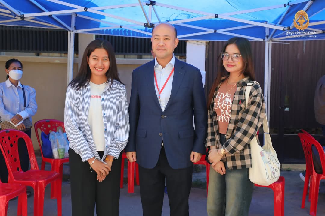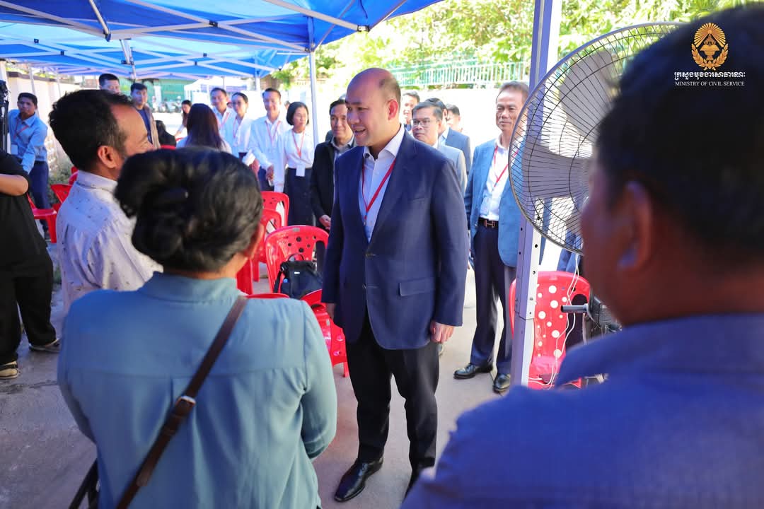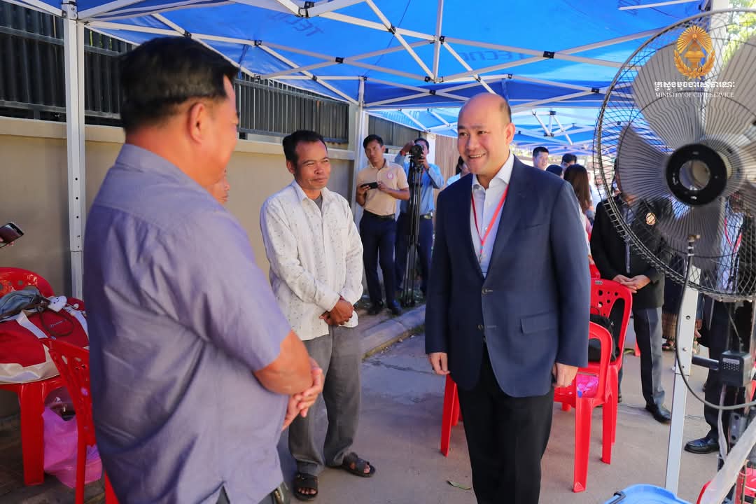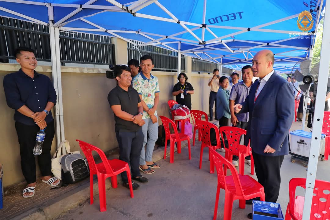 ឯកឧត្តមឧបនាយករដ្ឋមន្ត្រី ហ៊ុន ម៉ានី ប្រធានគណៈកម្មការប្រឡងប្រជែង ឆ្លៀតពេលវេលាមមាញឹក អញ្ជើញសាកសួរសុខទុក្ខអាណាព្យាបាល និងក្រុមគ្រួសារ ព្រមទាំងមិត្តភក្តិដែលកំពុងតែរង់ចាំបេក្ខជន នៅក្រៅមណ្ឌលប្រឡងសាលាភូមិន្ទរដ្ឋបាល