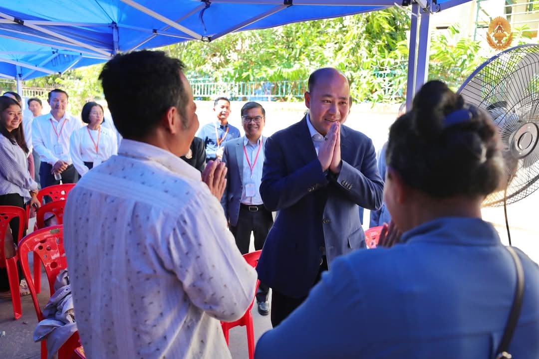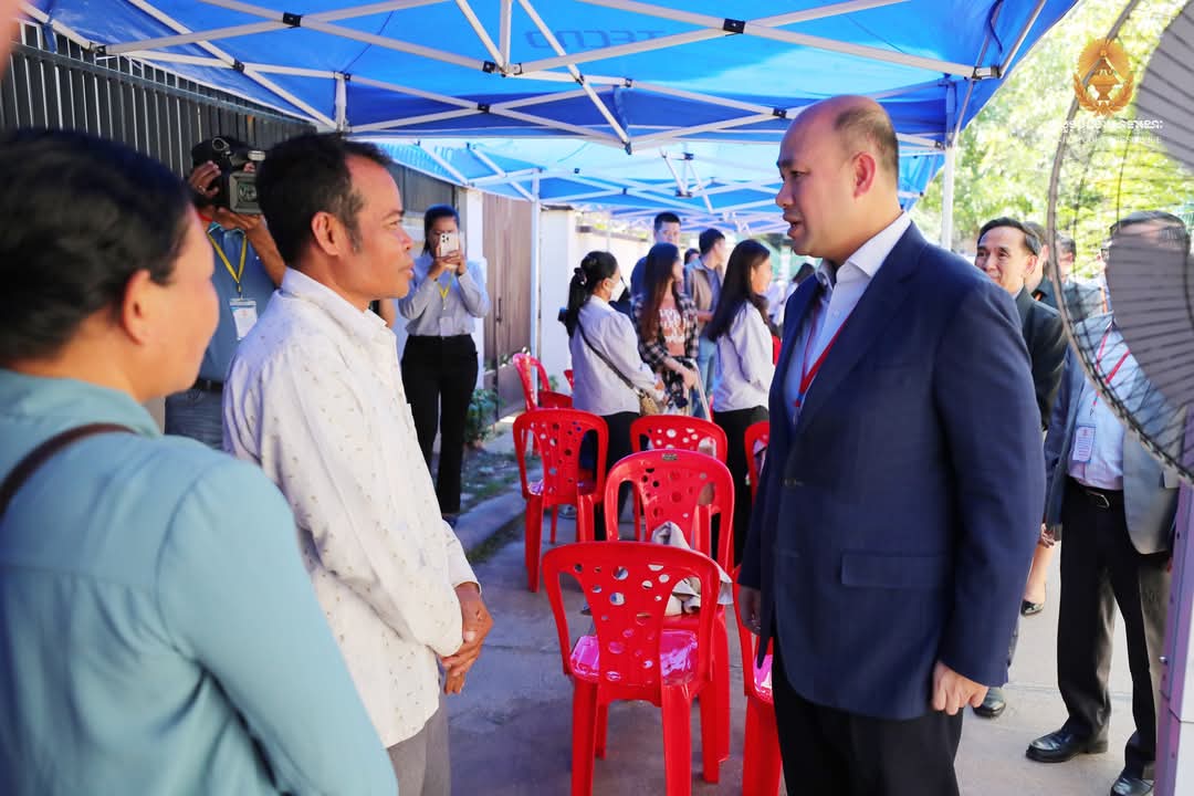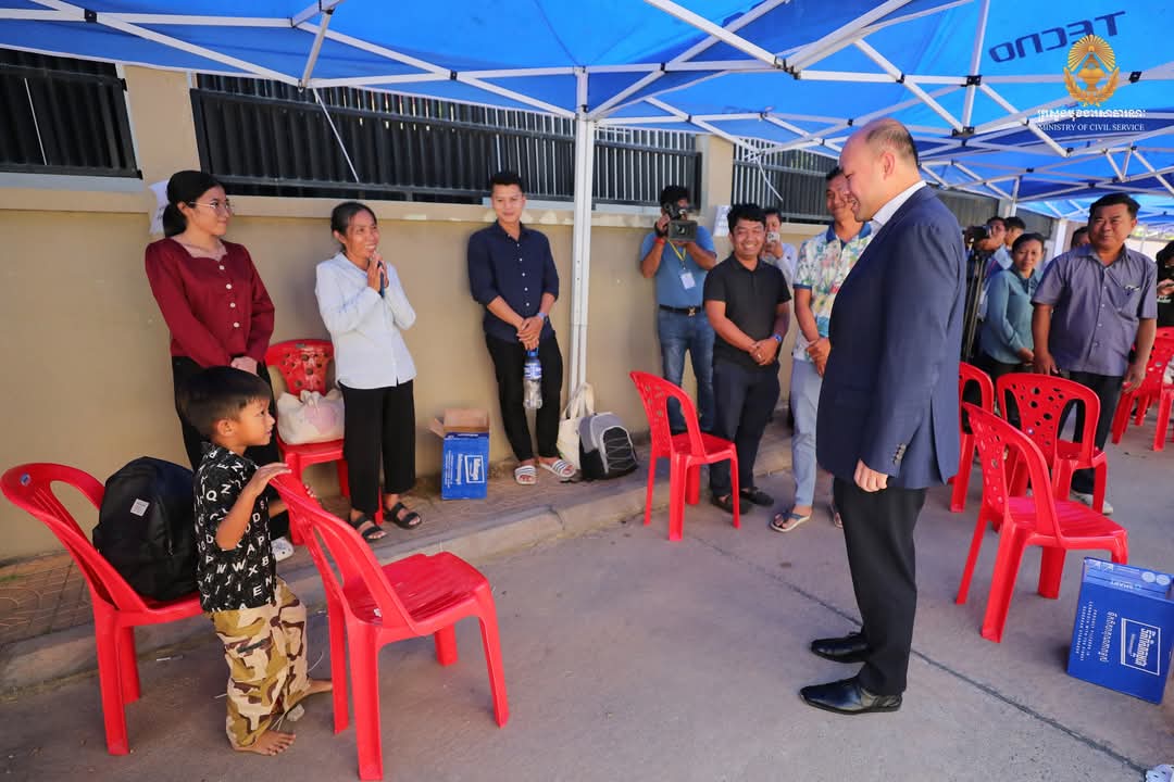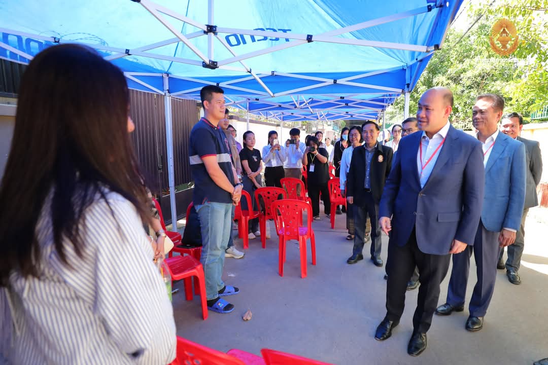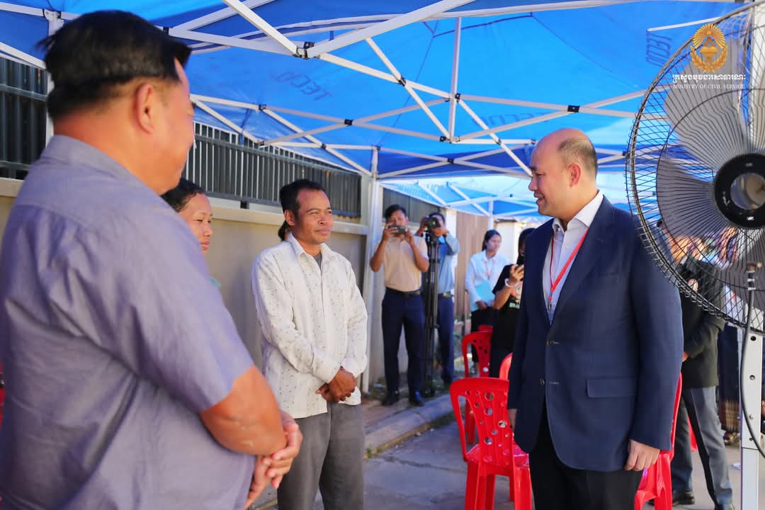 ឯកឧត្តមឧបនាយករដ្ឋមន្ត្រី ហ៊ុន ម៉ានី ប្រធានគណៈកម្មការប្រឡងប្រជែង ឆ្លៀតពេលវេលាមមាញឹក អញ្ជើញសាកសួរសុខទុក្ខអាណាព្យាបាល និងក្រុមគ្រួសារ ព្រមទាំងមិត្តភក្តិដែលកំពុងតែរង់ចាំបេក្ខជន នៅក្រៅមណ្ឌលប្រឡងសាលាភូមិន្ទរដ្ឋបាល