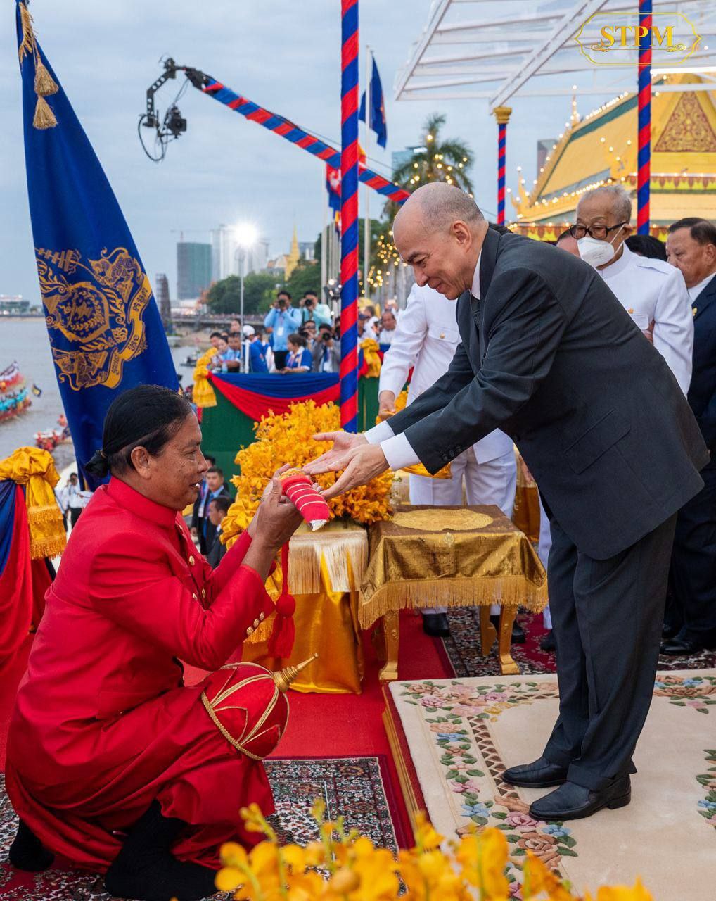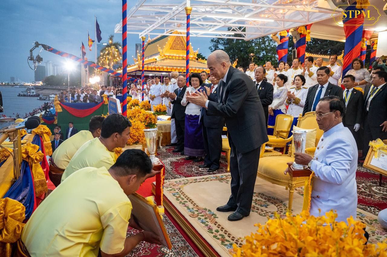 នាល្ងាចថ្ងៃទី ២៨ ខែវិច្ឆិកា ឆ្នាំ២០២៣ក្នុង ដែលជាថ្ងៃចុងក្រោយនៃព្រះរាជពិធីបុណ្យអុំទូក បណ្តែតប្រទីប និងសំពះព្រះខែ អកអំបុក ព្រះករុណា ព្រះបាទសម្តេចព្រះបរមនាថ នរោត្តម សីហមុនី ព្រះមហាក្សត្រនៃ ព្រះរាជាណាចក្រកម្ពុជា ជាទីសក្ការៈដ៏ខ្ពង់ខ្ពស់បំផុត ព្រះអង្គសព្វព្រះរាជហឫទ័យស្តេចយាងជាព្រះរាជាធិបតីដ៏ខ្ពង់ខ្ពស់បំផុត ក្នុងព្រះរាជពិធីបិទការប្រណាំងទូក និងព្រះរាជពិធីកាត់ព្រ័ត្រ នៅព្រះពន្លាជ័យ ដែលមានការរួមដង្ហែដោយសម្ដេចមហាបវរធិបតី ហ៊ុន ម៉ាណែត និងលោកជំទាវ ថ្នាក់ដឹកនាំកំពូល សមាជិក សមាជិកាព្រឹទ្ធសភា រដ្ឋសភា រាជរដ្ឋាភិបាល មន្ត្រីរាជការ នាម៉ឺនសព្វមុខមន្ត្រី រាជវង្សានុវង្ស ឧត្ដមទីប្រឹក្សាព្រះមហាក្សត្រ អង្គទូតនៃបណ្ដាប្រទេសជាមិត្តប្រចាំនៅព្រះរាជាណាចក្រកម្ពុជា ព្រមទាំងប្រជានុរាស្រ្តដែលមានវត្តមានយ៉ាងច្រើនកុះករ ដែលបានចូលរួមពិធីបុណ្យ នៅខាងមុខព្រះបរមរាជវាំង៕