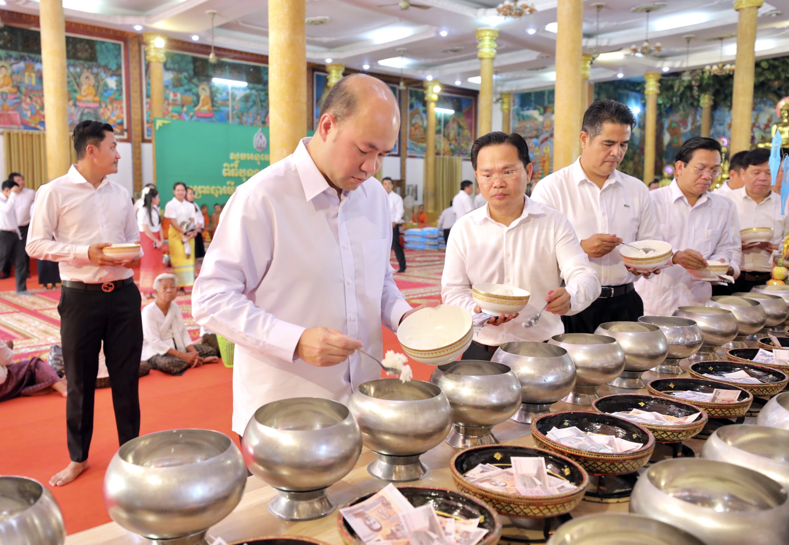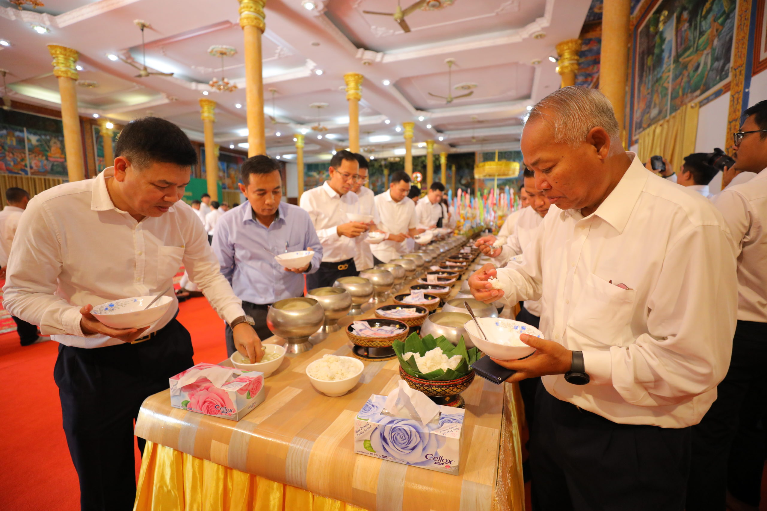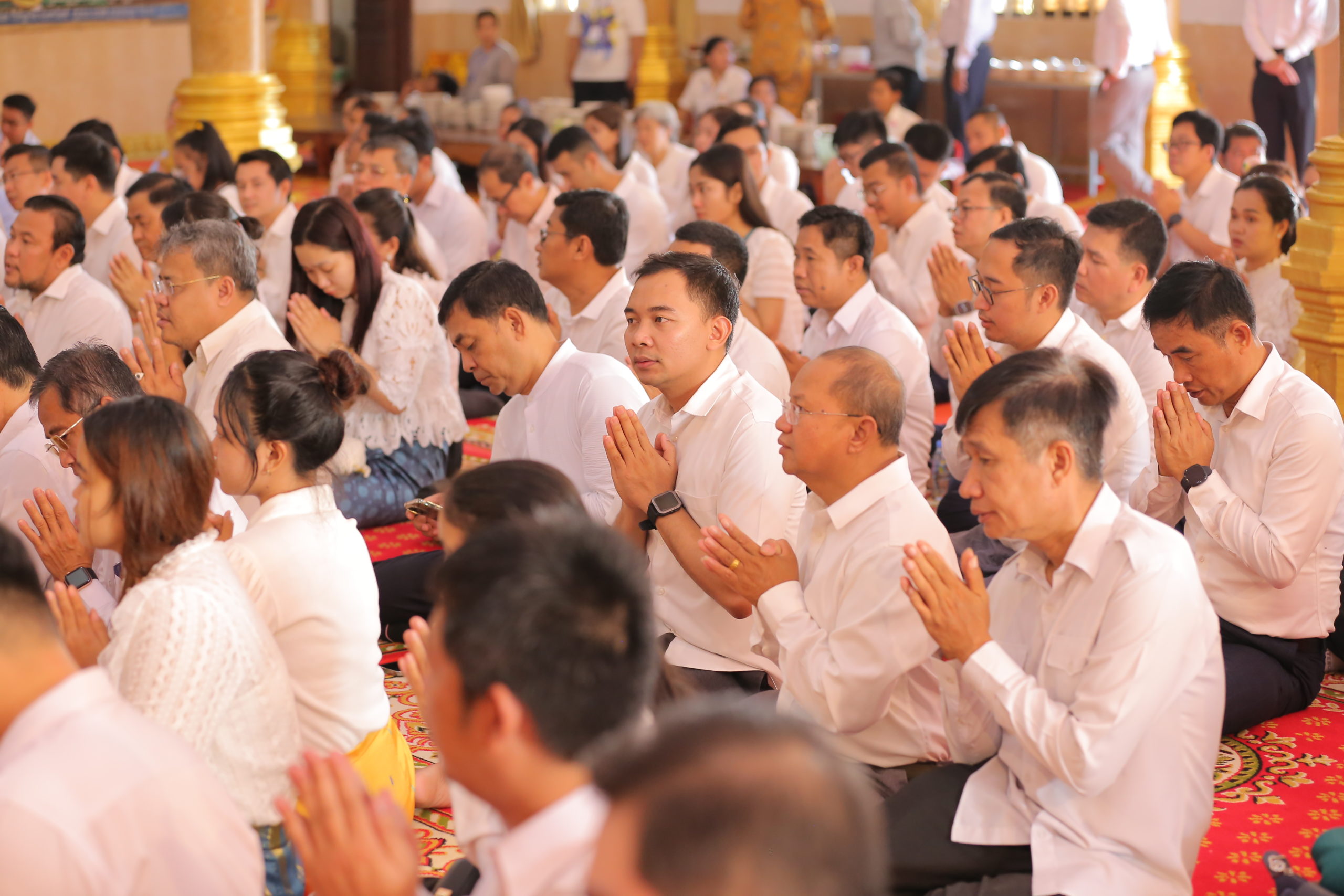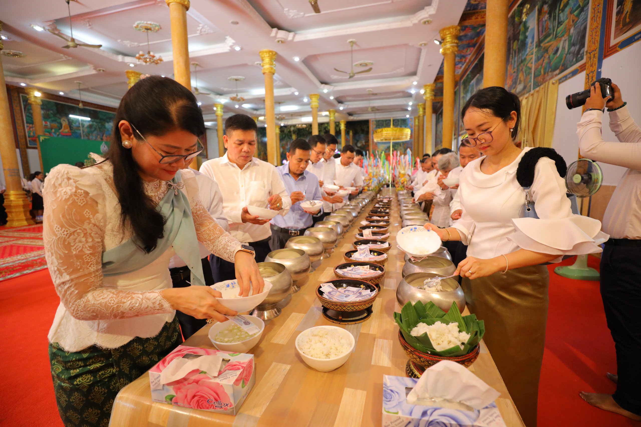 ថ្នាក់ដឹកនាំ និងមន្ត្រីរាជការទាំងអស់ បានបូជាទៀនធូប ផ្កាភ្ញី ចំពោះព្រះរតនត្រ័យ សមាទានសីល ធ្វើកិច្ចនមស្សការ ព្រមទាំងបាននាំយកបច្ច័យ ទេយ្យទាន គ្រឿងឧបភោគបរិភោគ ភេសជ្ជៈ ទៅប្រគេនព្រះសង្ឃ ដើម្បីឧទ្ទិសនូវផល្លាអានិសង្ស ជូនទៅដល់វិញ្ញាណក្ខន្ធបុព្វការីជន មានមាតាបិតា ជីដូនជីតា ញាតិការទាំង៧ សណ្តាន។ ទន្ទឹមនឹងនោះ ឯកឧត្តមរដ្ឋមន្ត្រី ក៏បានជួបសួរសុខទុក្ខ ជូនកុសលផលបុណ្យលោកតា លោកយាយ ជាពុទ្ធបរិស័ទចំណុះជើងវត្ត និងបងប្អូនប្រជាពលរដ្ឋ ដែលបានមកដាក់បិណ្ឌវេនទី១៣ ក្នុងបរិវេណវត្តផងដែរ។