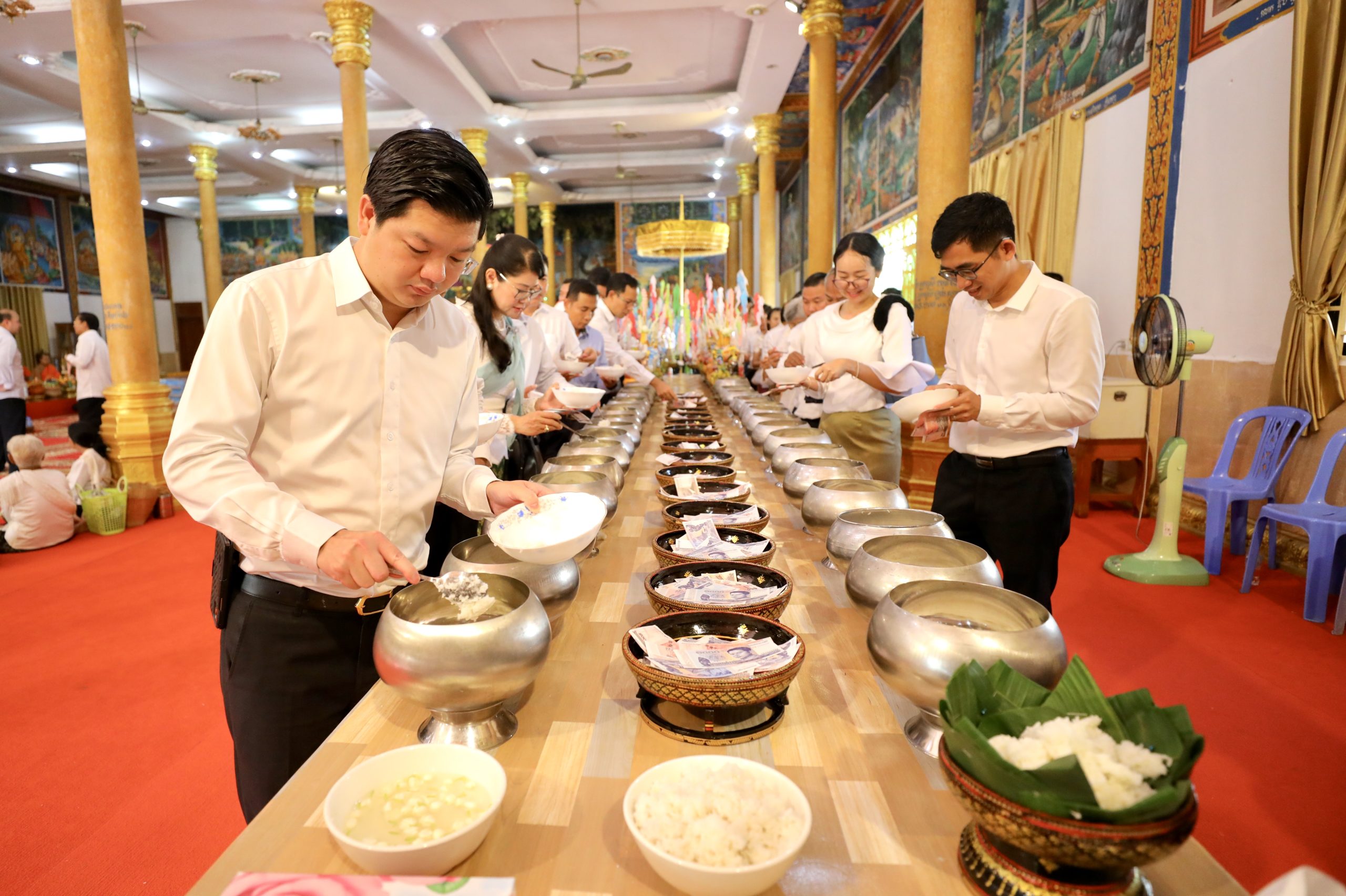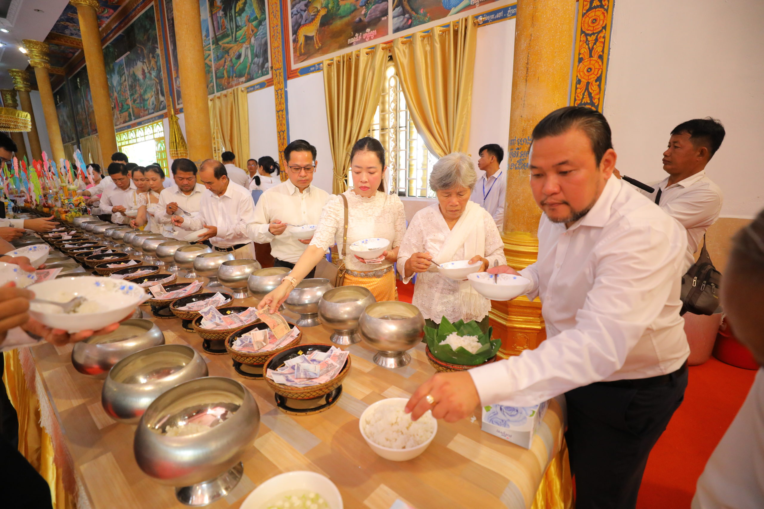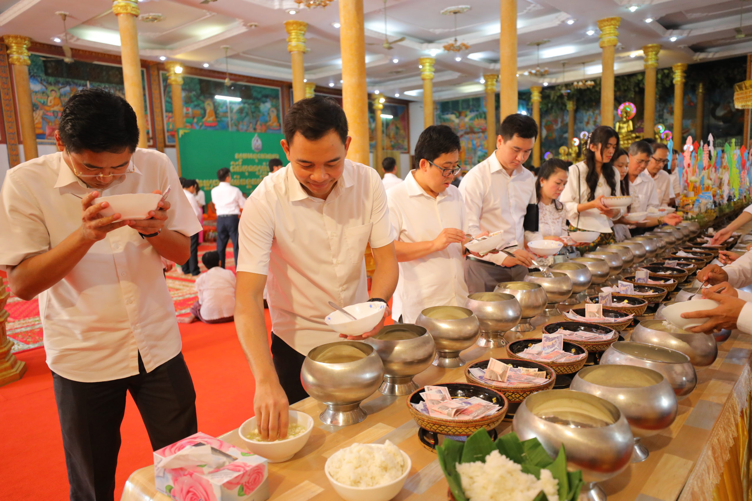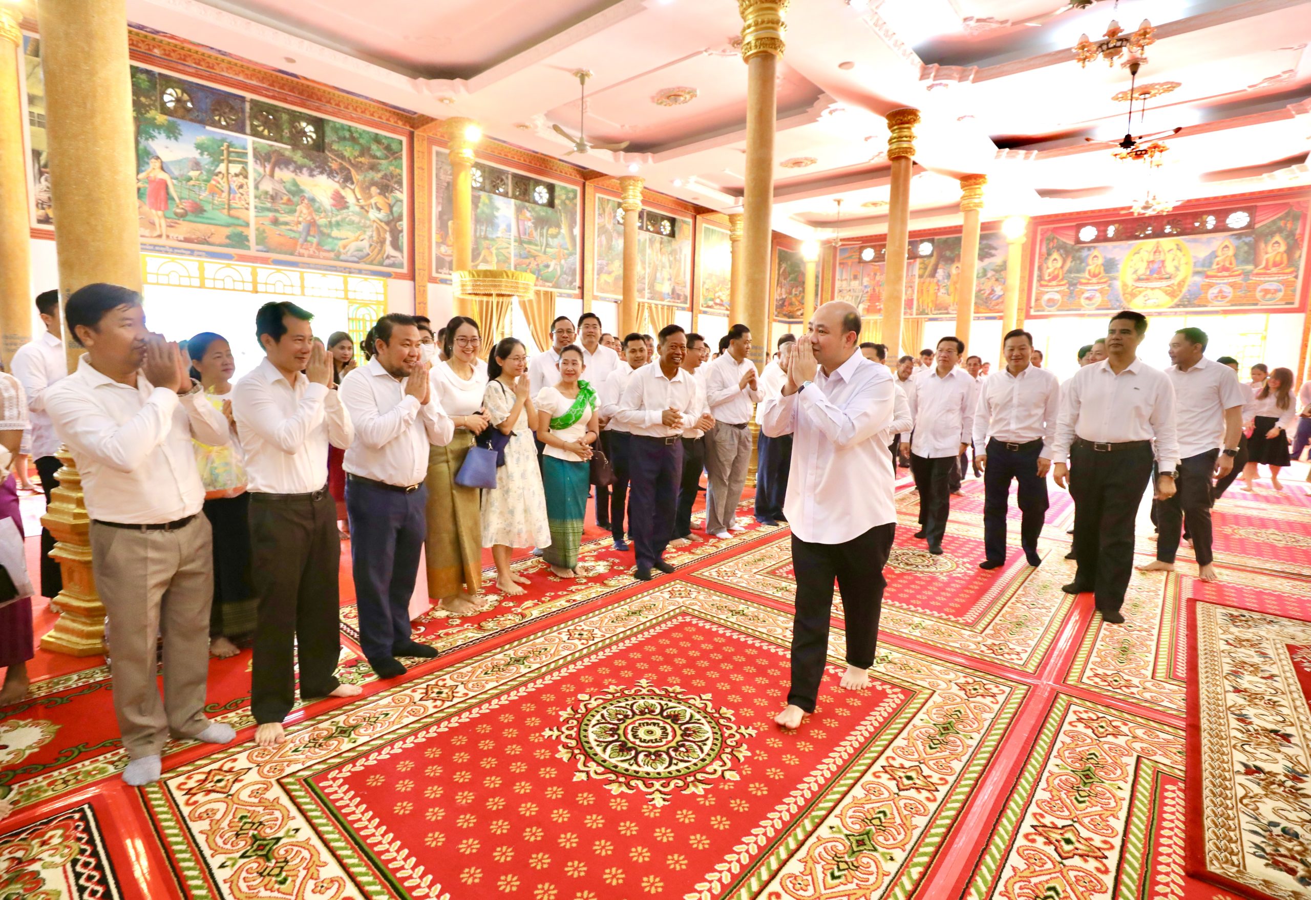 ថ្នាក់ដឹកនាំ និងមន្ត្រីរាជការទាំងអស់ បានបូជាទៀនធូប ផ្កាភ្ញី ចំពោះព្រះរតនត្រ័យ សមាទានសីល ធ្វើកិច្ចនមស្សការ ព្រមទាំងបាននាំយកបច្ច័យ ទេយ្យទាន គ្រឿងឧបភោគបរិភោគ ភេសជ្ជៈ ទៅប្រគេនព្រះសង្ឃ ដើម្បីឧទ្ទិសនូវផល្លាអានិសង្ស ជូនទៅដល់វិញ្ញាណក្ខន្ធបុព្វការីជន មានមាតាបិតា ជីដូនជីតា ញាតិការទាំង៧ សណ្តាន។ ទន្ទឹមនឹងនោះ ឯកឧត្តមរដ្ឋមន្ត្រី ក៏បានជួបសួរសុខទុក្ខ ជូនកុសលផលបុណ្យលោកតា លោកយាយ ជាពុទ្ធបរិស័ទចំណុះជើងវត្ត និងបងប្អូនប្រជាពលរដ្ឋ ដែលបានមកដាក់បិណ្ឌវេនទី១៣ ក្នុងបរិវេណវត្តផងដែរ។