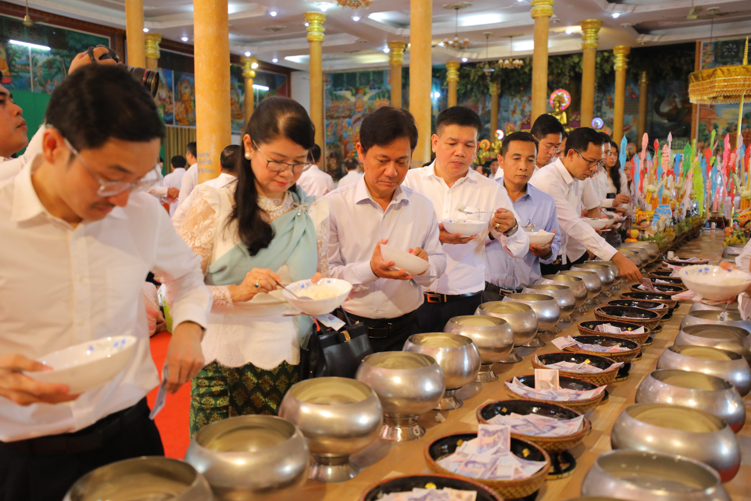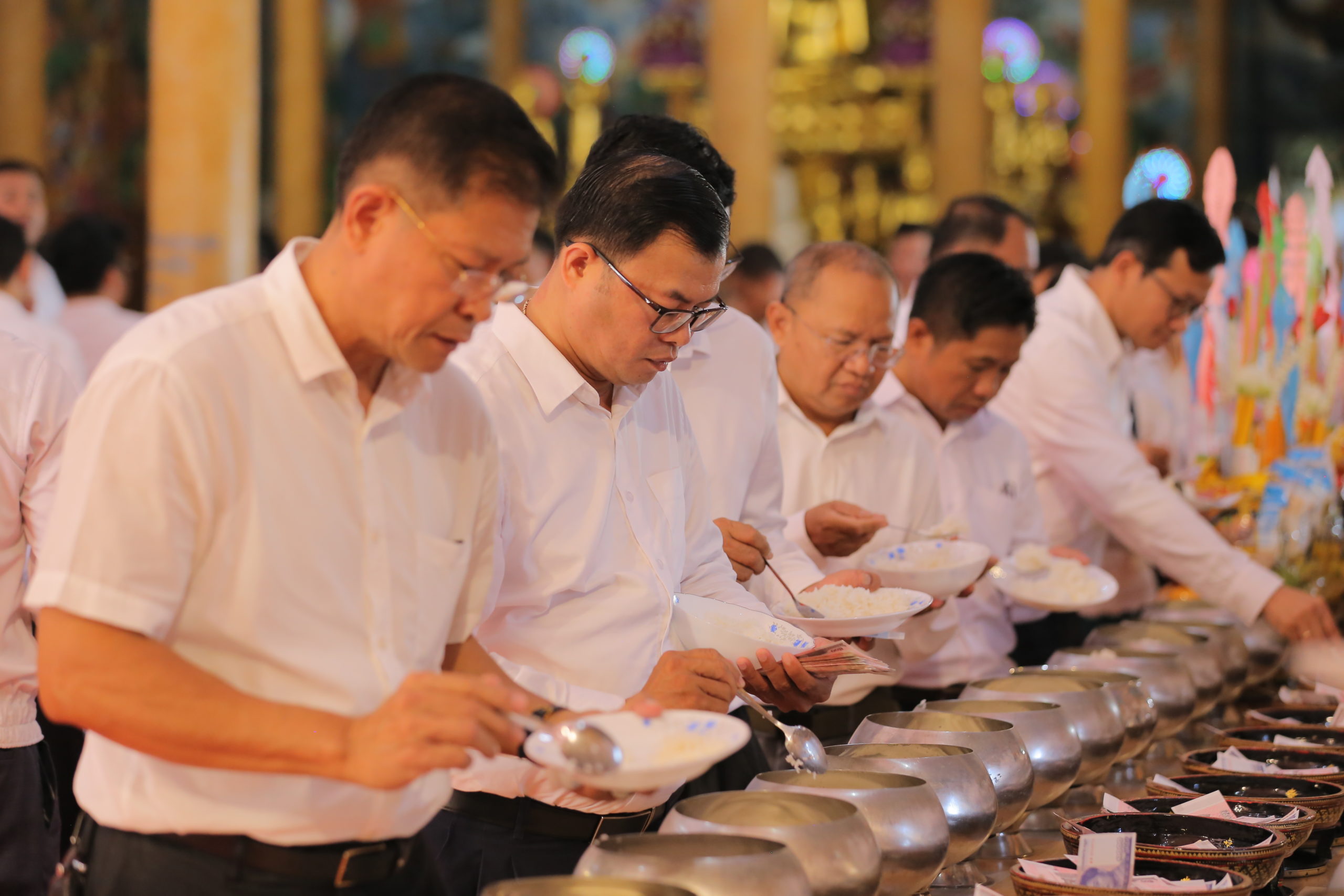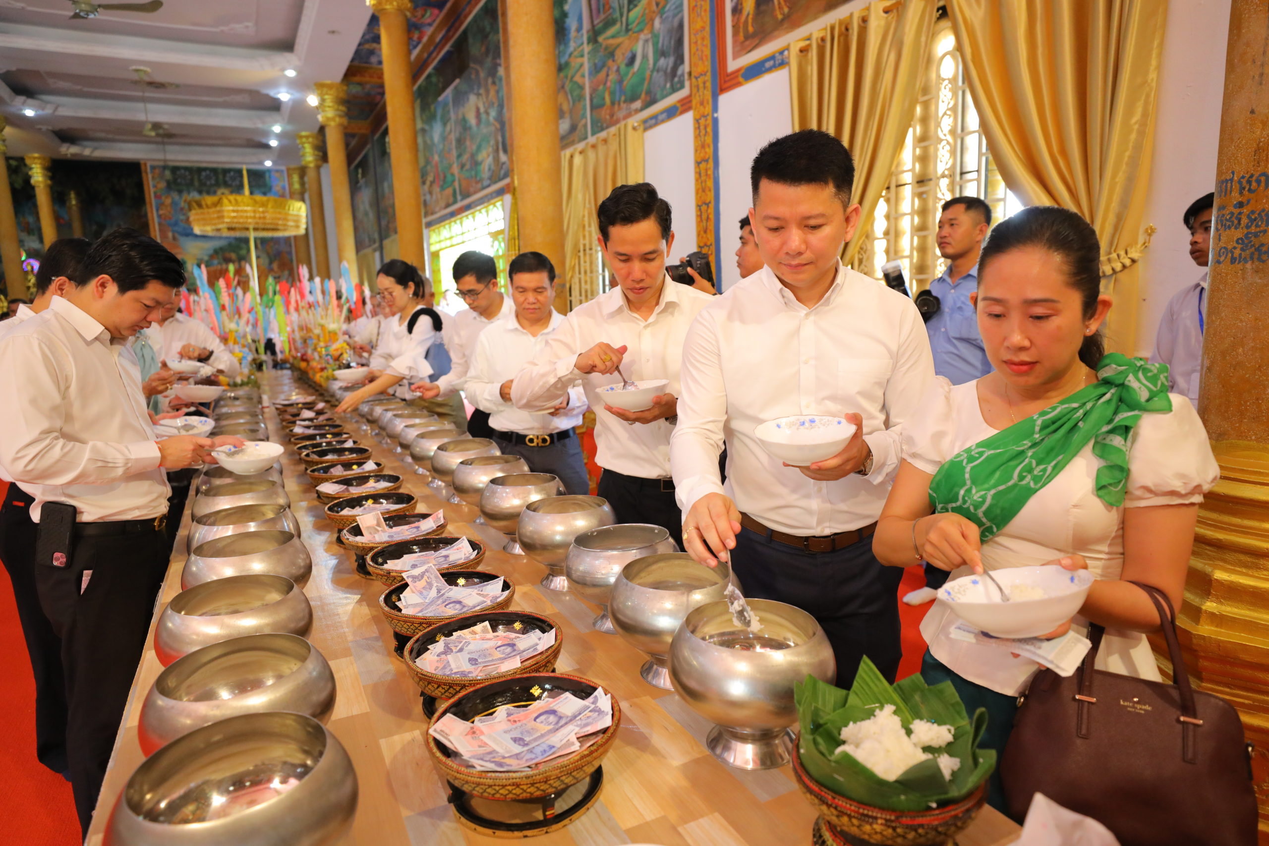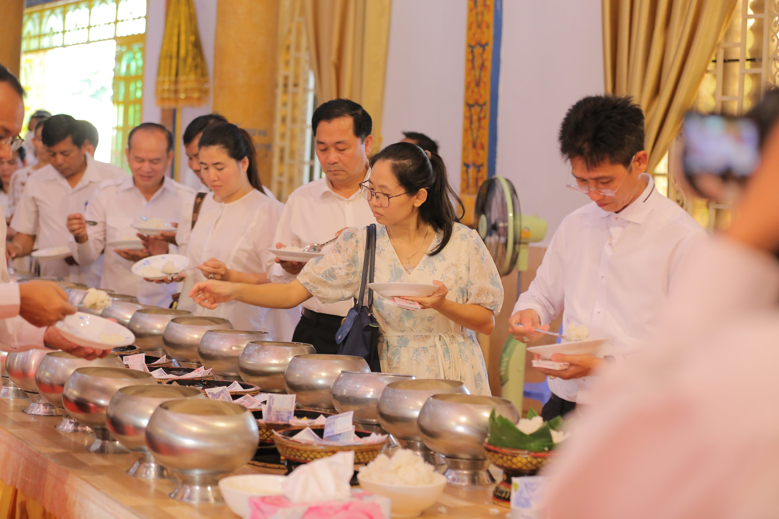 ថ្នាក់ដឹកនាំ និងមន្ត្រីរាជការទាំងអស់ បានបូជាទៀនធូប ផ្កាភ្ញី ចំពោះព្រះរតនត្រ័យ សមាទានសីល ធ្វើកិច្ចនមស្សការ ព្រមទាំងបាននាំយកបច្ច័យ ទេយ្យទាន គ្រឿងឧបភោគបរិភោគ ភេសជ្ជៈ ទៅប្រគេនព្រះសង្ឃ ដើម្បីឧទ្ទិសនូវផល្លាអានិសង្ស ជូនទៅដល់វិញ្ញាណក្ខន្ធបុព្វការីជន មានមាតាបិតា ជីដូនជីតា ញាតិការទាំង៧ សណ្តាន។ ទន្ទឹមនឹងនោះ ឯកឧត្តមរដ្ឋមន្ត្រី ក៏បានជួបសួរសុខទុក្ខ ជូនកុសលផលបុណ្យលោកតា លោកយាយ ជាពុទ្ធបរិស័ទចំណុះជើងវត្ត និងបងប្អូនប្រជាពលរដ្ឋ ដែលបានមកដាក់បិណ្ឌវេនទី១៣ ក្នុងបរិវេណវត្តផងដែរ។