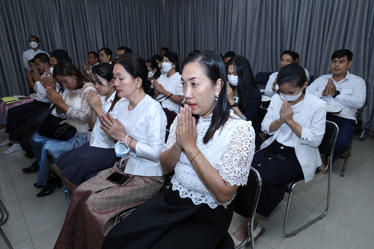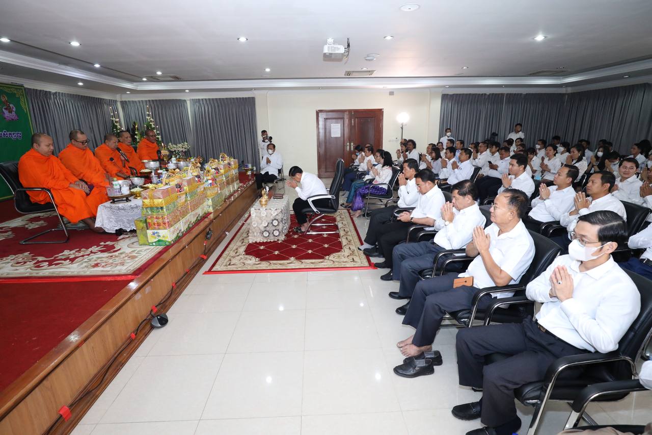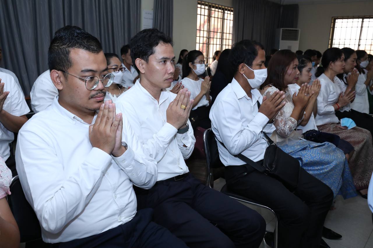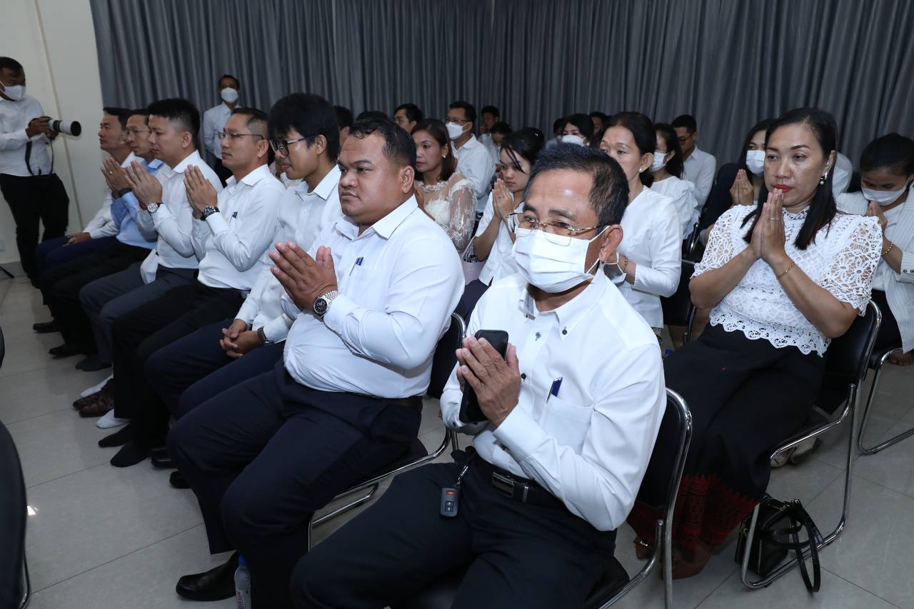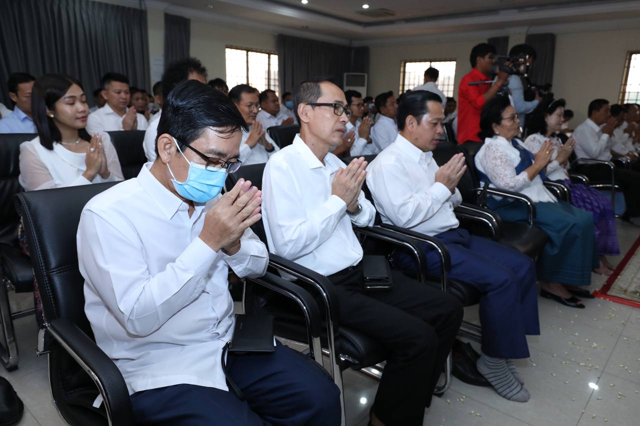 ថ្នាក់ដឹកនាំ និងមន្រ្តីរាជការក្រសួងមុខងារសាធារណៈនិមន្តព្រះសង្ឃចម្រើនព្រះបរិត្តបុណ្យផ្ការស្មីសាមគ្គីដើម្បីប្រមូលបច្ច័យកសាងអគារសិក្សា ១ខ្នង មាន ៥បន្ទប់ នៅសាលាបឋមសិក្សាល្អ ខេត្តក្រចេះ