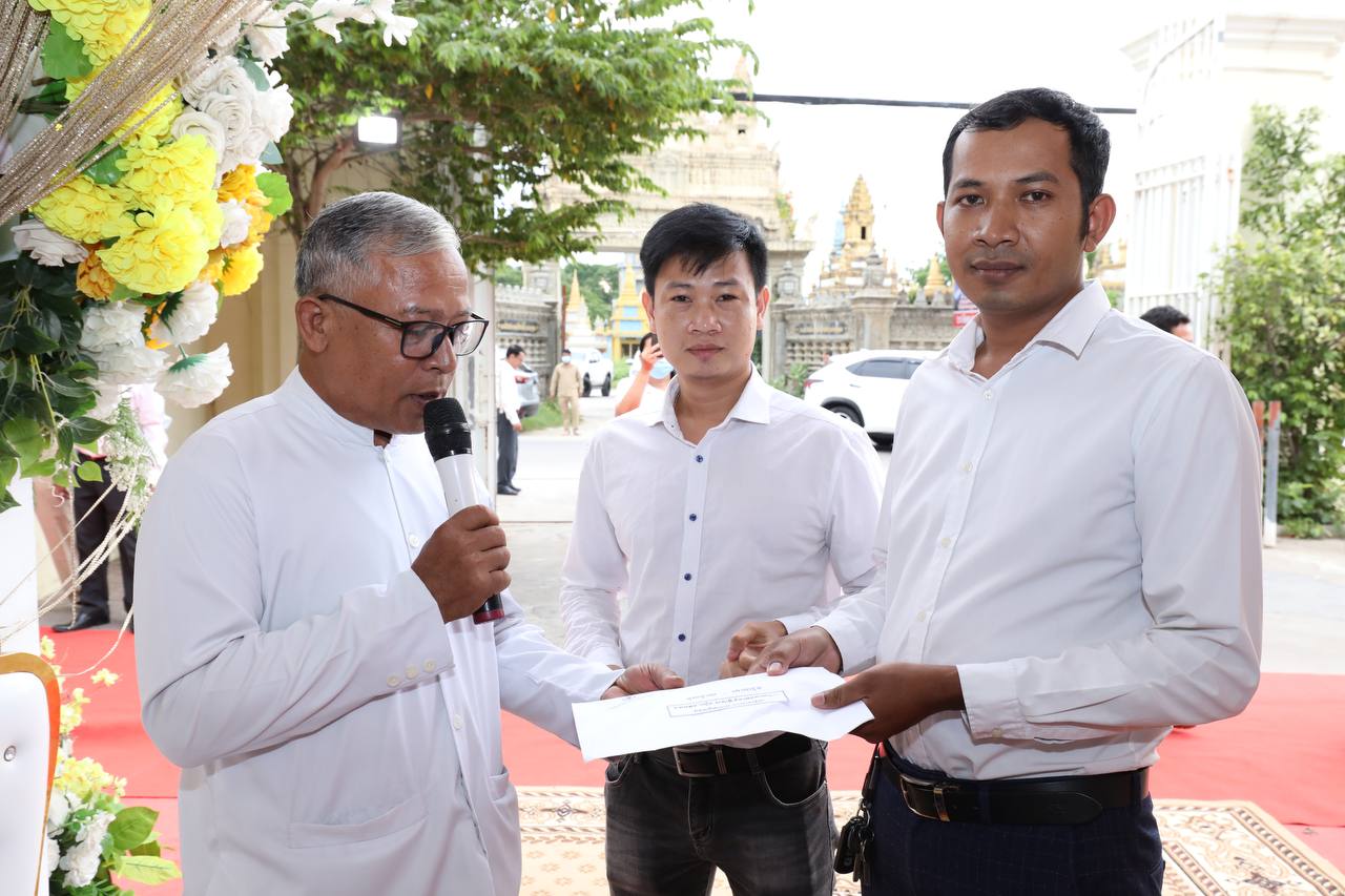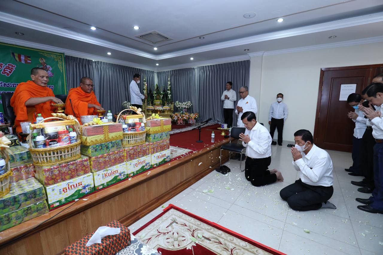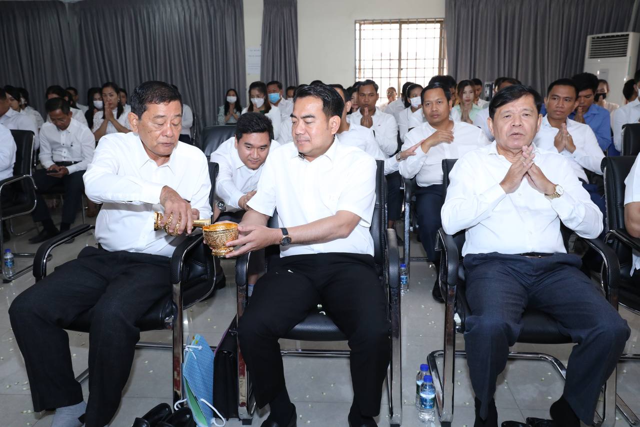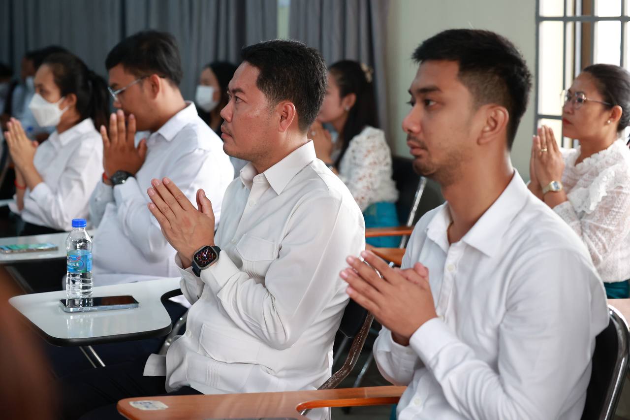 ថ្នាក់ដឹកនាំ និងមន្រ្តីរាជការក្រសួងមុខងារសាធារណៈនិមន្តព្រះសង្ឃចម្រើនព្រះបរិត្តបុណ្យផ្ការស្មីសាមគ្គីដើម្បីប្រមូលបច្ច័យកសាងអគារសិក្សា ១ខ្នង មាន ៥បន្ទប់ នៅសាលាបឋមសិក្សាល្អ ខេត្តក្រចេះ