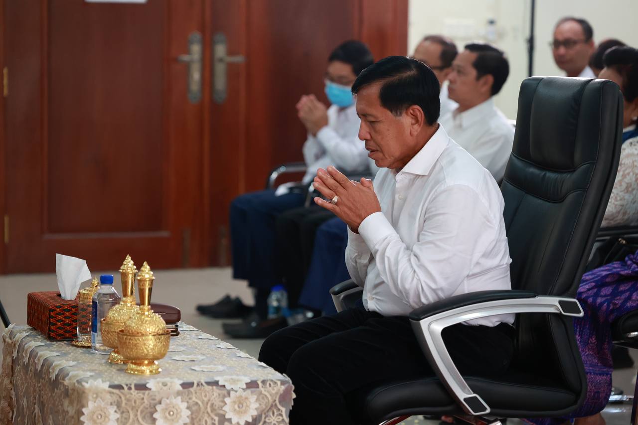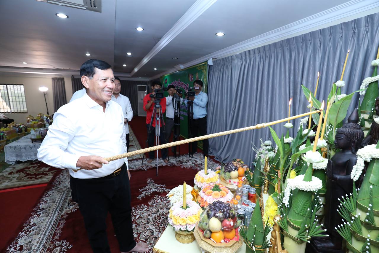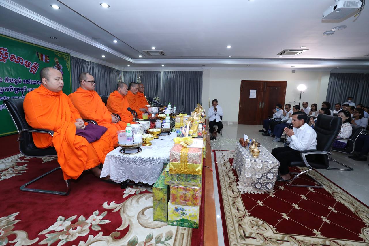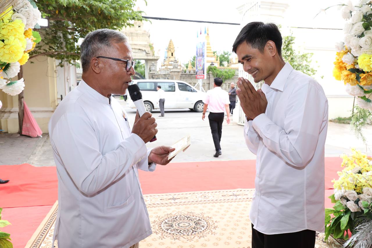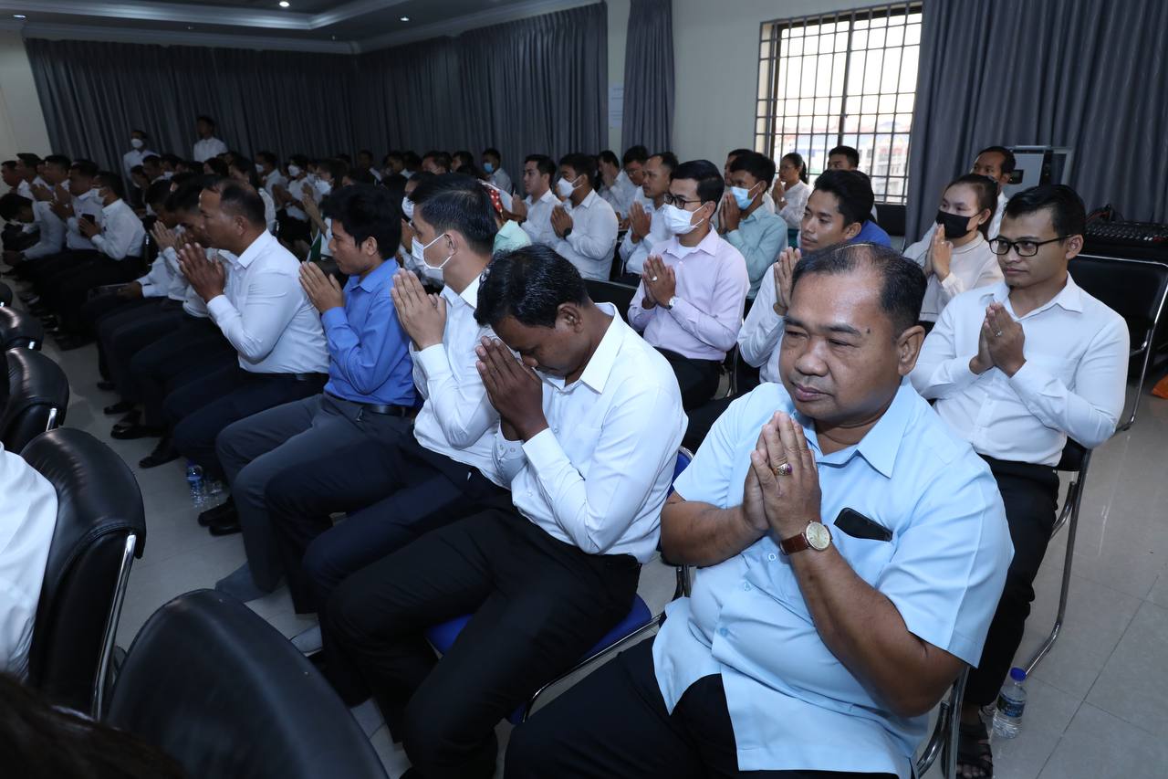 ថ្នាក់ដឹកនាំ និងមន្រ្តីរាជការក្រសួងមុខងារសាធារណៈនិមន្តព្រះសង្ឃចម្រើនព្រះបរិត្តបុណ្យផ្ការស្មីសាមគ្គីដើម្បីប្រមូលបច្ច័យកសាងអគារសិក្សា ១ខ្នង មាន ៥បន្ទប់ នៅសាលាបឋមសិក្សាល្អ ខេត្តក្រចេះ