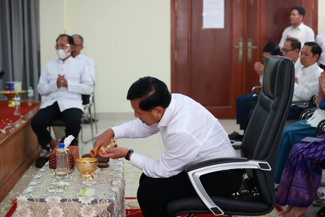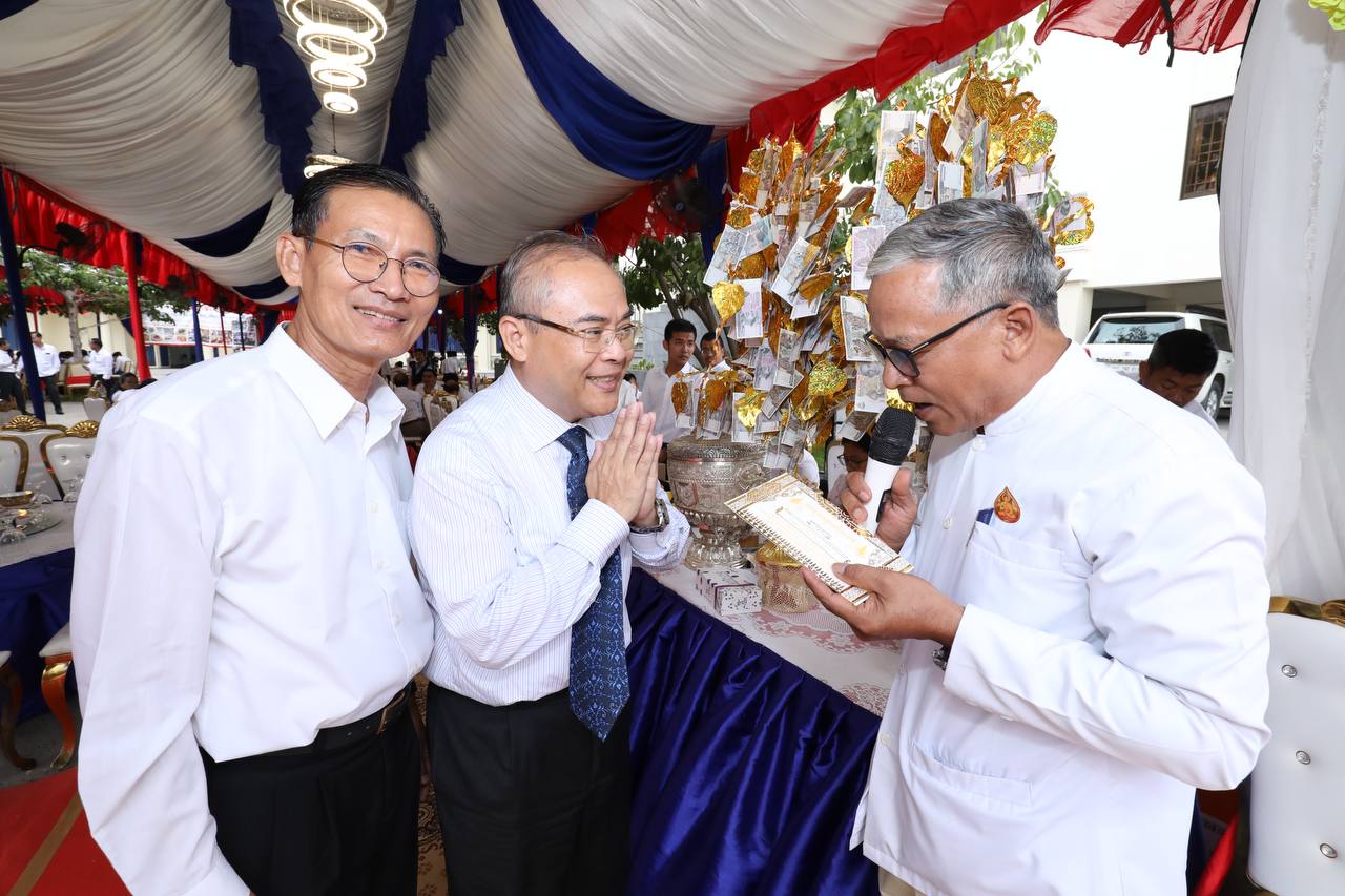 (ទីស្តីការក្រសួង)៖ ឯកឧត្តម ព្រុំ សុខា រដ្ឋមន្ត្រីក្រសួងមុខងារសាធារណៈ និងថ្នាក់ដឹកនាំ ព្រមទាំងមន្ត្រីរាជការក្រោមឱវាទក្រសួងមុខងារសាធារណៈ បាននិមន្តព្រះសង្ឃសូត្រមន្ត ចម្រើនព្រះបរិត្តពិធីបុណ្យផ្ការស្មីសាមគ្គី ដើម្បីប្រមូលបច្ច័យសាងសង់អគារសិក្សា ១ខ្នង មាន ៥បន្ទប់ នៅសាលាបឋមសិក្សាល្អ ខេត្តក្រចេះ។