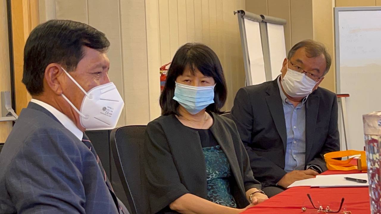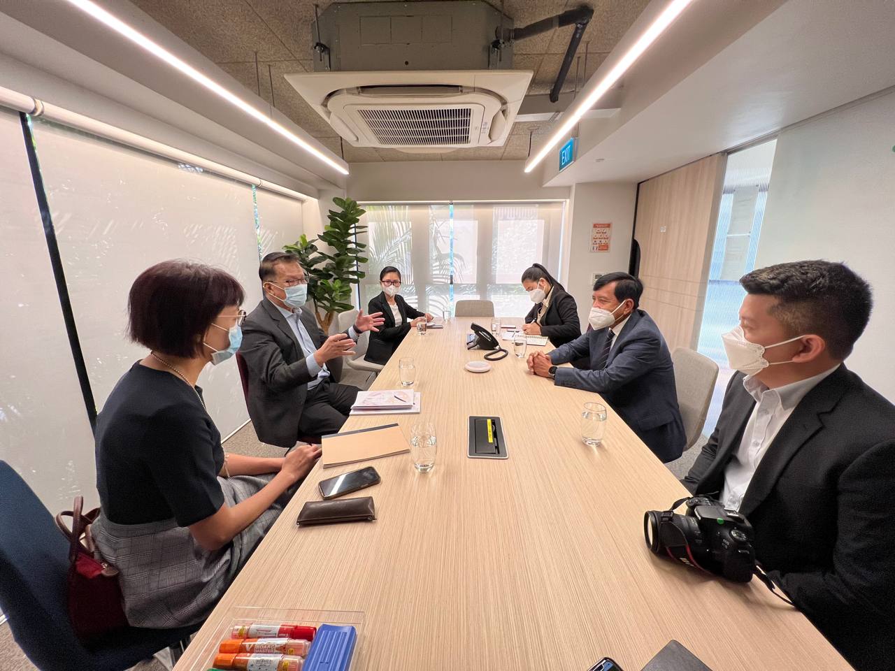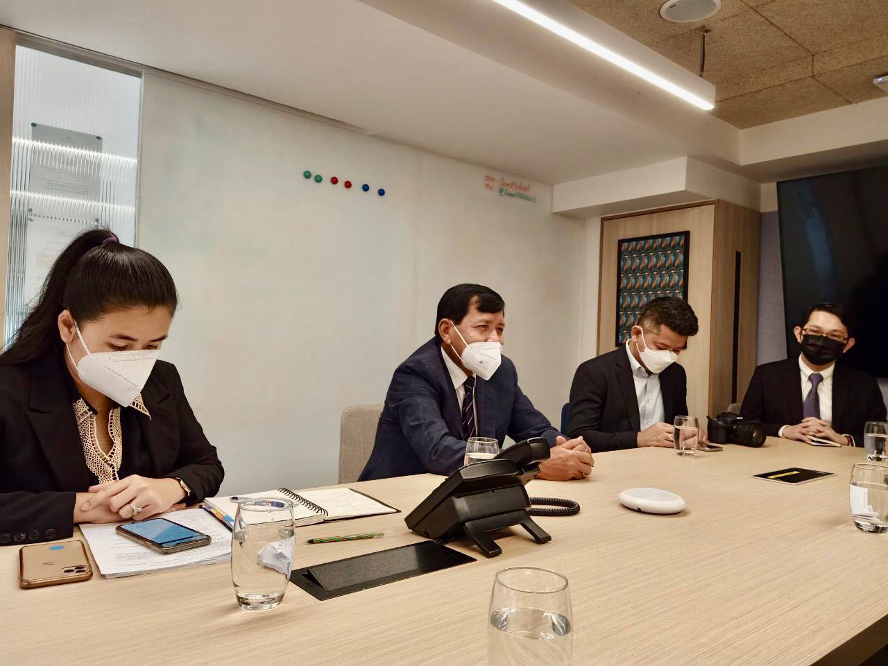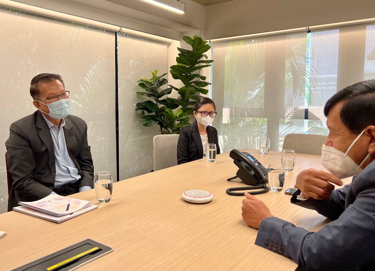 (សិង្ហបុរី)៖ នាព្រឹកថ្ងៃទី២៩ ខែមីនា ឆ្នាំ២០២២ ជាថ្ងៃទី២ នៃកម្មវិធីទស្សនកិច្ចសិក្សានៅសិង្ហបុរីស្តីពី «ការផ្លាស់ប្តូរឧត្តមានុវត្តន៍ក្នុងវិស័យមុខងារសាធារណៈ» ឯកឧត្តម ព្រុំ សុខា រដ្ឋមន្រ្តីក្រសួងមុខងារសាធារណៈ បានជួបពិភាក្សាការងារជាមួយលោក បេនីឌីក ឆុង (Benedict Cheong) នាយកប្រតិបត្តិមូលនិធិអន្តរជាតិថេម៉ាសិក (Temasek Foundation International)។