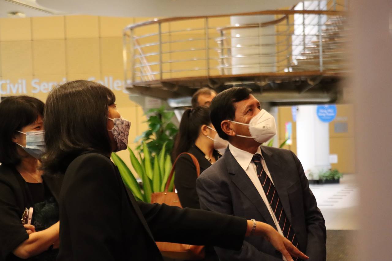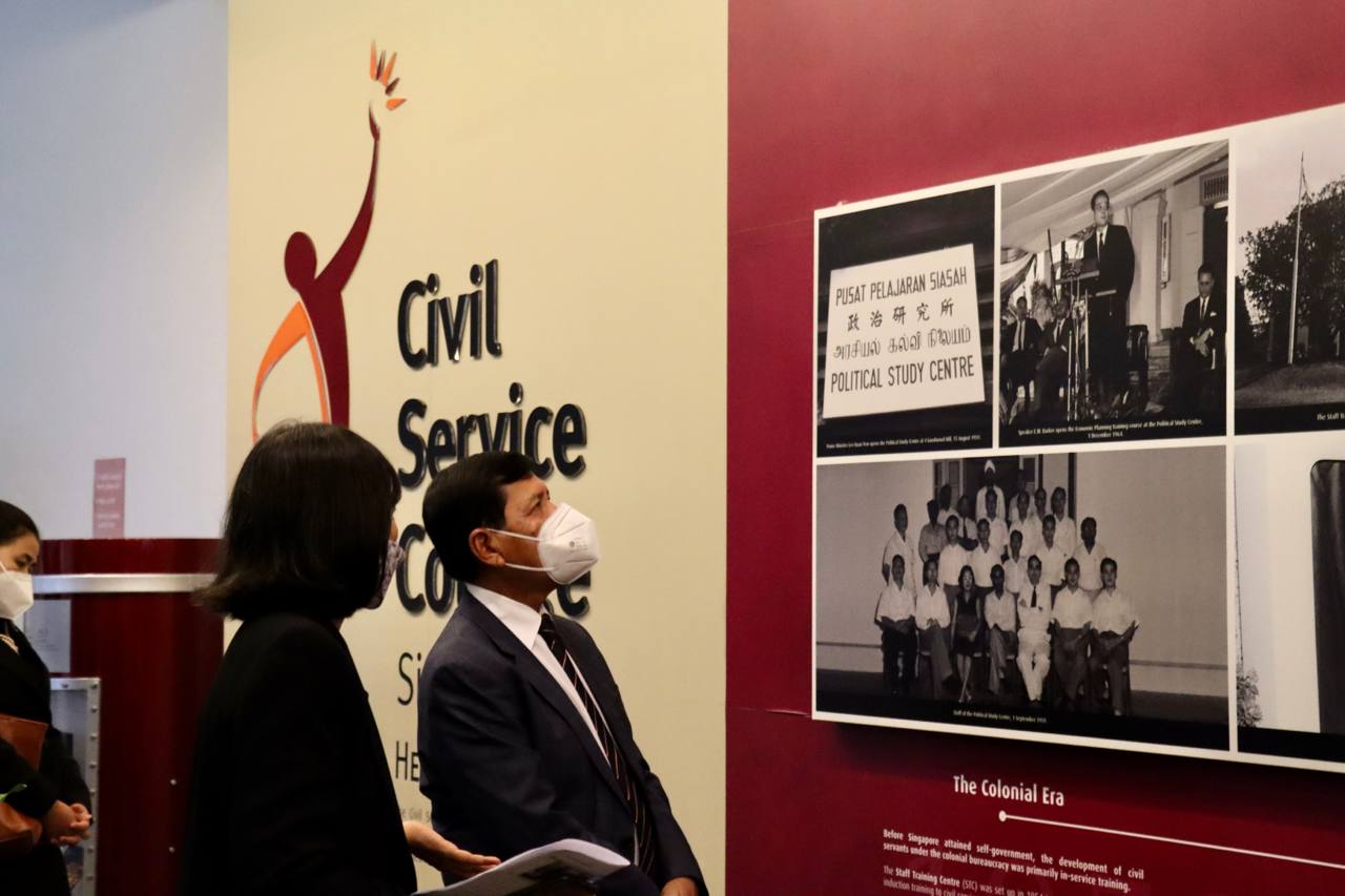 បន្ទាប់មកនៅរសៀលថ្ងៃដដែល ប្រតិភូក្រសួងមុខងារសាធារណៈកម្ពុជាបានធ្វើទស្សនកិច្ចនៅសាលាមុខងារសាធារណៈសិង្ហបុរី (Civil Service College) ដោយបានជួបពិភាក្សាការងារជាមួយ លោកស្រី អ៊ុង ទុនហ៊ុយ (Ong Toon Hui) នាយកសាលា (Dean) មុខងារសាធារណៈសិង្ហបុរី និងសហការី។ ក្នុងឱកាសនោះ ប្រតិភូកម្ពុជាបានស្តាប់បទបង្ហាញពីលទ្ធផលនៃកិច្ចសហប្រតិបត្តិការបណ្តុះបណ្តាលមន្រ្តីមុខងារសាធារណៈកម្ពុជារយៈពេលកន្លងមក។ ភាគីទាំងពីក៏បានឯកភាពគ្នាបន្តកិច្ចសហប្រតិបត្តិការនេះទៅមុខទៀត ឱ្យស្របនឹងស្ថានភាពជាក់ស្តែងក្នុងបរិបទកូវីដ-១៩៕