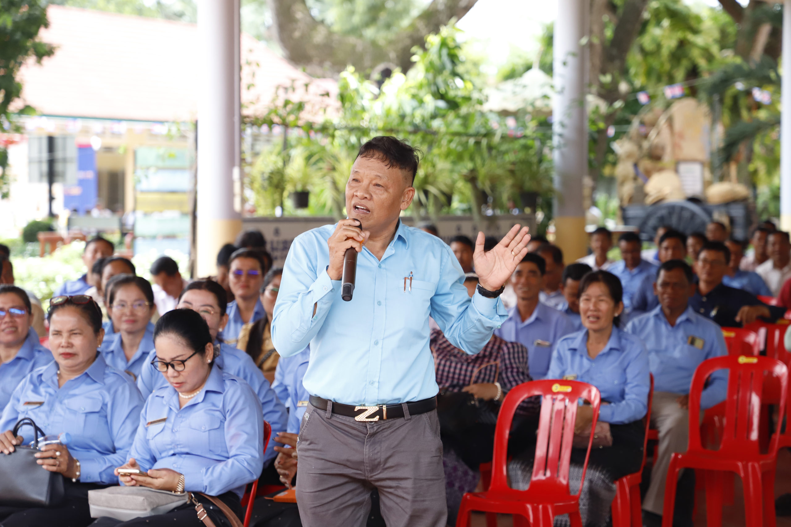 ចាប់ពីថ្ងៃទី១៦ ដល់ថ្ងៃទី១៧ ខែសីហា ឆ្នាំ២០២៤ នាយក នាយិកាសាលា ដែលអញ្ជើញមកពីសាលាបឋមសិក្សាទូទាំងប្រទេស បានមកជួបជុំគ្នានៅខេត្តស្វាយរៀង ដើម្បីចូលរួមក្នុងសិក្ខាសាលាចែករំលែកបទពិសោធនៃការគ្រប់គ្រង និងការផ្តល់សេវាសាធារណៈរបស់ជ័យលាភី អង្គភាពផ្តល់សេវាសាធារណៈគំរូក្នុងវិស័យអប់រំ។ សិក្ខាសាលានេះ មានគោលបំណងនាំយកបទពិសោធ ចែករំលែកគ្នាទៅវិញទៅមកដើម្បីធ្វើជាមូលដ្ឋានក្នុងការពង្រឹងការគ្រប់គ្រង និងកែលម្អគុណភាពក្នុងការផ្តល់សេវាសាធារណៈ នៅក្នុងអង្គភាពរបស់ខ្លួនឱ្យកាន់តែល្អប្រសើរ ស្របតាមគោលការណ៍រាជរដ្ឋាភិបាល និងការចង់បានរបស់ប្រជាជនយើង រួមទាំងបានផ្តល់ទស្សនទានថ្មីៗ ការផ្តល់ចំណេះដឹង ការបង្កើតទំនាក់ទំនង និងបទពិសោធល្អៗស្របជាមួយបរិបទ និងស្ថានភាពជាក់ស្តែងថែមទៀតផង។