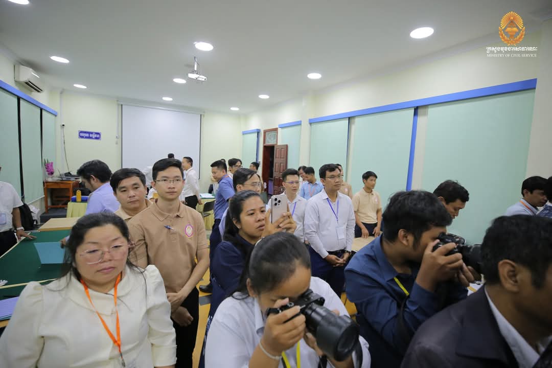 នៅសាលាភូមិន្ទរដ្ឋបាល នាវេលាម៉ោង១០ និង ១៥នាទីយប់ ឯកឧត្តម ហ៊ុន ម៉ានី ឧបនាយករដ្ឋមន្ត្រី រដ្ឋមន្ត្រីក្រសួងមុខងារសាធារណៈ និងជាប្រធានគណៈកម្មាការរៀបចំការប្រឡងប្រជែង និងសមាជិក សមាជិកានៃគណៈកម្មការ និងអនុគណៈកម្មការពាក់ព័ន្ធទាំងអស់ កំពុងមានវត្តមាននៅមណ្ឌលប្រឡងសាលាភូមិន្ទរដ្ឋបាល