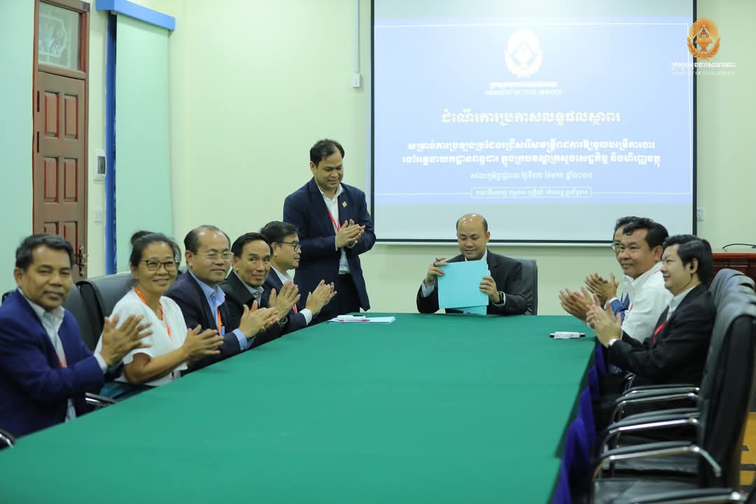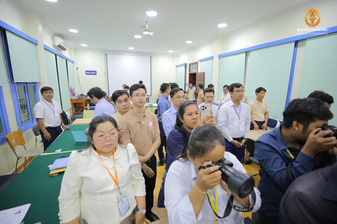នៅសាលាភូមិន្ទរដ្ឋបាល នាវេលាម៉ោង១០ និង ១៥នាទីយប់ ឯកឧត្តម ហ៊ុន ម៉ានី ឧបនាយករដ្ឋមន្ត្រី រដ្ឋមន្ត្រីក្រសួងមុខងារសាធារណៈ និងជាប្រធានគណៈកម្មាការរៀបចំការប្រឡងប្រជែង និងសមាជិក សមាជិកានៃគណៈកម្មការ និងអនុគណៈកម្មការពាក់ព័ន្ធទាំងអស់ កំពុងមានវត្តមាននៅមណ្ឌលប្រឡងសាលាភូមិន្ទរដ្ឋបាល ដើម្បីពិនិត្យ ផ្ទៀងផ្ទាត់ សម្រេចលើលទ្ធផលជាប់ស្ថាពរ របស់បេក្ខជនប្រឡងប្រជែងជ្រើសរើសមន្ត្រីរាជការ ឱ្យចូលបម្រើការងារនៅអគ្គនាយកដ្ឋានពន្ធដារ នៃក្រសួងសេដ្ឋកិច្ច និងហិរញ្ញវត្ថុ។