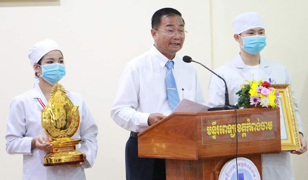 ប្រតិភូក្រសួងមុខងារសាធារណៈ ចុះជួបលើកទឹកចិត្តគ្រូពេទ្យនិងបុគ្គលិកមន្ទីរពេទ្យខេត្តកំពង់ចាមដែលមានស្នាដៃព្យាបាលអ្នកជំងឺកូវីដ១៩
