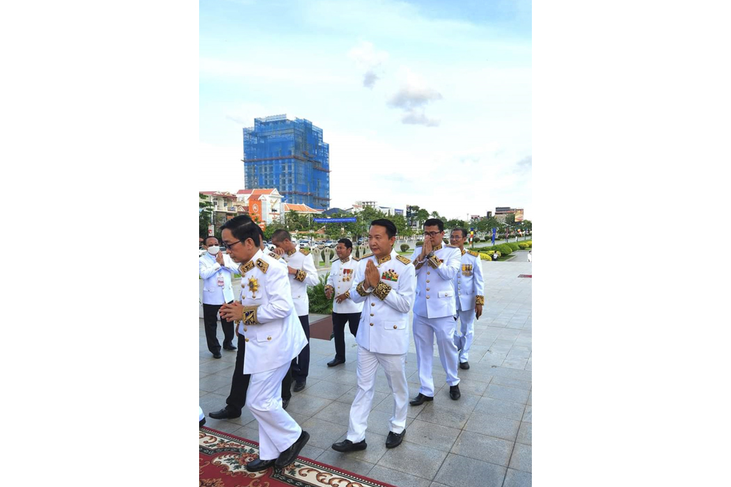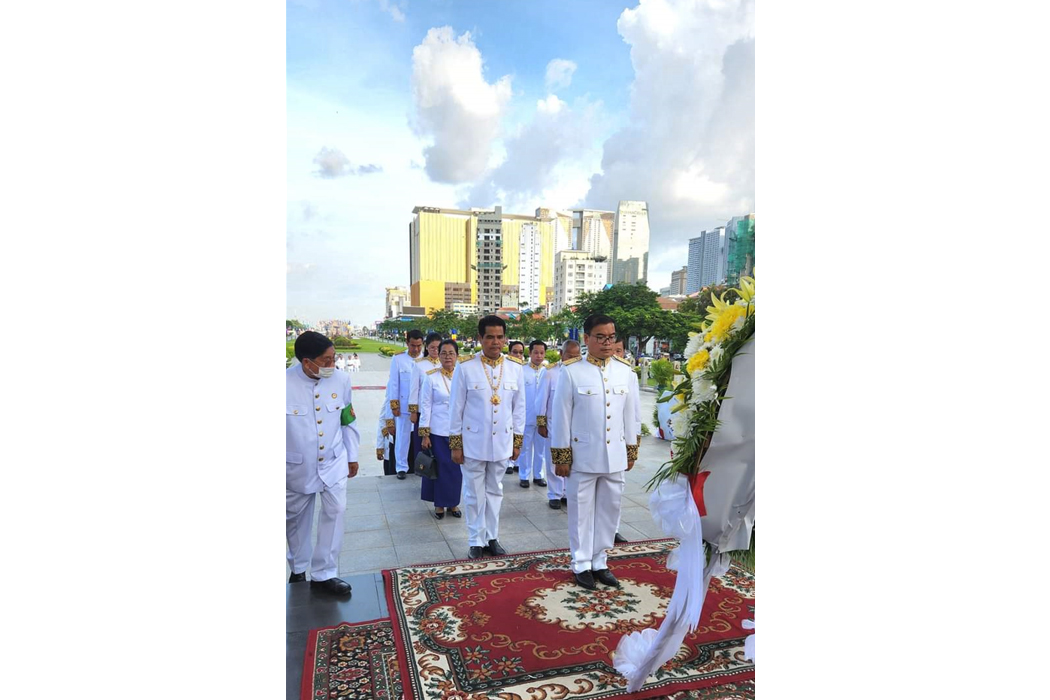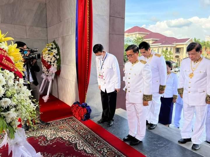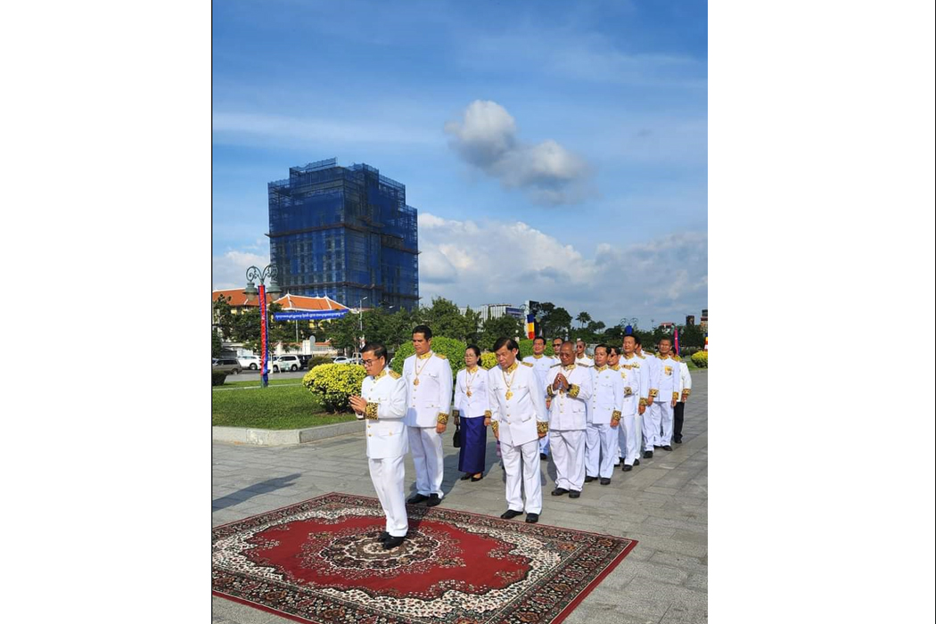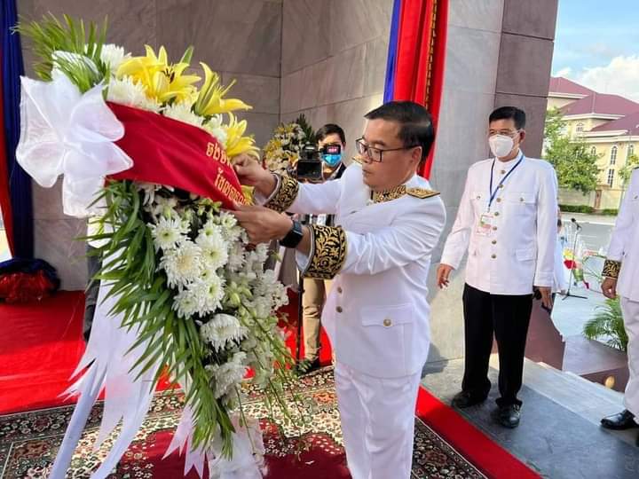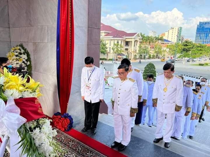 (ភ្នំពេញ)៖ នៅរសៀលថ្ងៃអង្គារ ១៥កើត ខែកត្ដិក ឆ្នាំខាល ចត្វាស័ក ព.ស ២៥៦៦ ត្រូវនឹងថ្ងៃទី០៨ ខែវិច្ឆិកា ឆ្នាំ២០២២ ឯកឧត្តម យក់ ប៊ុនណា រដ្ឋលេខាធិការប្រចាំការ តំណាងដ៏ខ្ពង់ខ្ពស់ឯកឧត្តម ព្រុំ សុខា រដ្ឋមន្រ្តីក្រសួងមុខងារសាធារណ: បានដឹកនាំគណ:ប្រតិភូក្រសួងមុខងារសាធារណ: ដាក់កម្រងផ្ការំលឹកខួបអនុស្សាវរីយ៍លើកទី ៦៩ (៩ វិច្ឆិកា ១៩៥៣ – ៩ វិច្ឆិកា ២០២២) នៃទិវាបុណ្យឯករាជ្យជាតិ៩ វិច្ឆិកា នៅវិមានឯករាជ្យ និងគោរពព្រះវិញ្ញាណក្ខន្ធ ព្រះបរមរូប ព្រះករុណាព្រះបាទសម្តេចព្រះនរោត្តមសីហនុ ព្រះមហាវីរក្សត្រ ព្រះវររាជបិតាឯករាជ្យ បូរណភាពទឹកដី និងឯកភាពជាតិខ្មែរ “ព្រះបរមរតនកោដ្ឋ” នៅមណ្ឌបសួនច្បារខាងកើតវិមានឯករាជ្យ៕